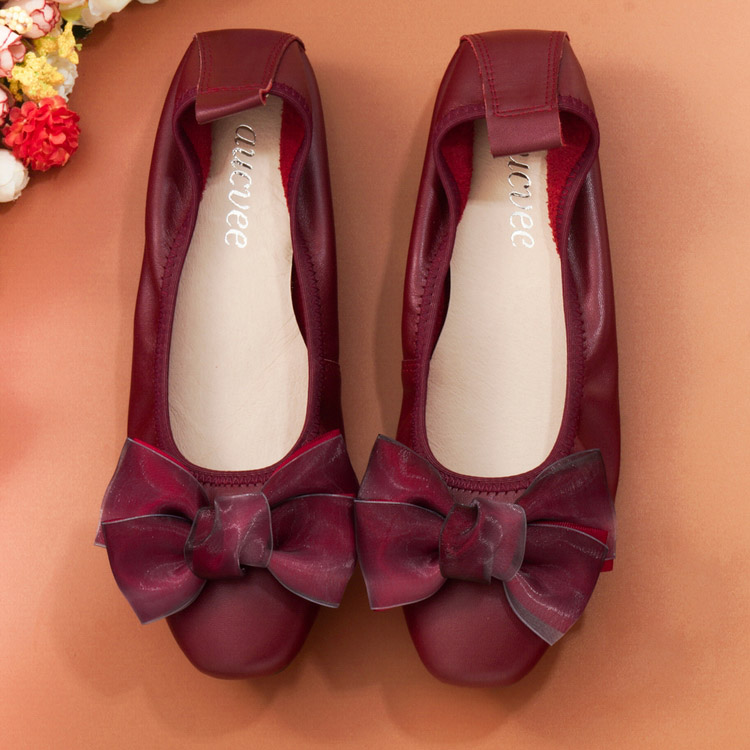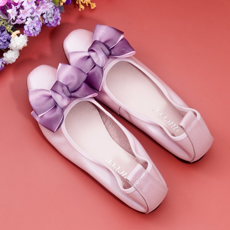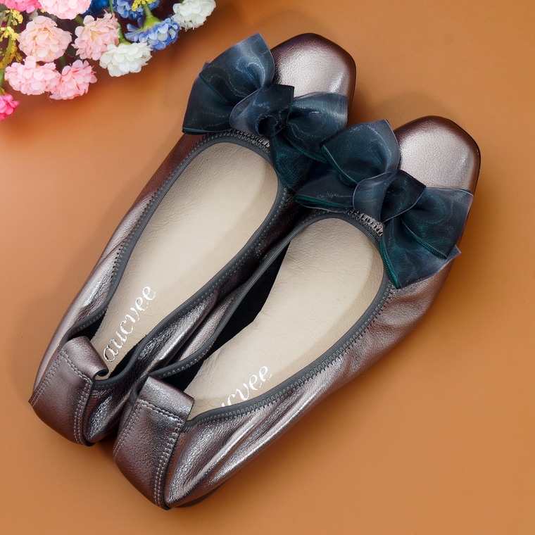 2024 Summer Genuine Leather Bowknot Ballerina Women's Flat Round Toe Comfort Slip-On Ladies Loafers Leather Single Mules Shoes