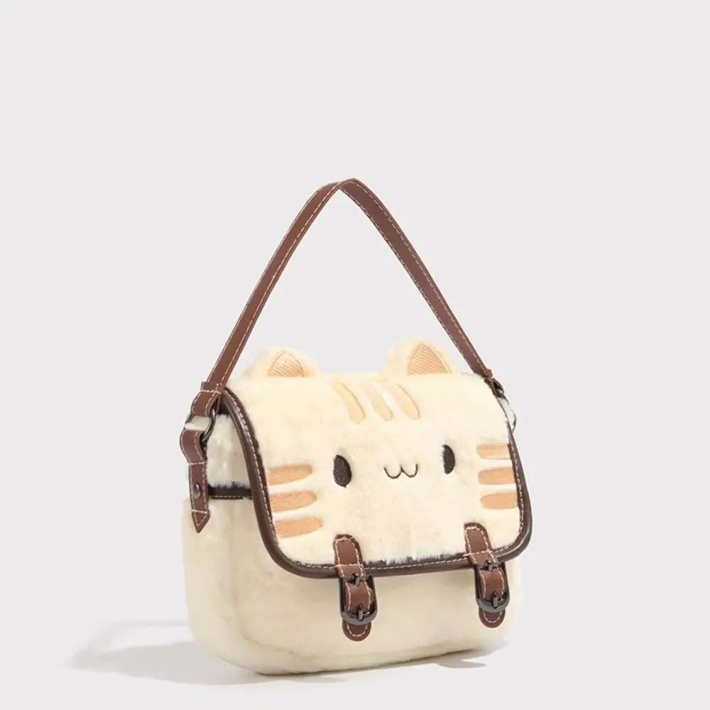 2025 Cute Plush Backpack Student Schoolbag Fashion Cartoon Furry Cat Bag Adorable Kitten Handbag for Woman Kids