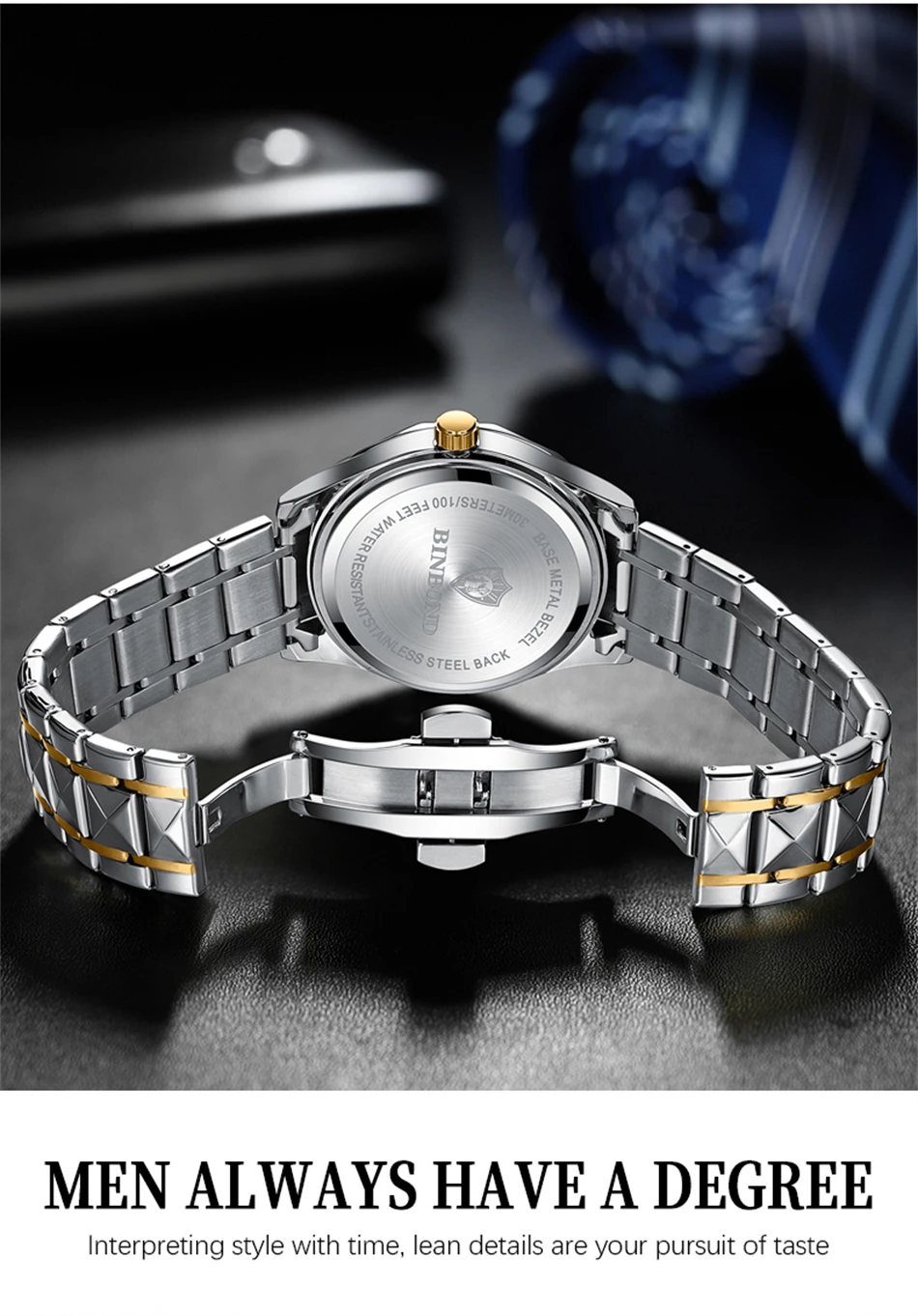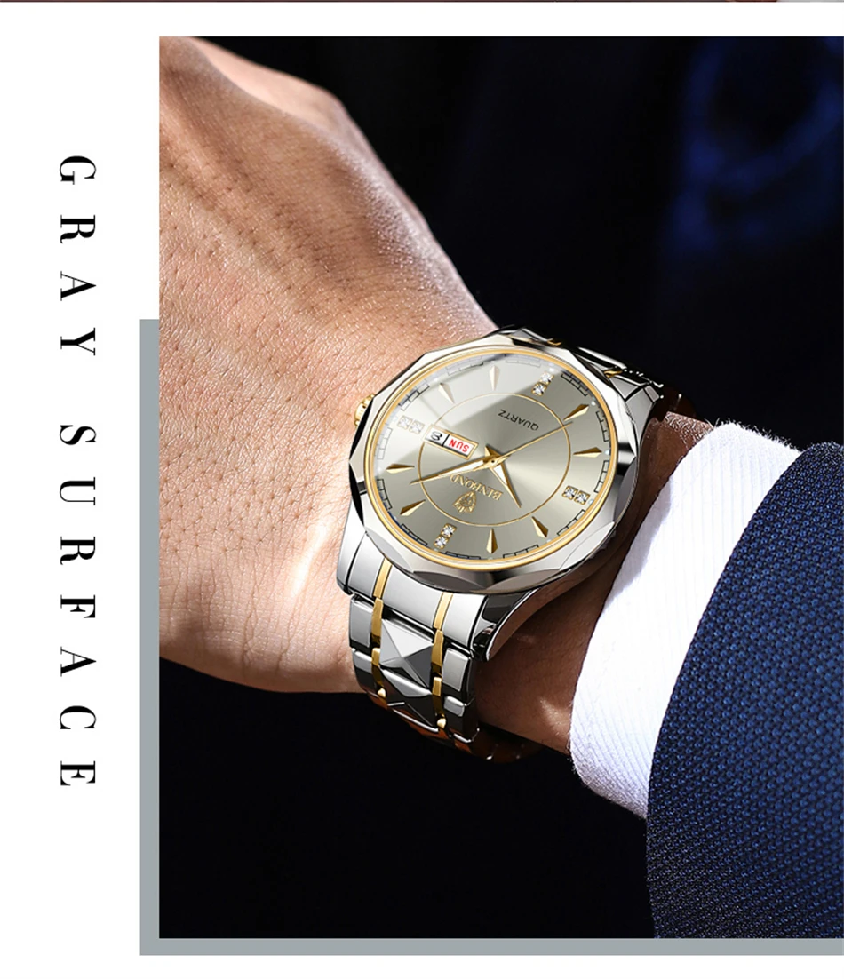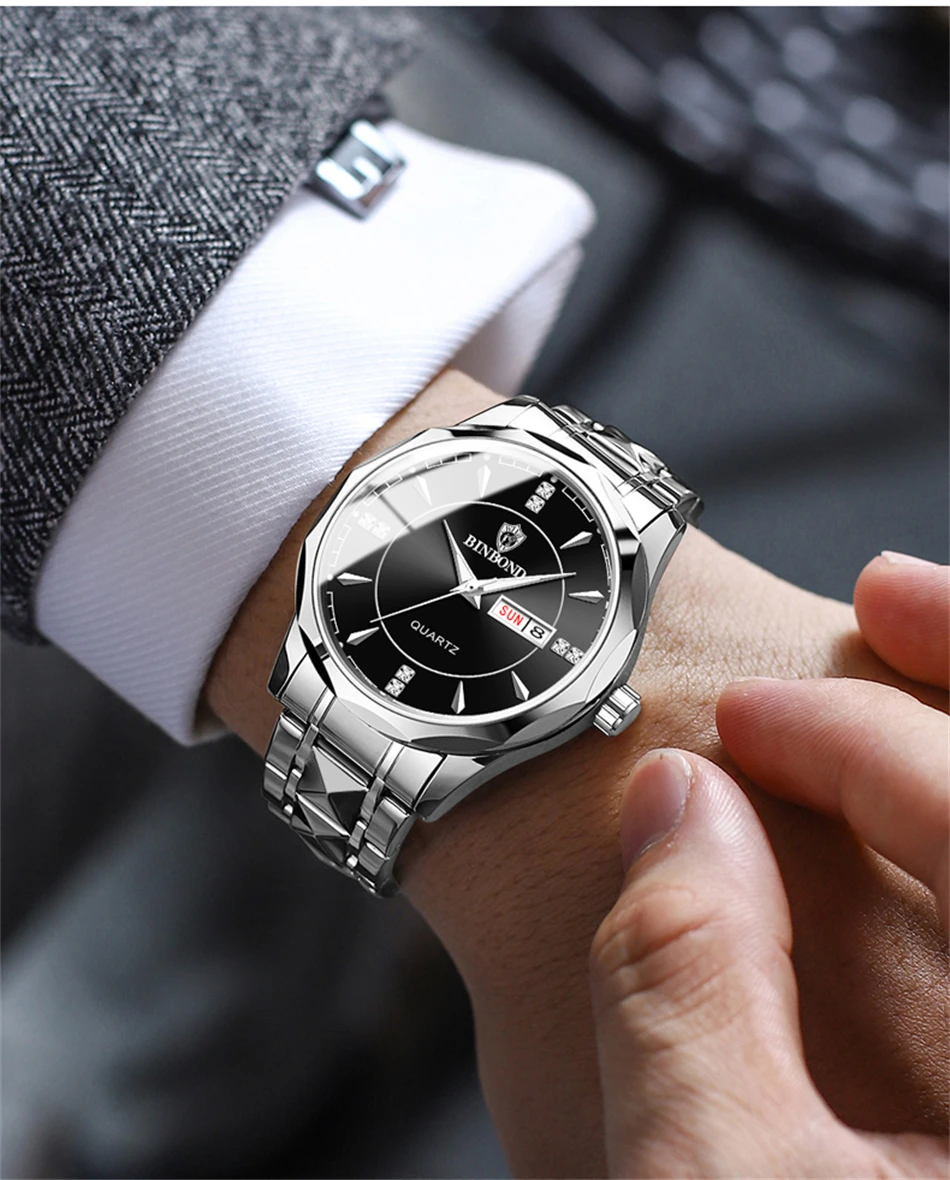 2025 New Watch Diamond Luxury Night Glow Double Calendar Quartz Movement Gold Blue Stainless Steel Fashion Business Man Watch