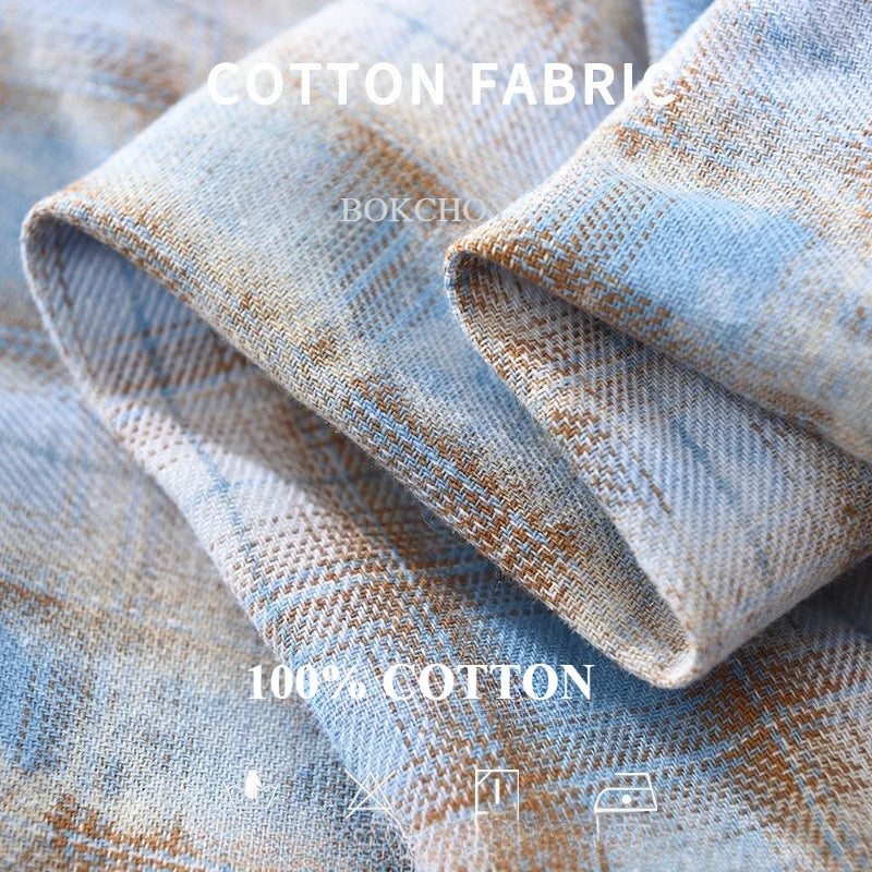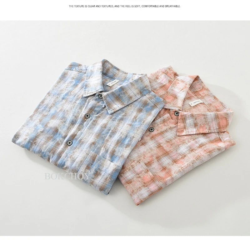2025 Summer New 100% Cotton Casual Plaid Short Sleeve Shirt for Men Loose Turn-down Collar Shirt CM8265