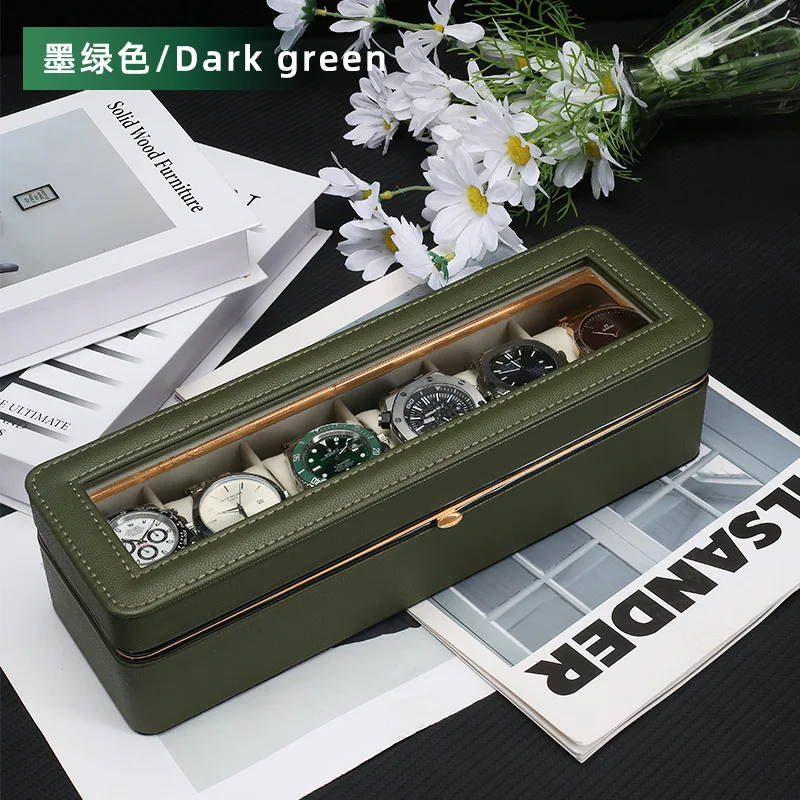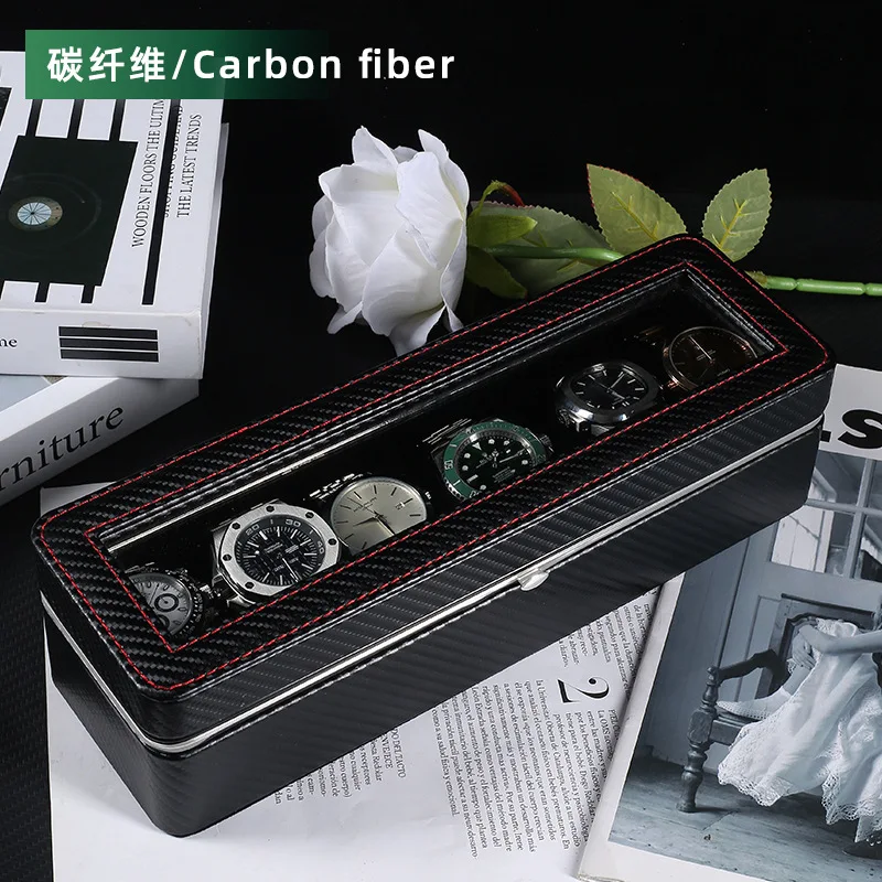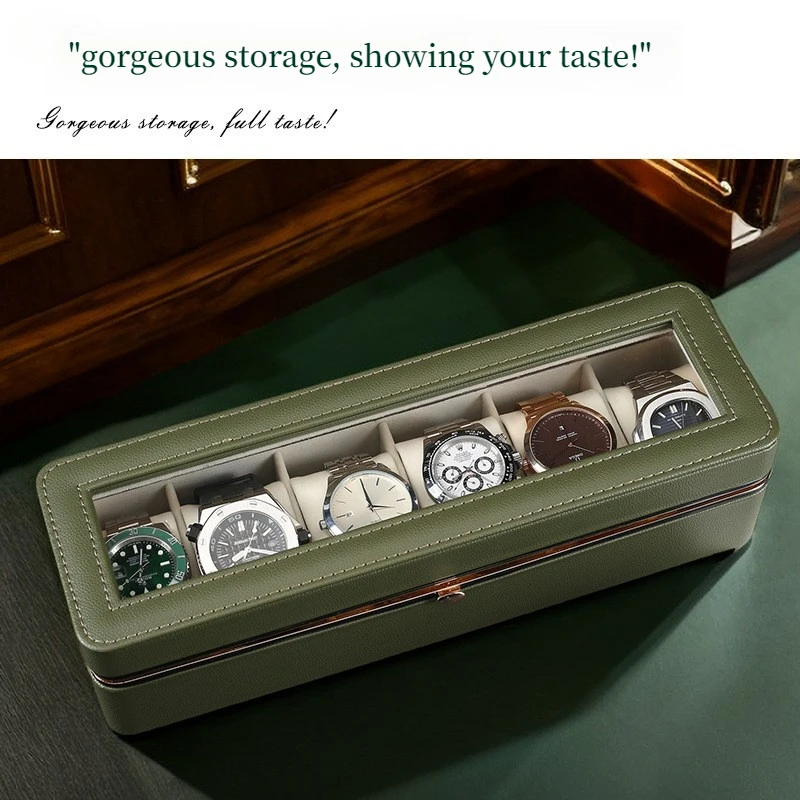 6-Box Checkered Watch Storage Case High-Grade Velvet Lining Waterproof Dustproof Anti-Fall Display Watch Box