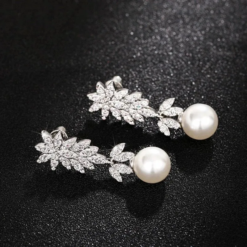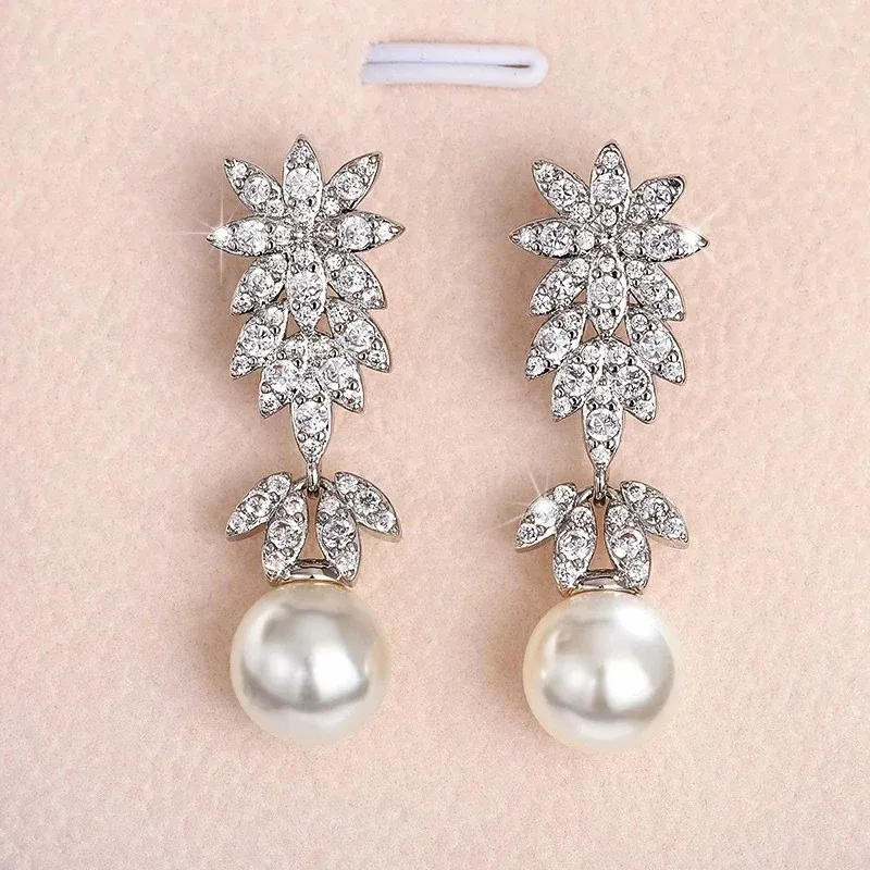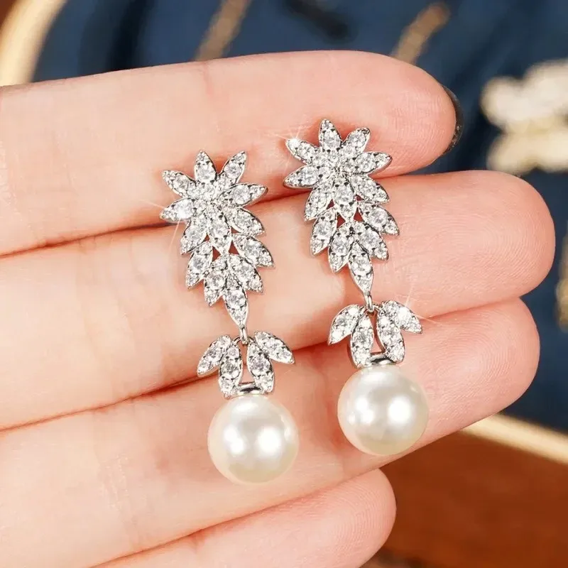 925 Sterling Silver Aesthetic Flower Long Hanging Pearl Earrings Exquisite Earrings New for Women Wedding Jewelry