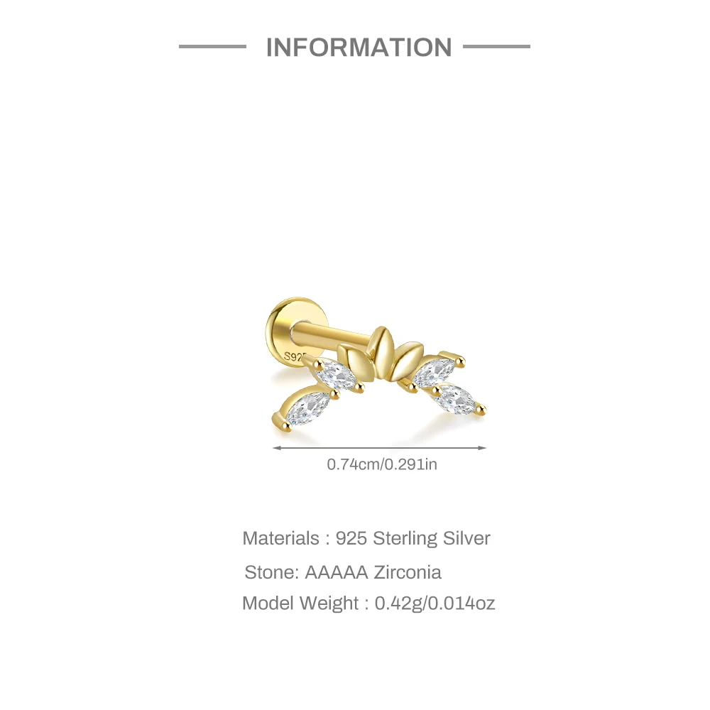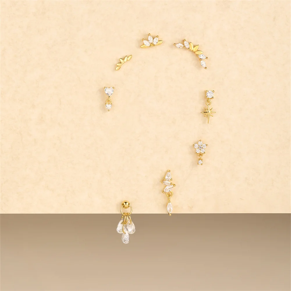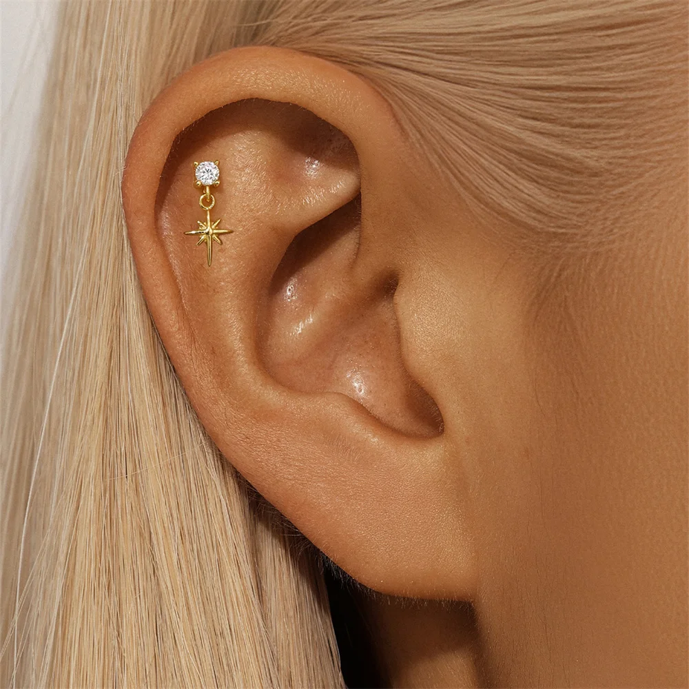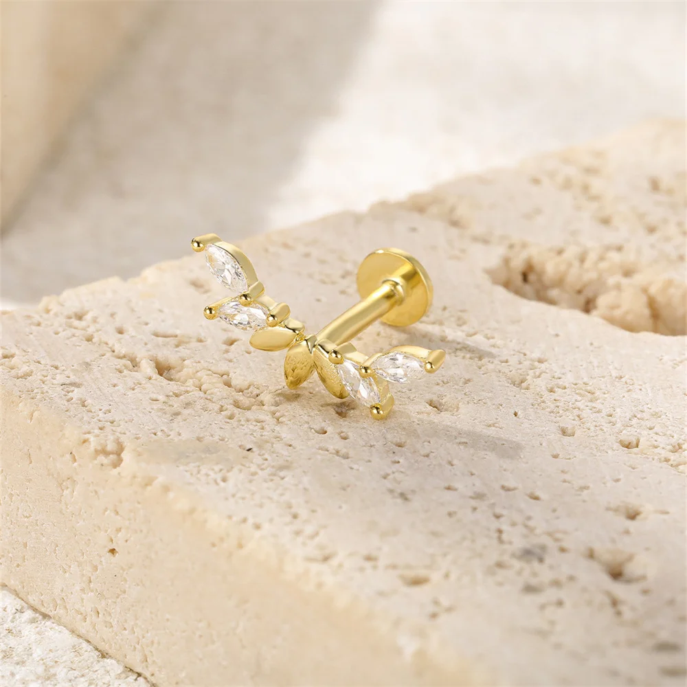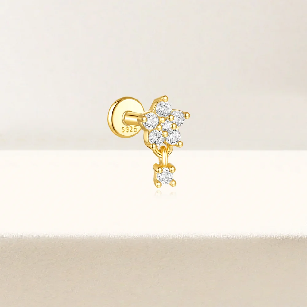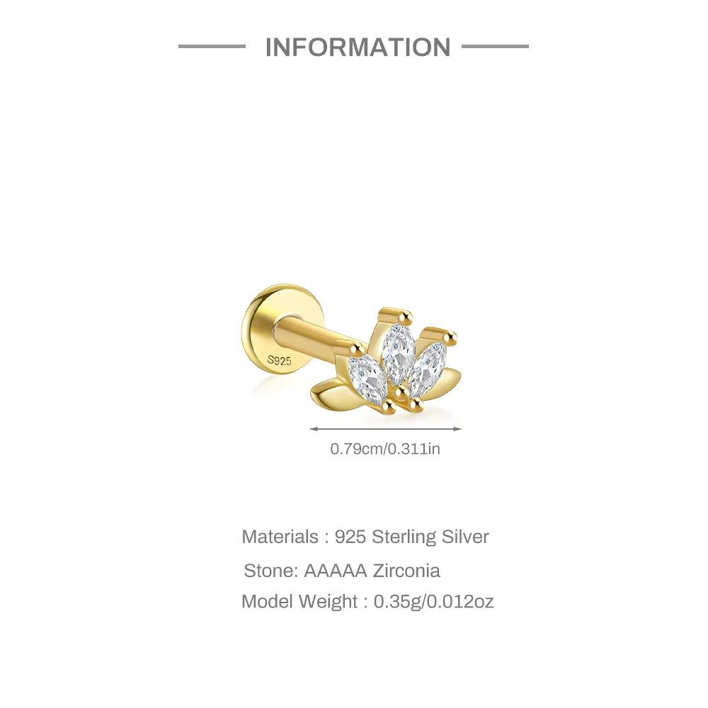 Aide 3pcs Ear Needle 5/6/8mm Flat Head Cartilage Piercing Stud Earring Women 925 Sterling Silver Flower Zircon Gold Ear Studs
