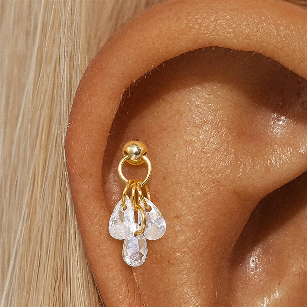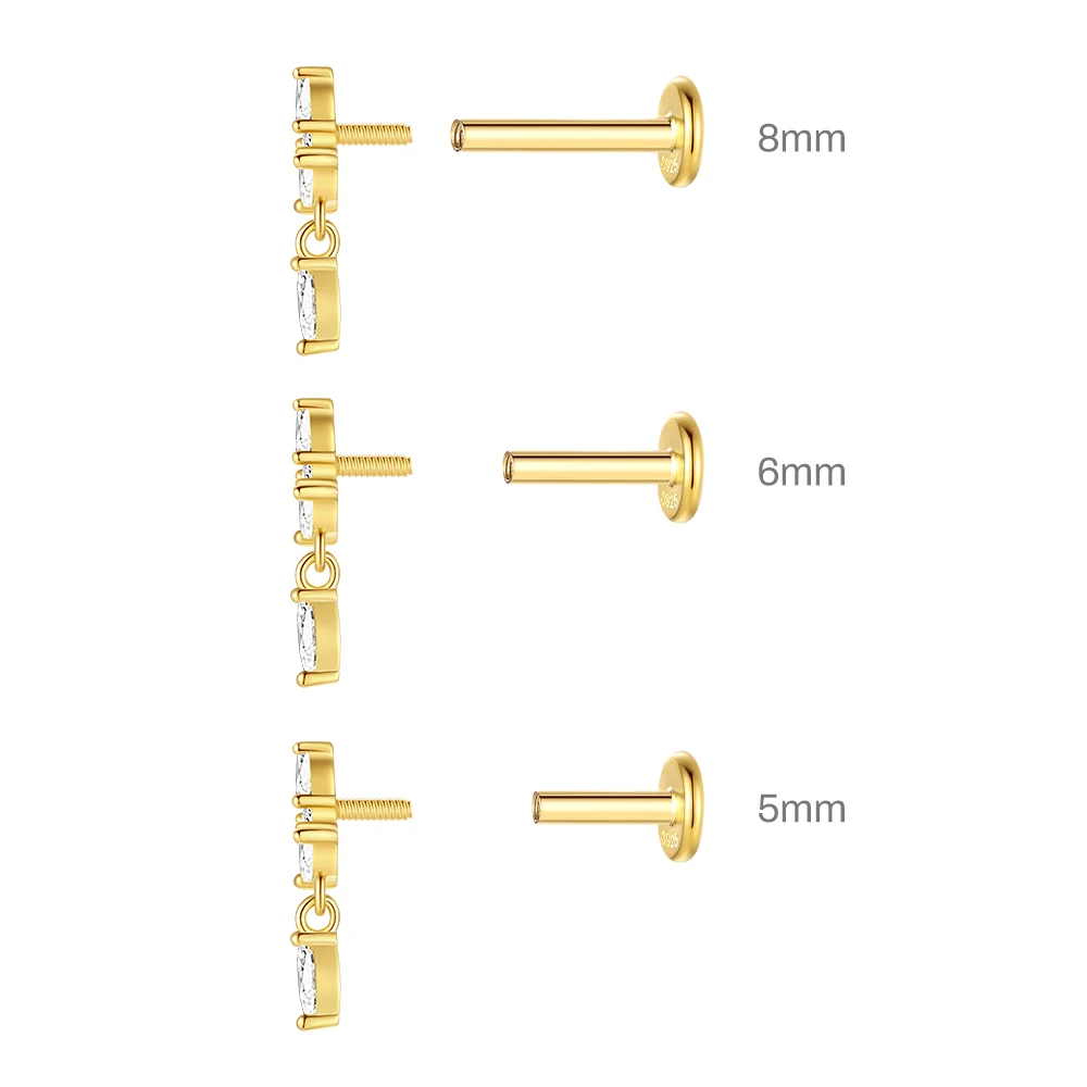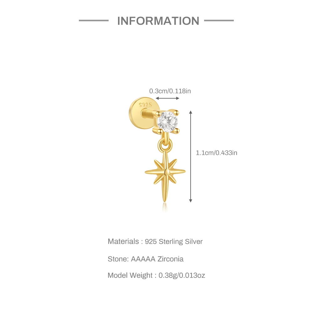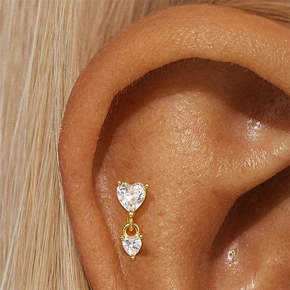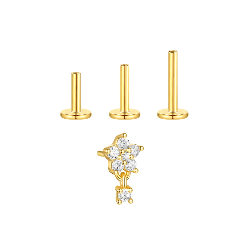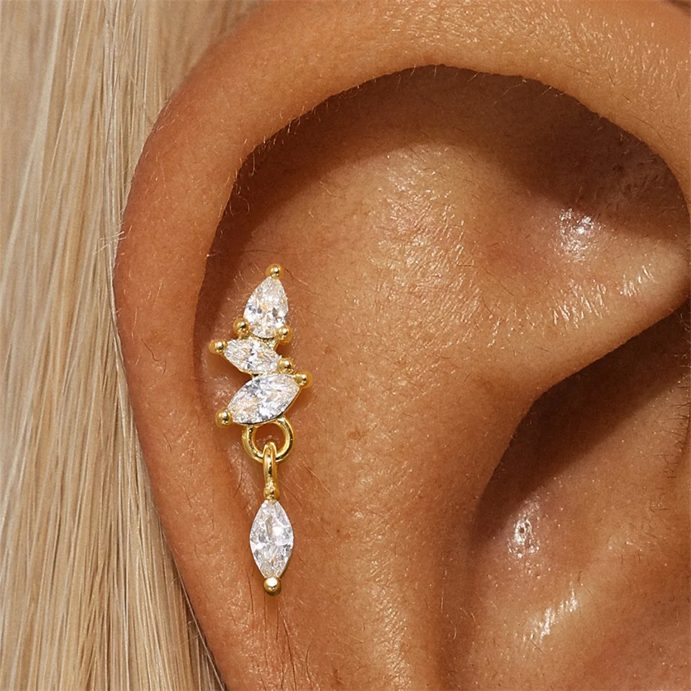 Aide 3pcs Ear Needle 5/6/8mm Flat Head Cartilage Piercing Stud Earring Women 925 Sterling Silver Flower Zircon Gold Ear Studs