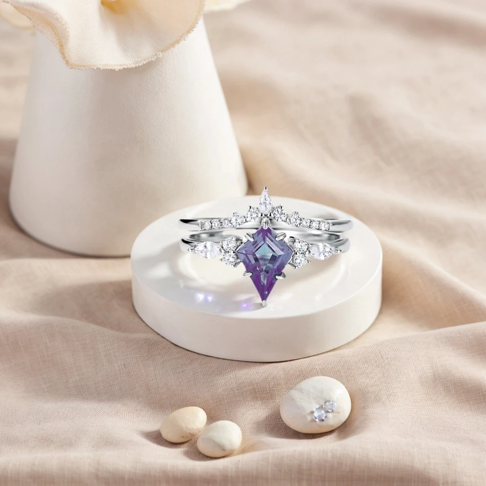 ALLNOEL Kite Cut 0.91ct Alexandrite 925 Silver Ring For Women Wedding Bridal Set Jewelry June Birthstone Birthday Gift Wholesale