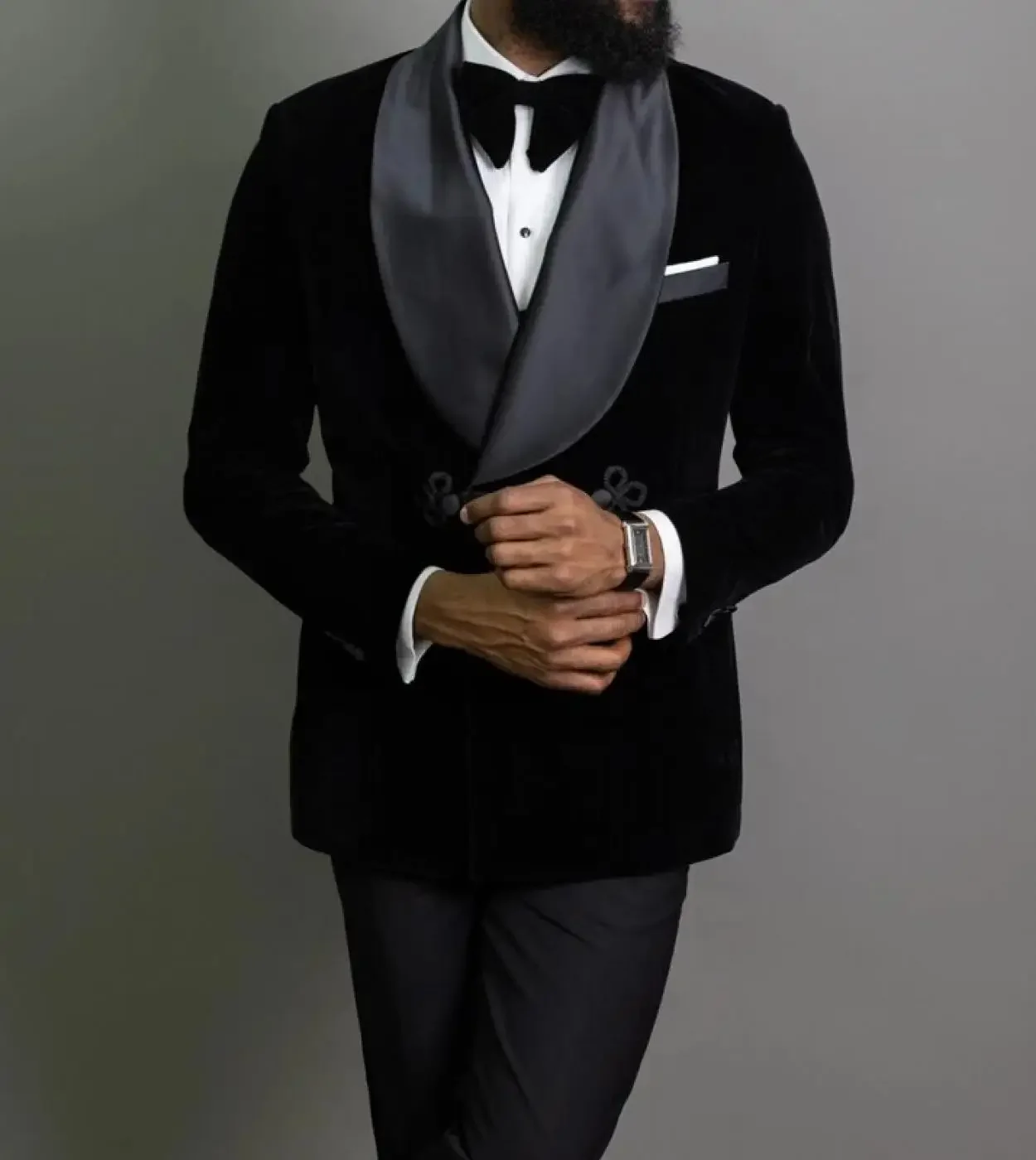 Black Velvet Smoking Jacket 1 Piece Male Blazer with Buttons Luxury Grooms Wedding Designer Party Wear Coat