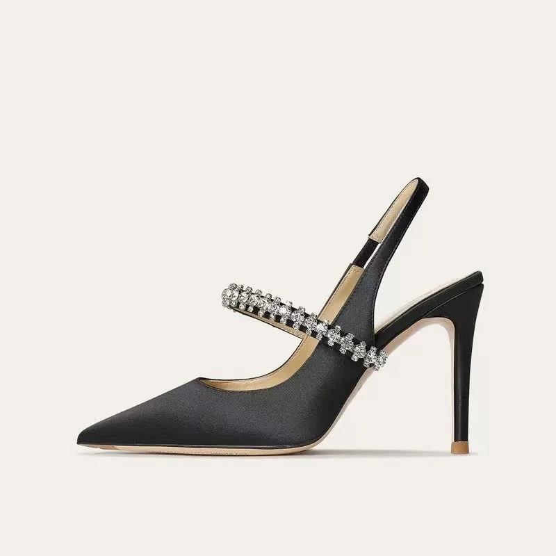 Brand Luxury Crystal High Heels Women's Sandals Pointed Toe Elegant Heeled Shoes Woman Sexy Summer Pumps Sandals Zapatos Mujer