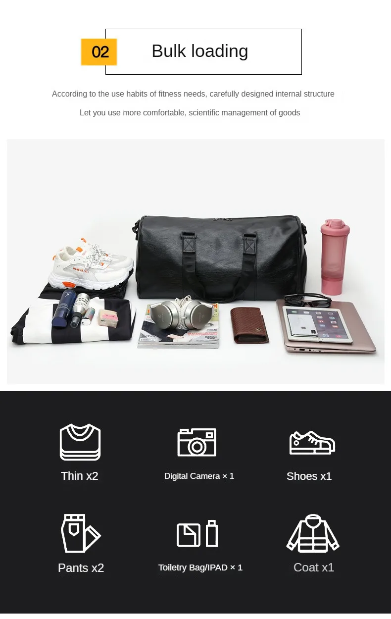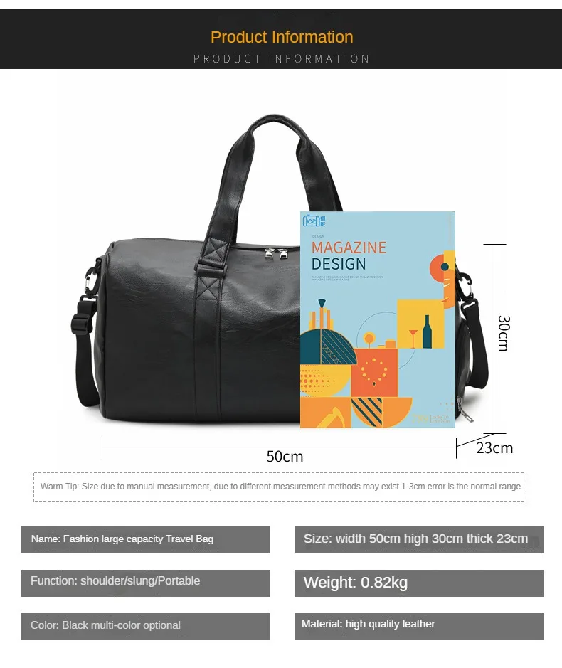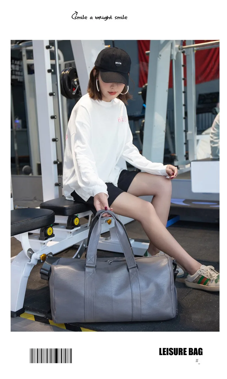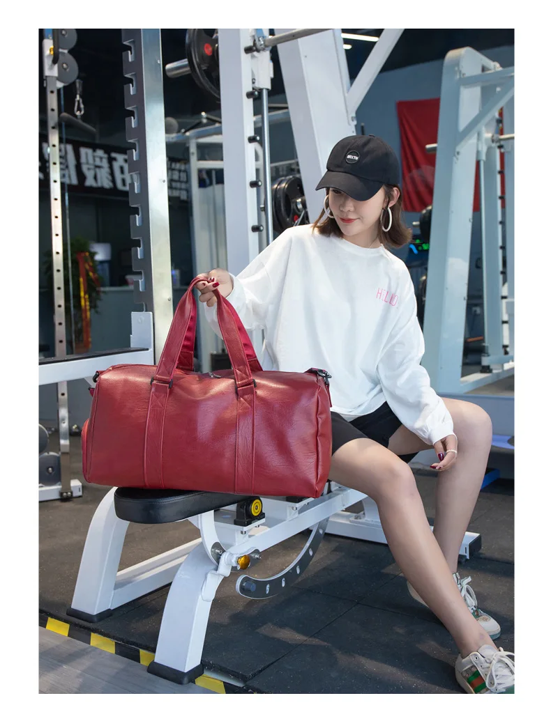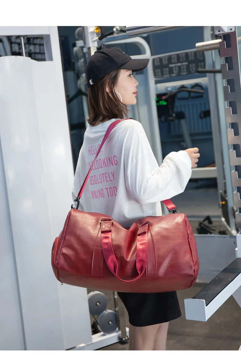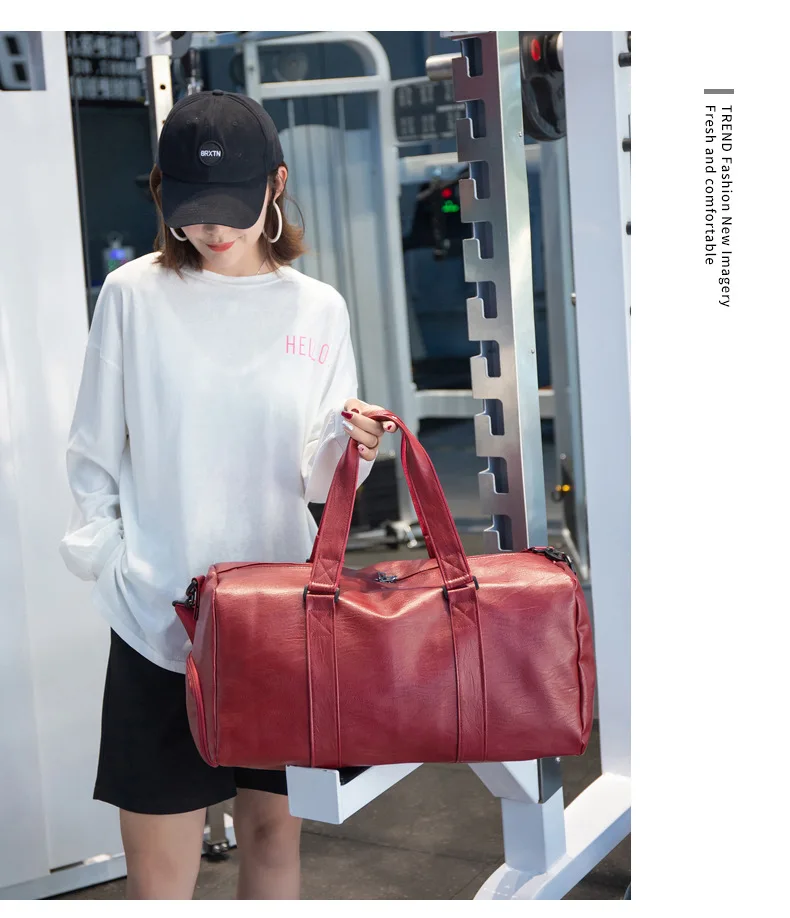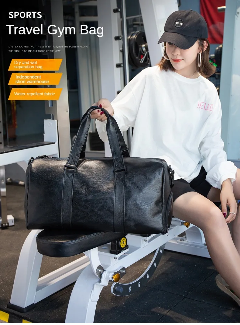 Custom logo Men's Fitness Sports Bag Duffel Oil Wax Pu Leather waterproof Swimming bag Travel Bag personality customization