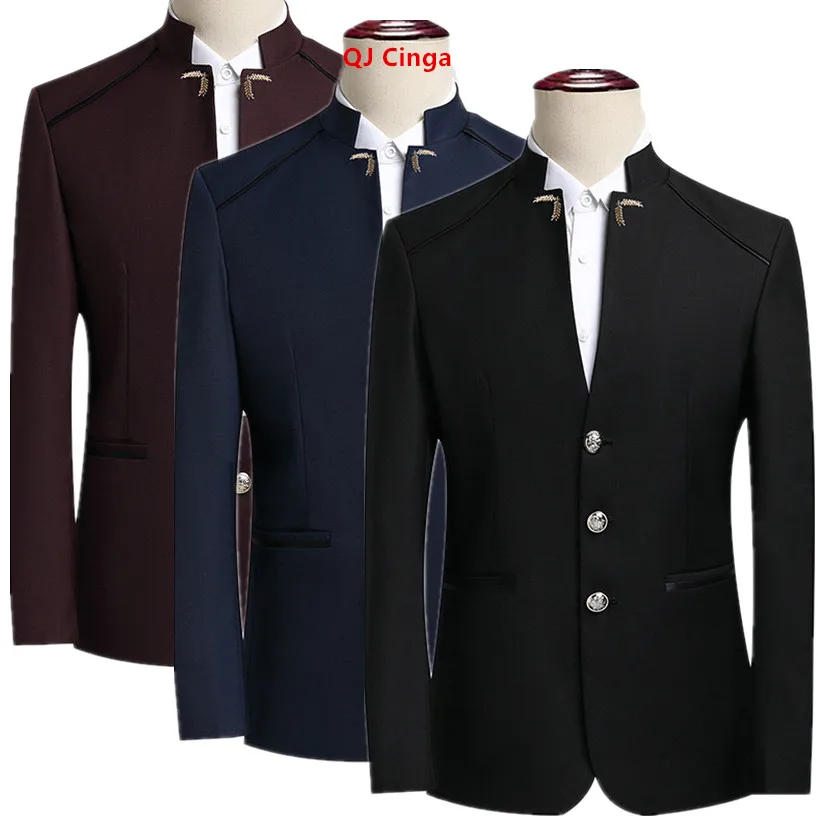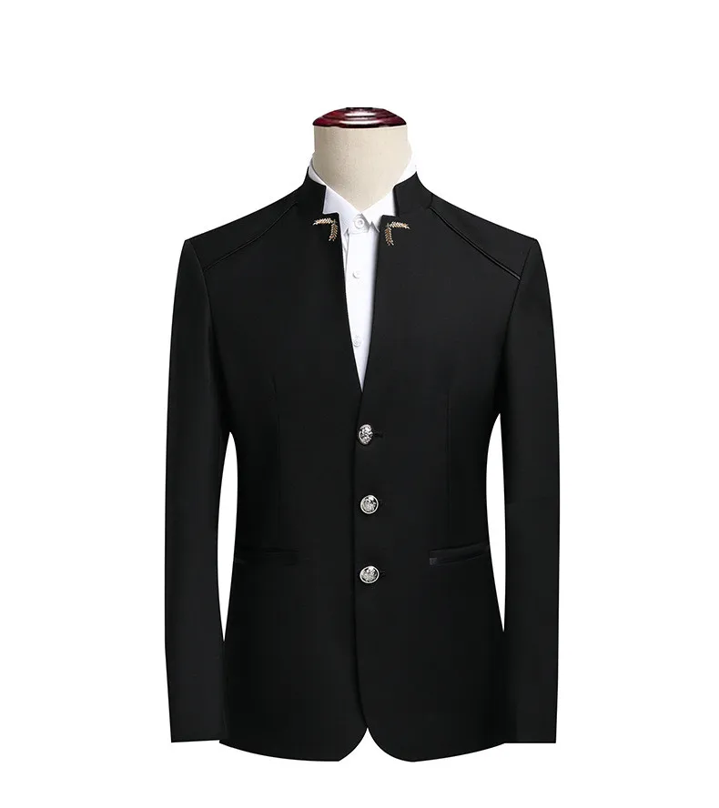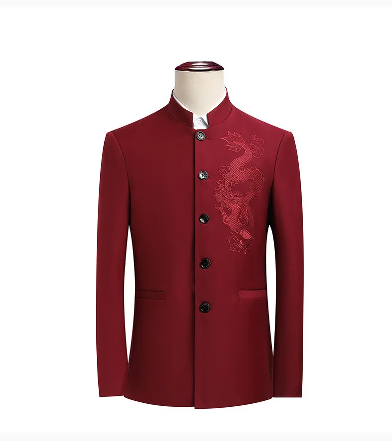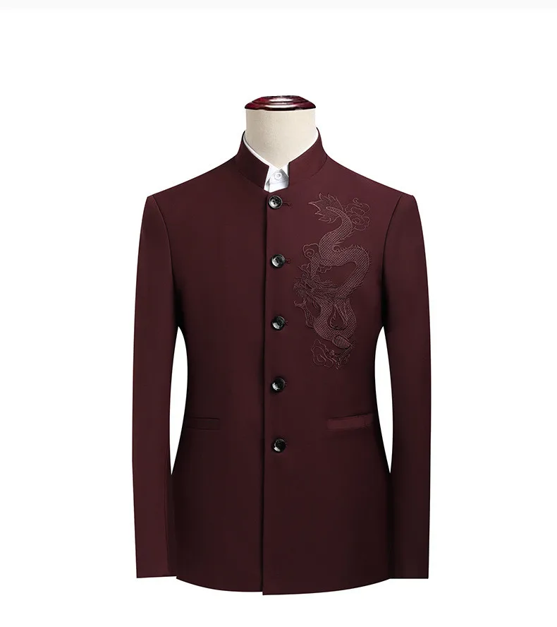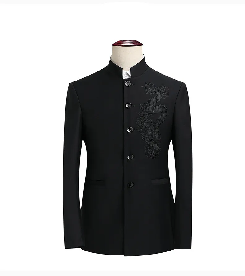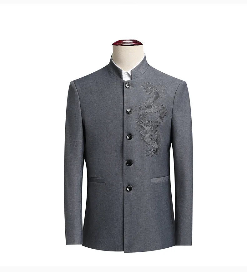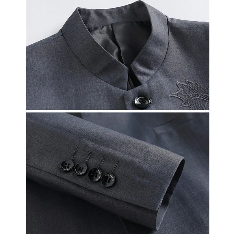 Elegant Black Chinese Dragon Embroidery Pattern Blazer for Men, Slim Fit Single-Breasted Gray Suit Jacket, Asian SizeM-6XL