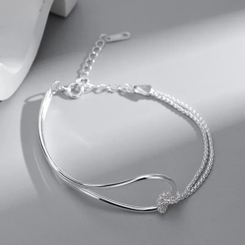 Elegant Minimalist Design Bracelet for Women Ladies Geometric Double Layered Knotted Lines Handmade Chain Jewelry Gifts