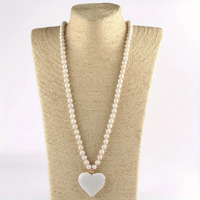 Ethnic style Creative turquoise necklace Women's heart pendant Vintage turquoise long necklace sweater chain