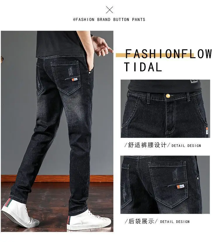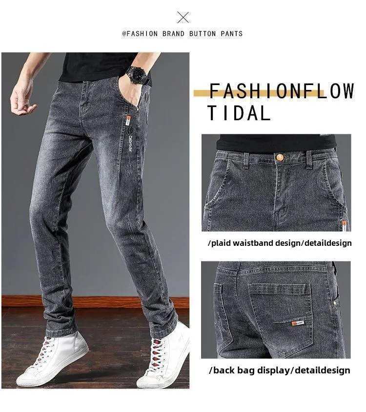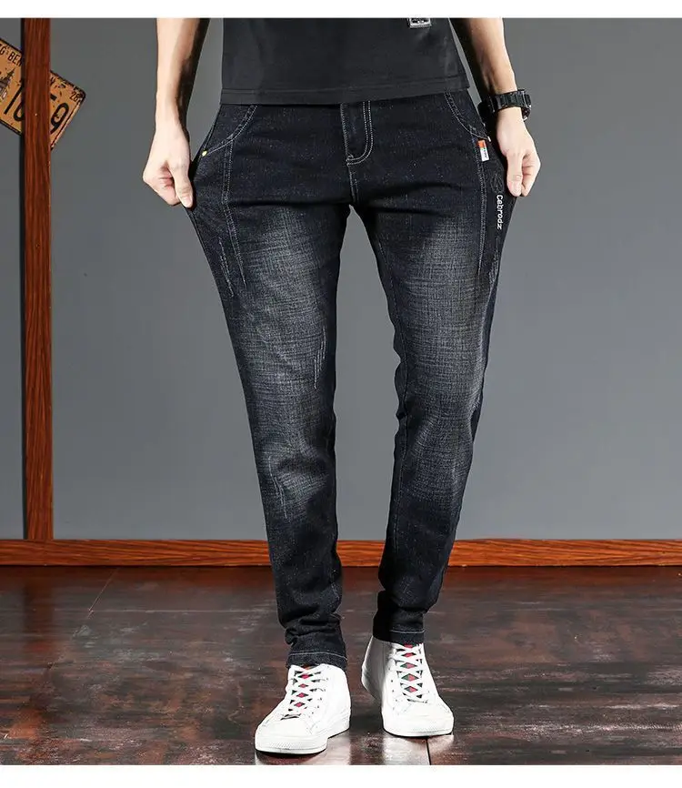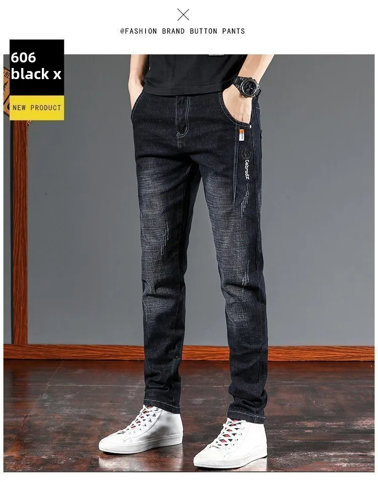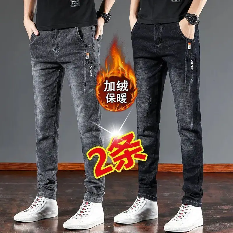 Fashion Men's Jeans Fashion Casual Slim Autumn Winter Fleece Kpop Denim Pants Plus Velvet Korean Luxury Clothing Classic Jeans