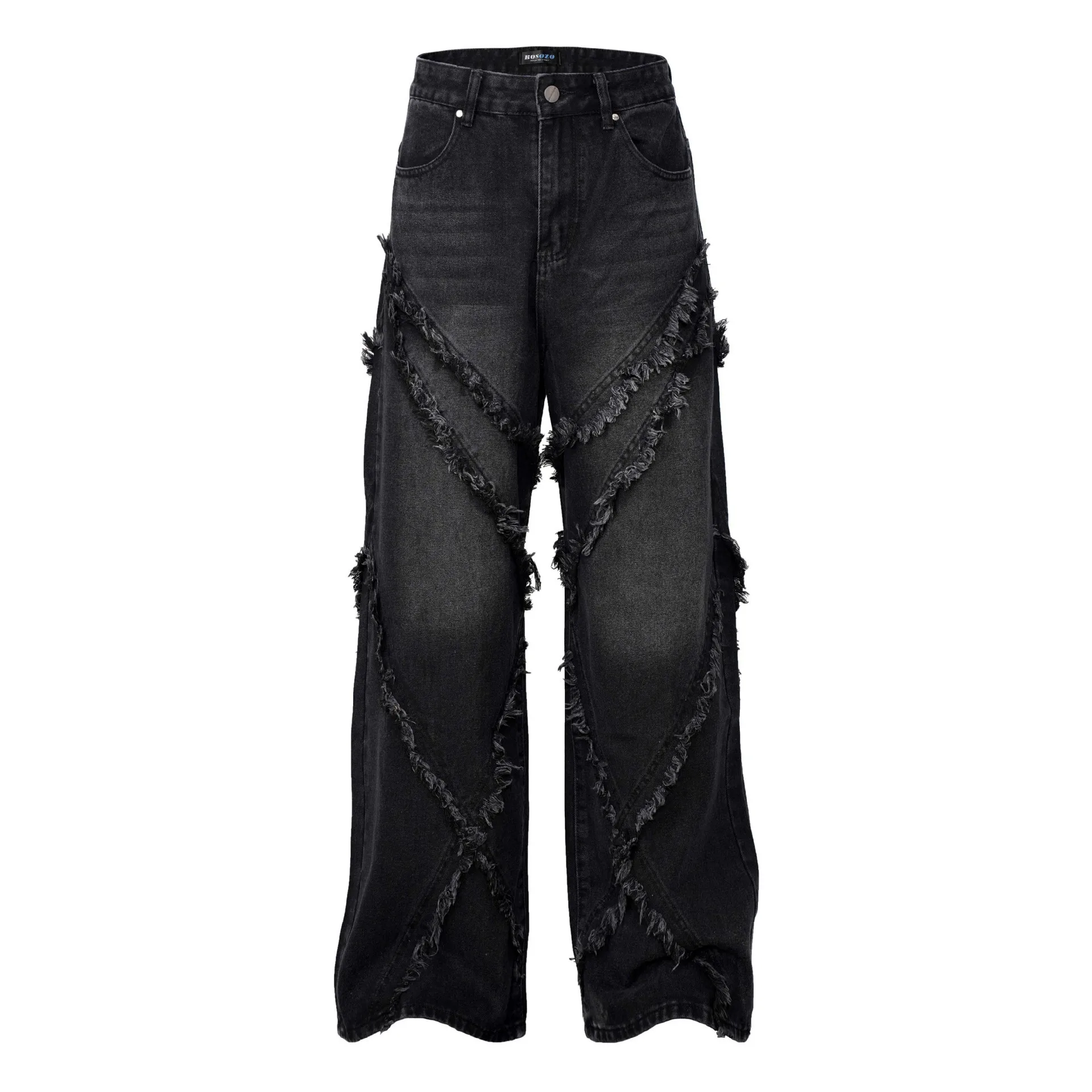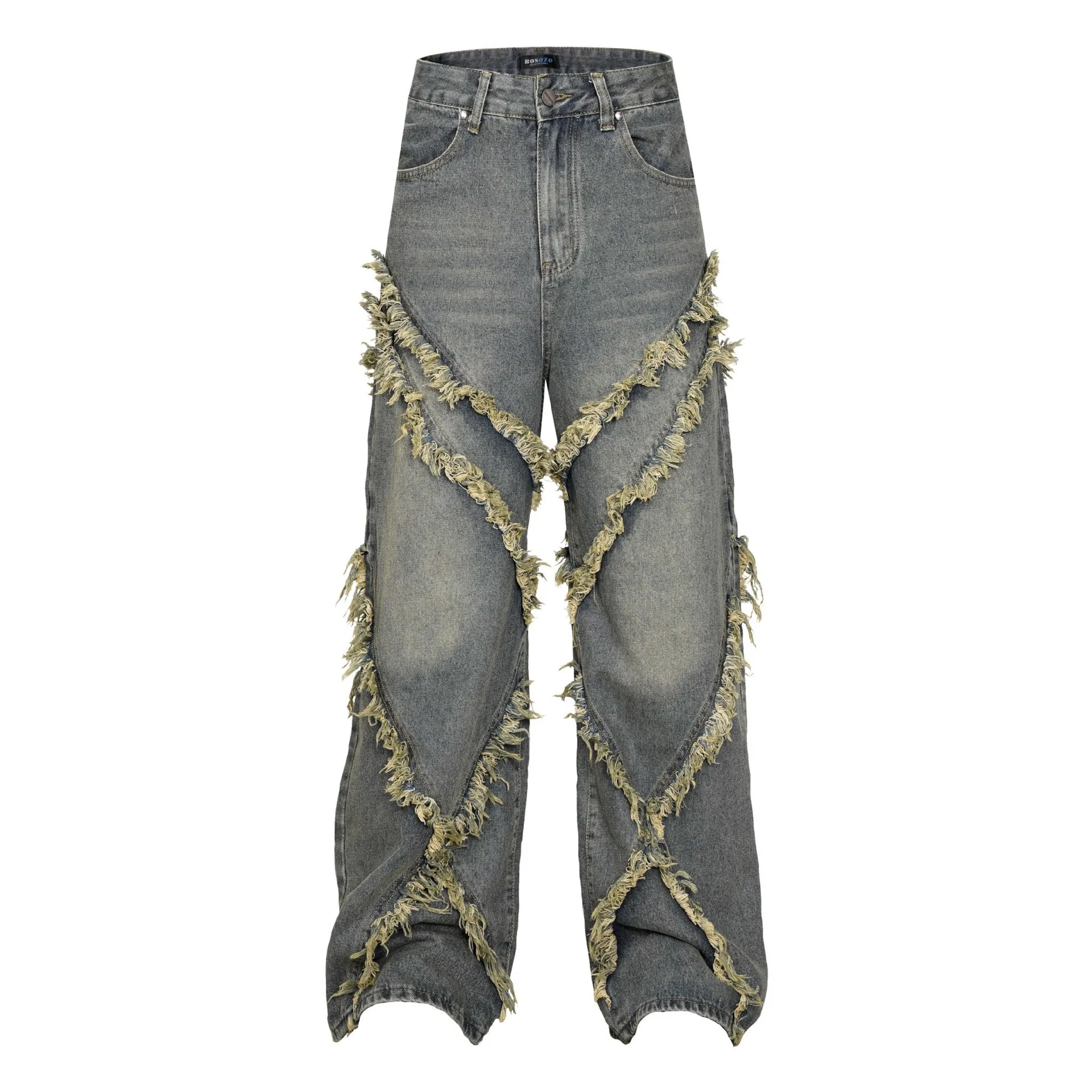 High Street American Washed Old Splicing Cat Whisker Jeans Men's and Women's Same Trendy Brand Loose Wide Leg Straight Pants