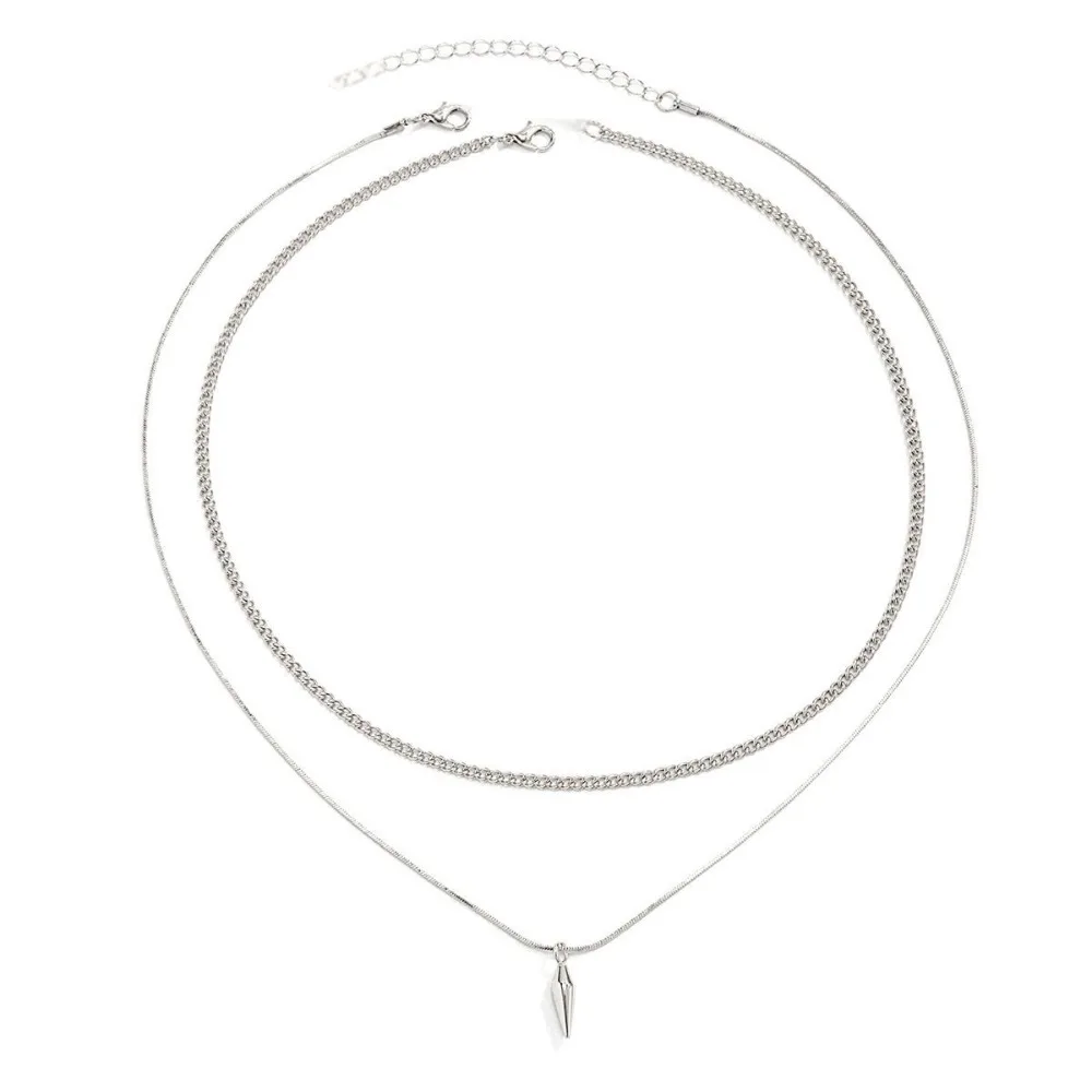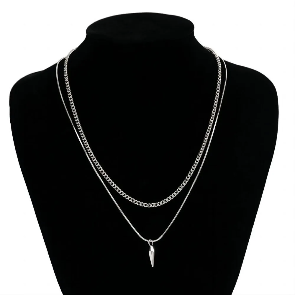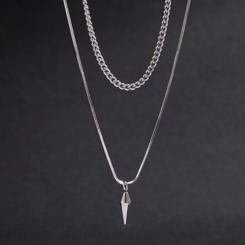 Hip-hop Fashion Double Layer Fold Wear Rivets Pendant Necklace Stainless Steel Clavicle Chain for Men Jewelry Accessories Gifts