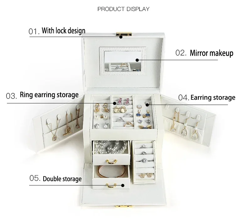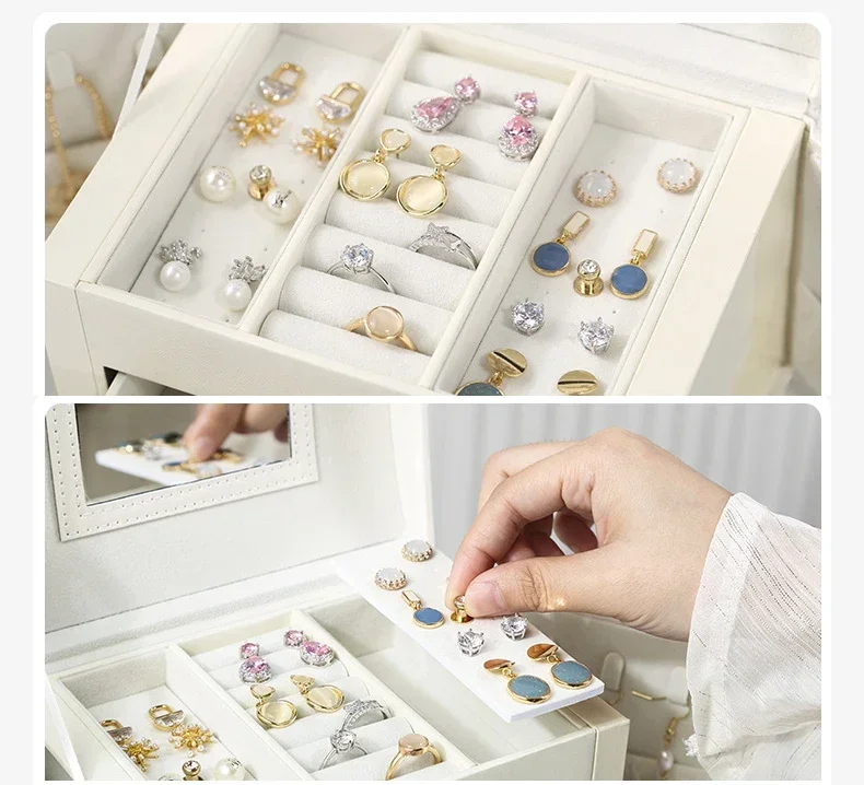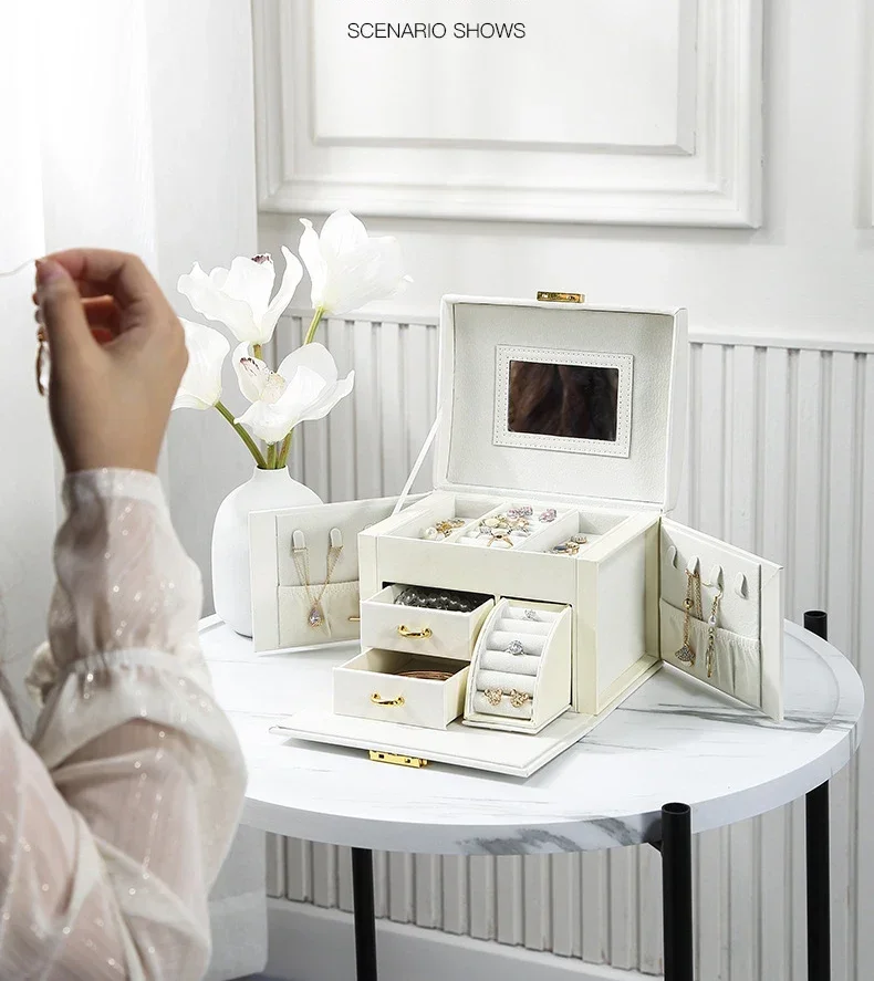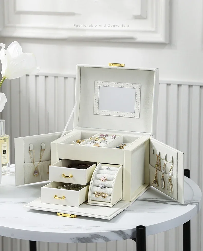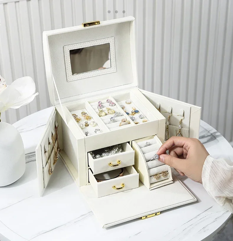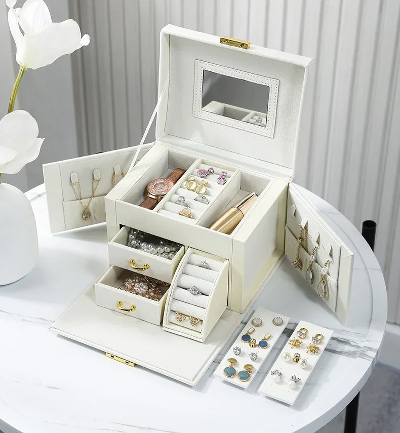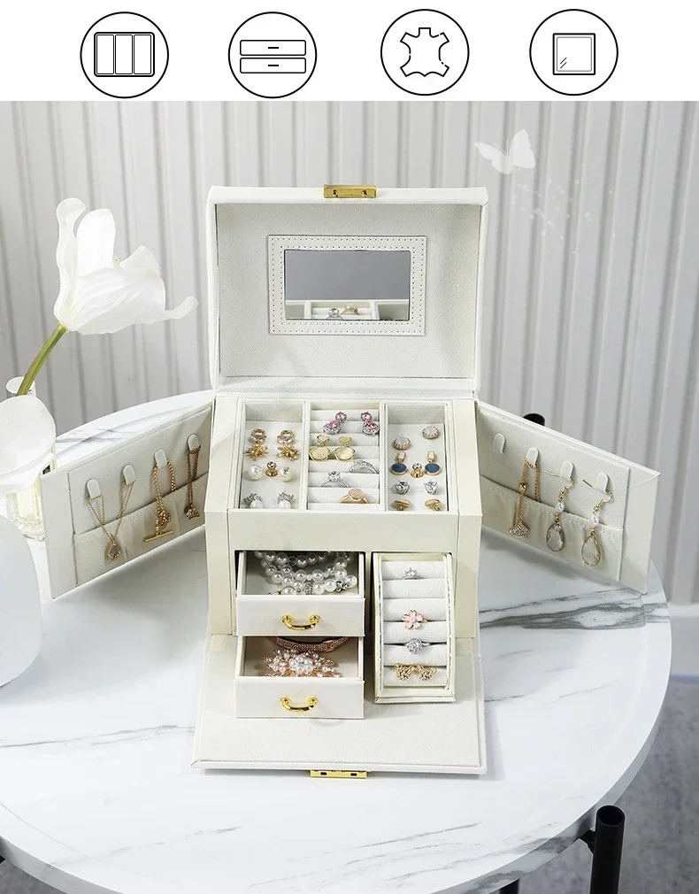 Hot Sale Large Jewelry Box Organizer PU Leather Multifunctional Drawer Velvet Earring Ring Necklace Storage Case Women Gifts