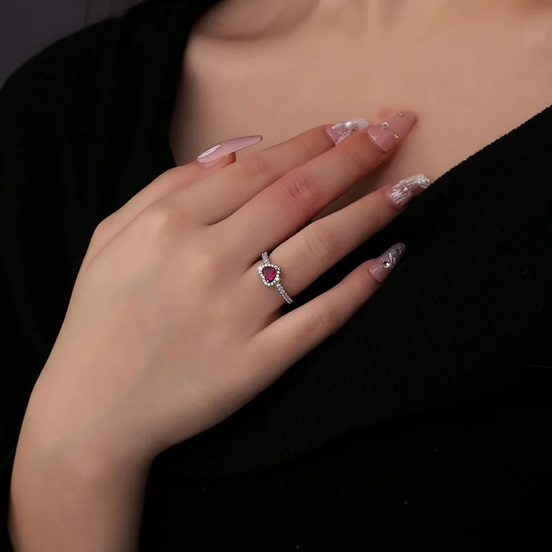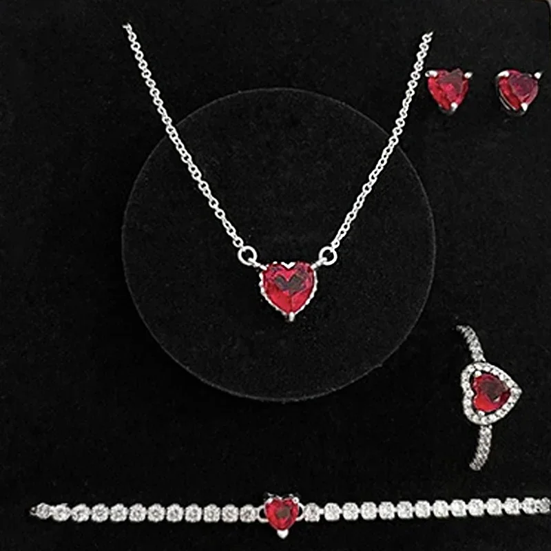Hot selling 925 sterling silver sparkling red heart series set, light luxury jewelry set, DIY charming jewelry, birthday gift