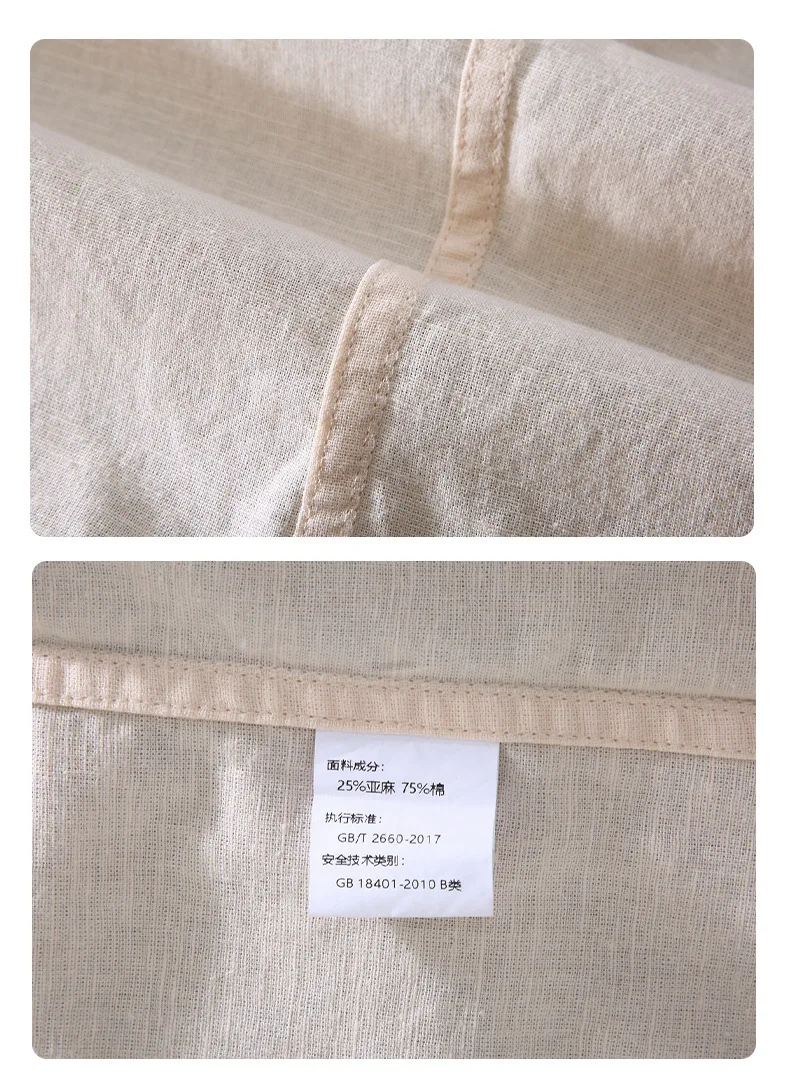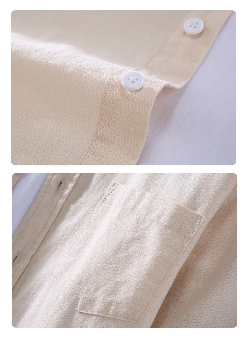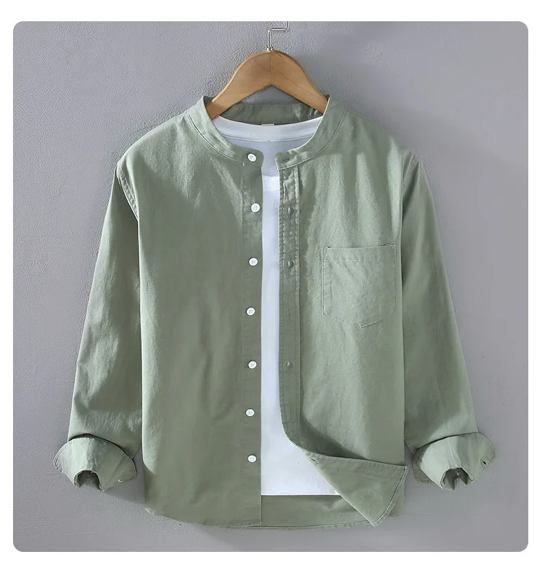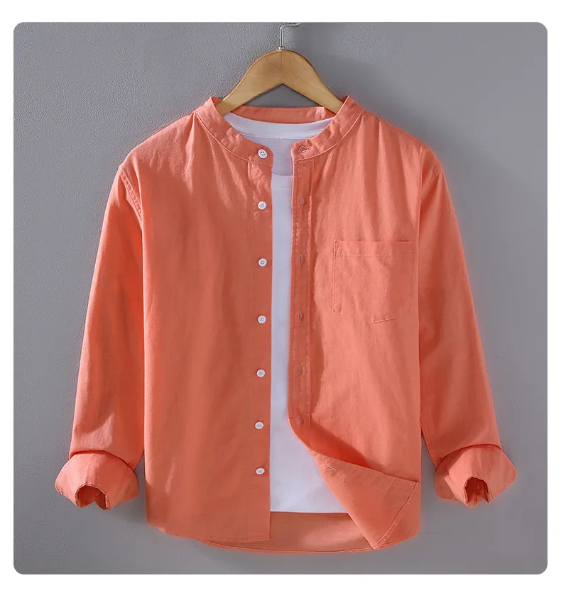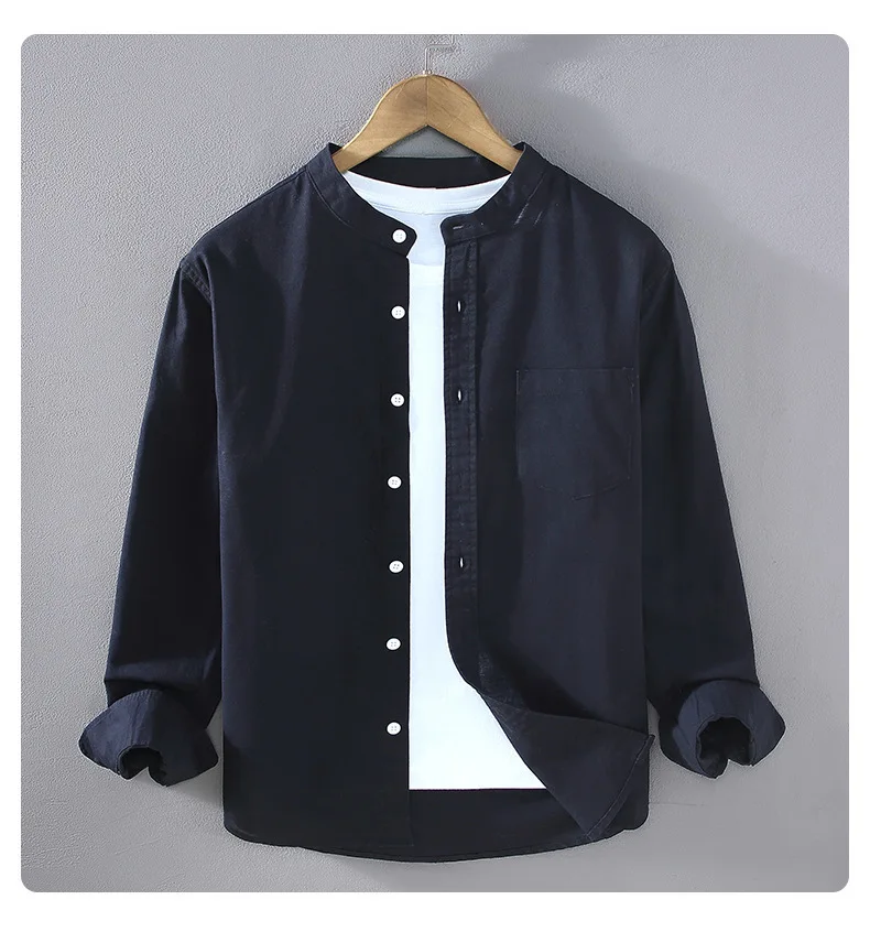 Japanese Mens Linen Cotton Thin Shirt Harajuku Stand Collar Long Sleeve Solid Color Shirts Male Casual Breathable Classical Tops