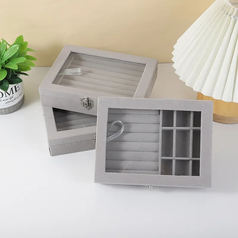 Jewelry Storage Box Earring Ring Necklace Organizers Storage Transparent Jewlery Holder Display Box for Jewelry Classification