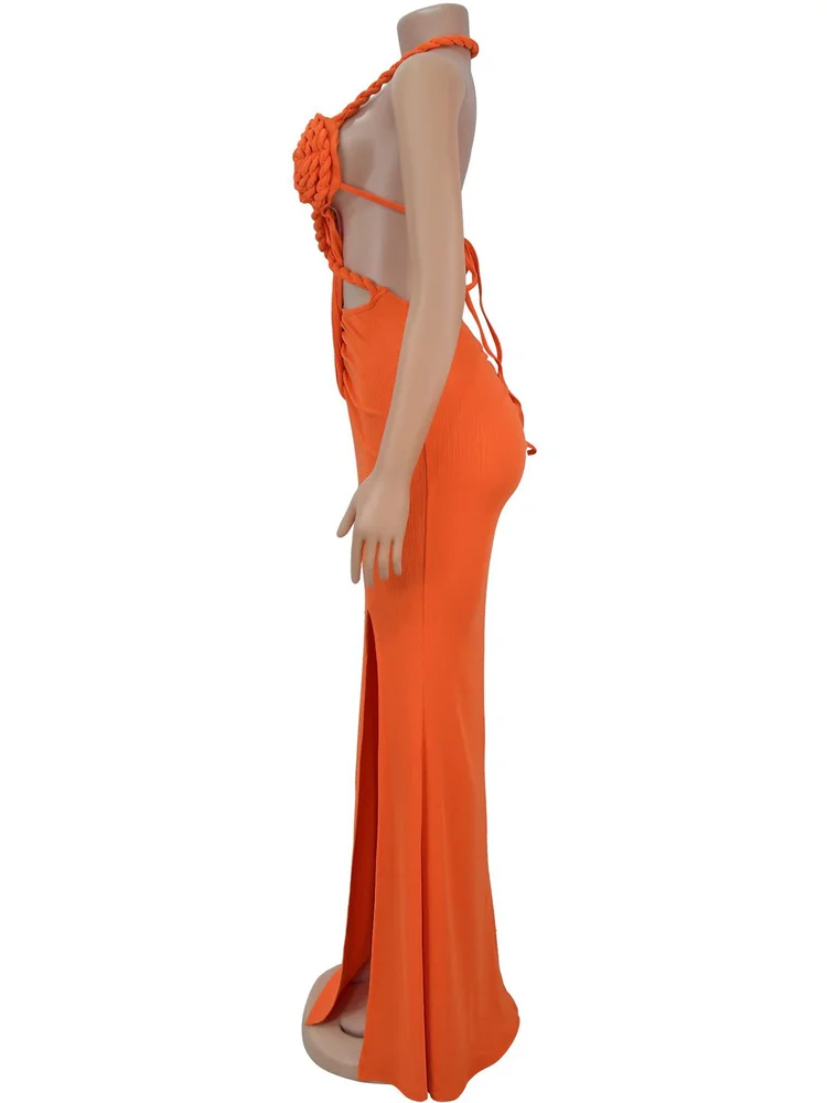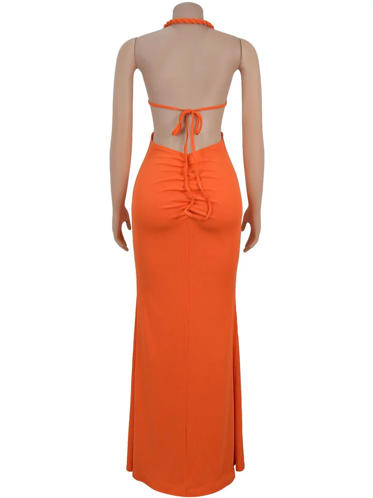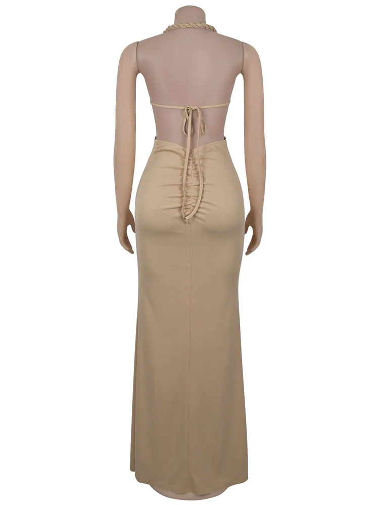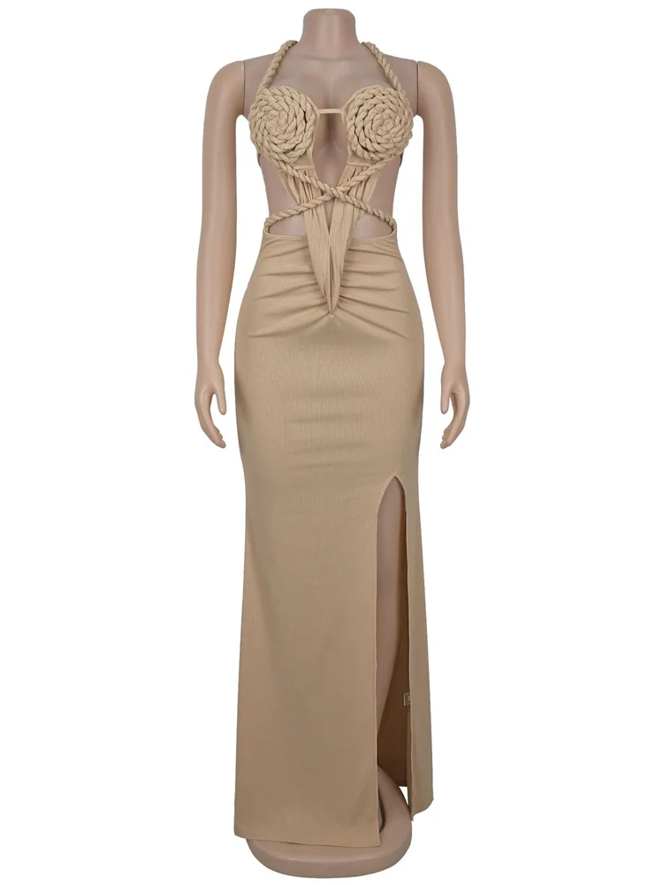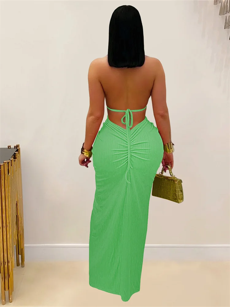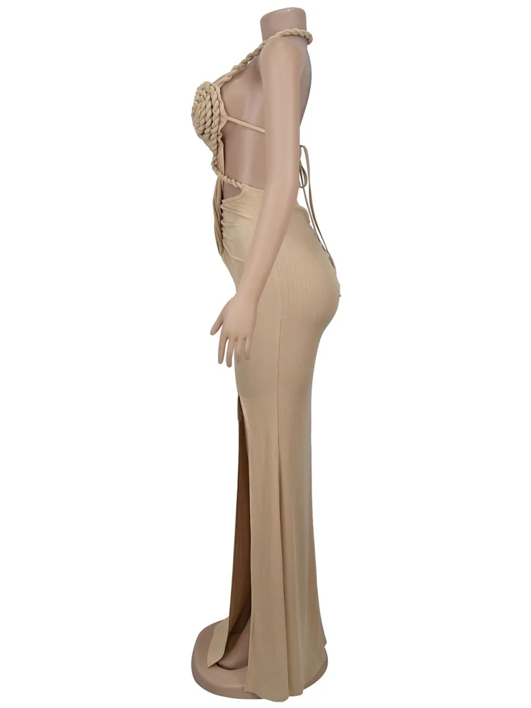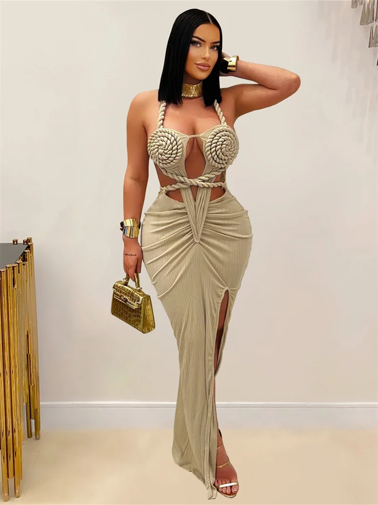 kliou Sexy Knitted Women Maxi Dress Hipster Coquette Halter Lace Up Backless Split Sheath Vestidos Mujer Nightout Party Frock