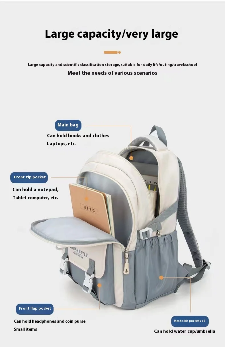 Large Capacity Backpack 2024 New College Style Female Leisure Backpack Fashion Travel Junior High School Students