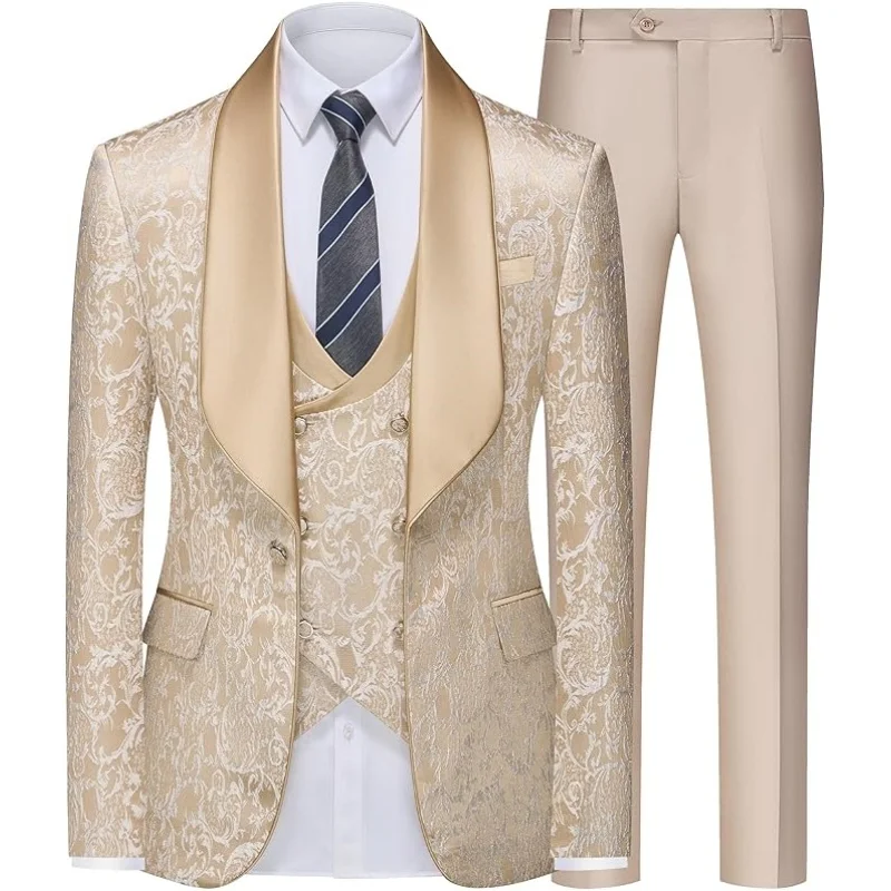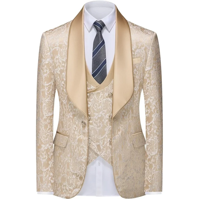 Men's 3-Piece Slim Fit Suit Set | Wedding & Prom Tuxedo (Blazer+Vest+Pants) for Formal Events & Groom Attire Breathable Lining