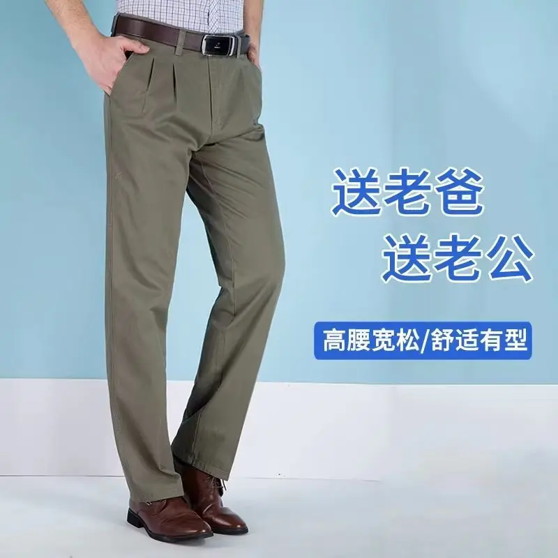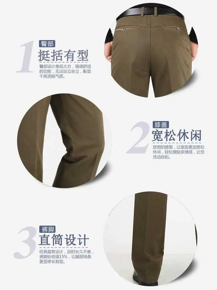Men's Autumn Thick Cotton Classic Solid Color Casual Pants Bland High Waist Trousers Business Office Pants Clothing A240