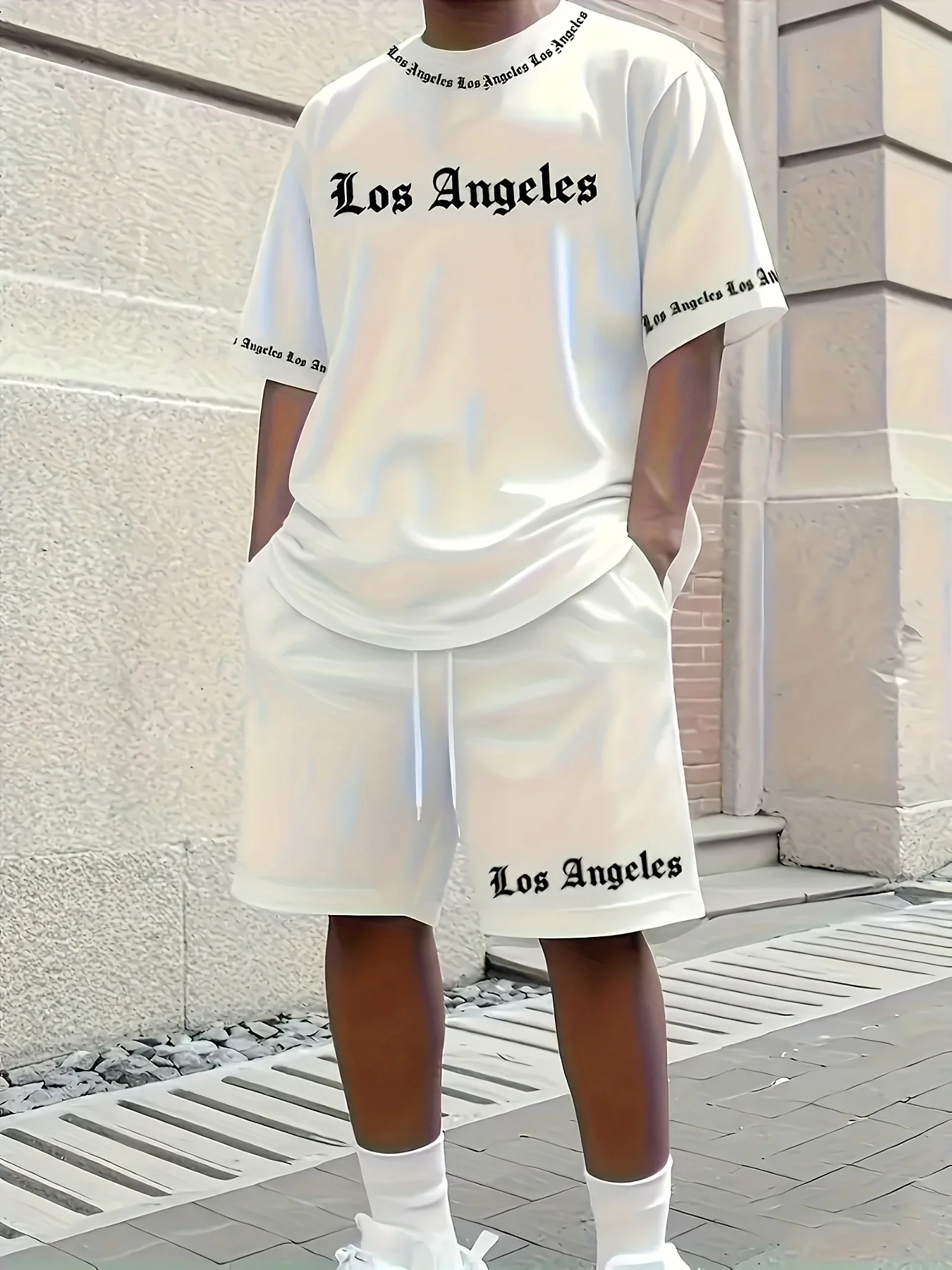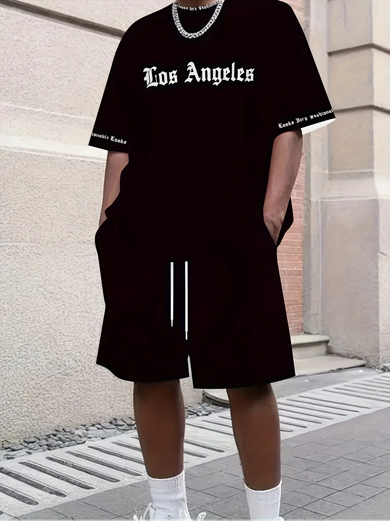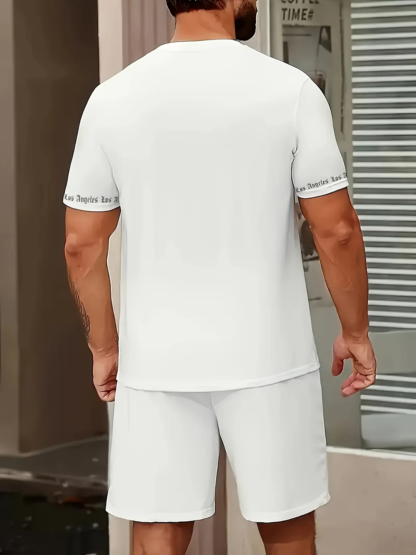 Men's Casual LA Patterned Suit, Soft and Breathable Summer Suit, Drawstring Shorts, Casual Summer Wear, Comfortable Fit