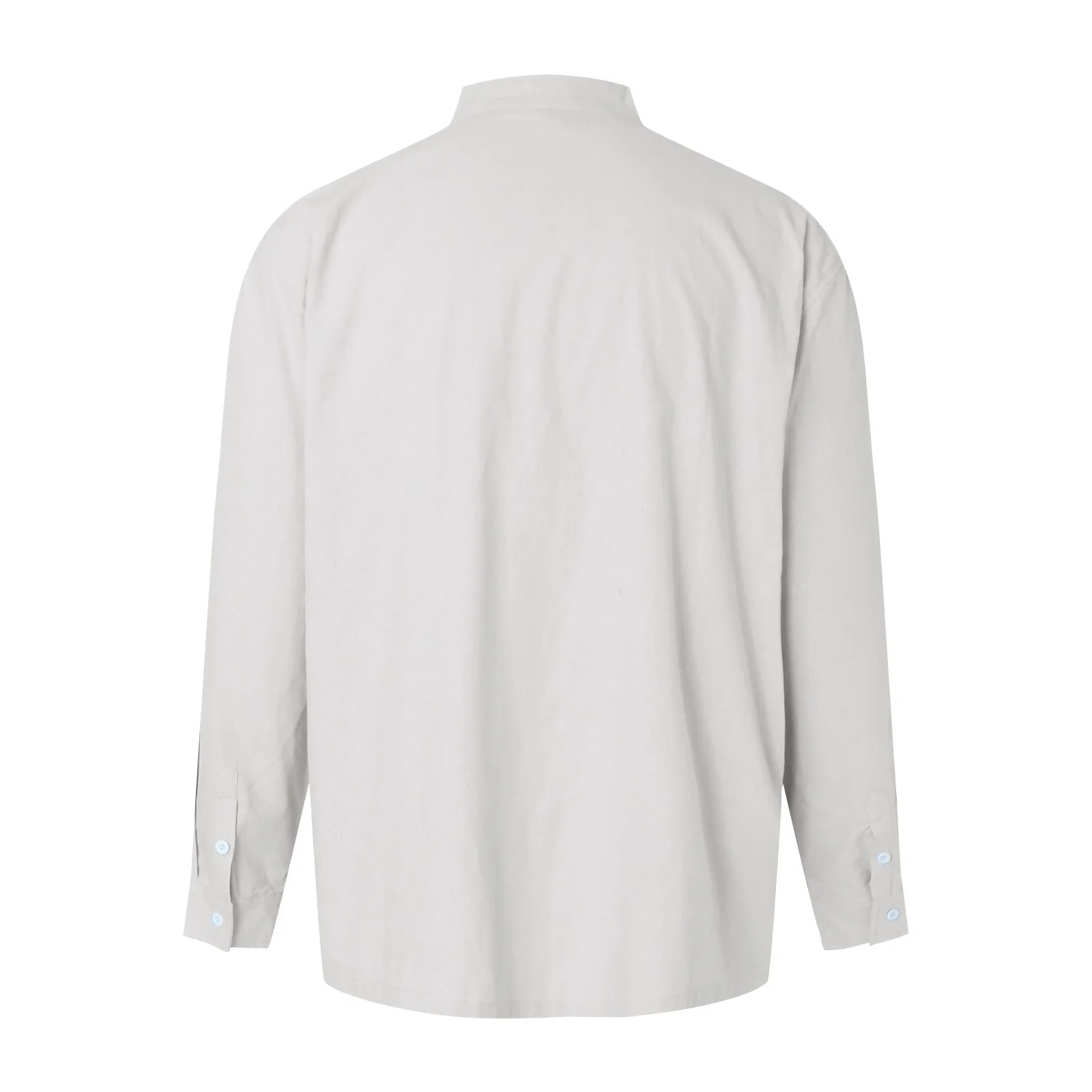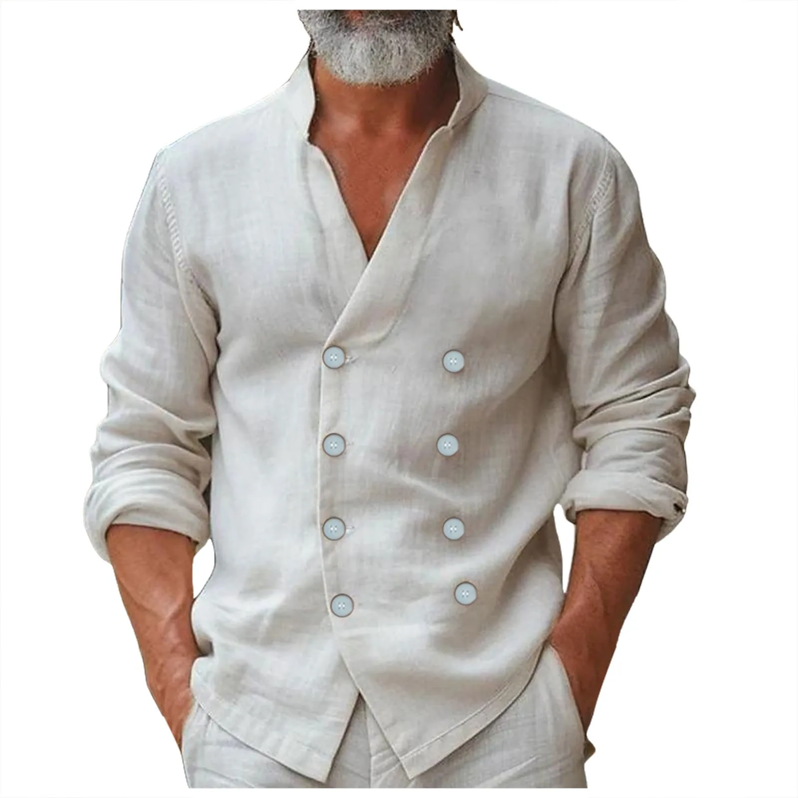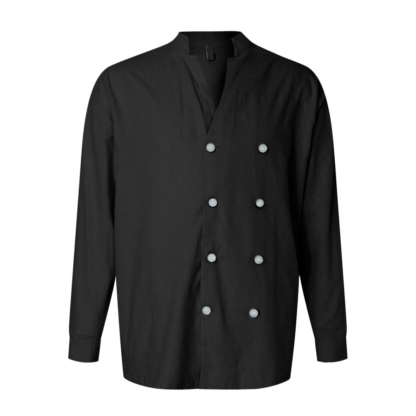 Mens Double Breasted Stand Up Solid Color Long Sleeved Shirt