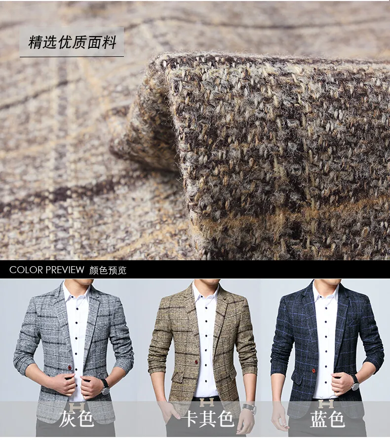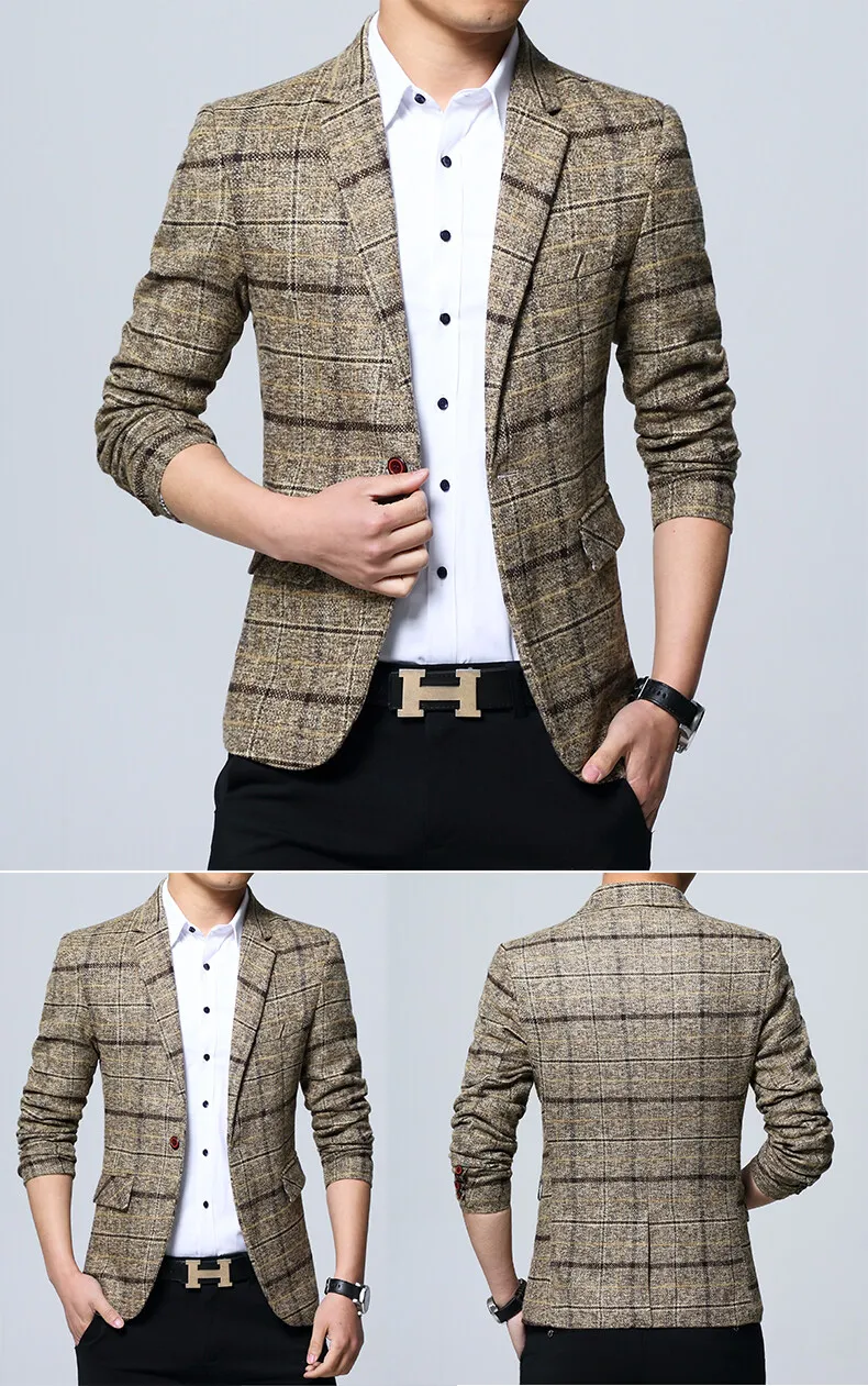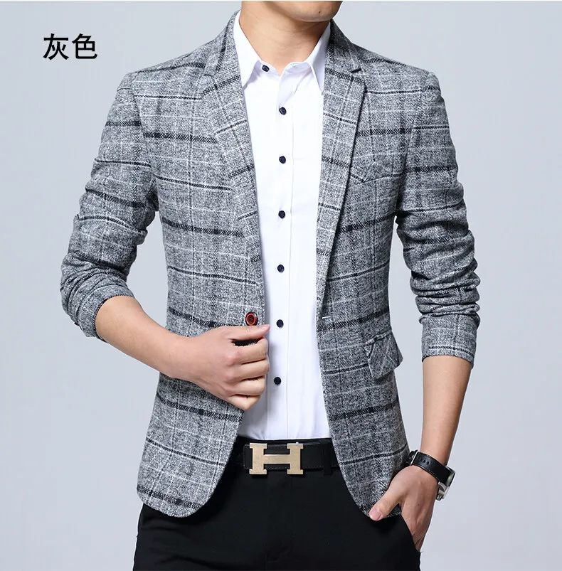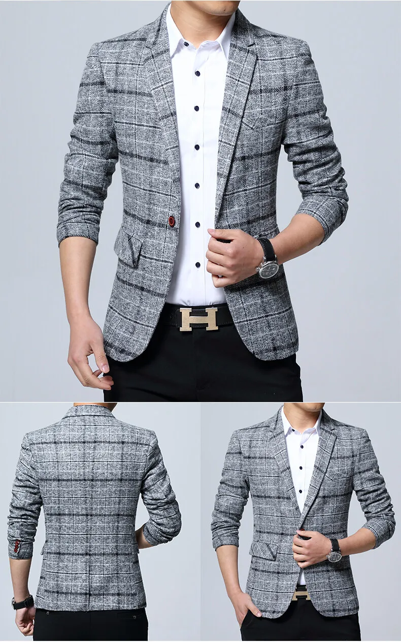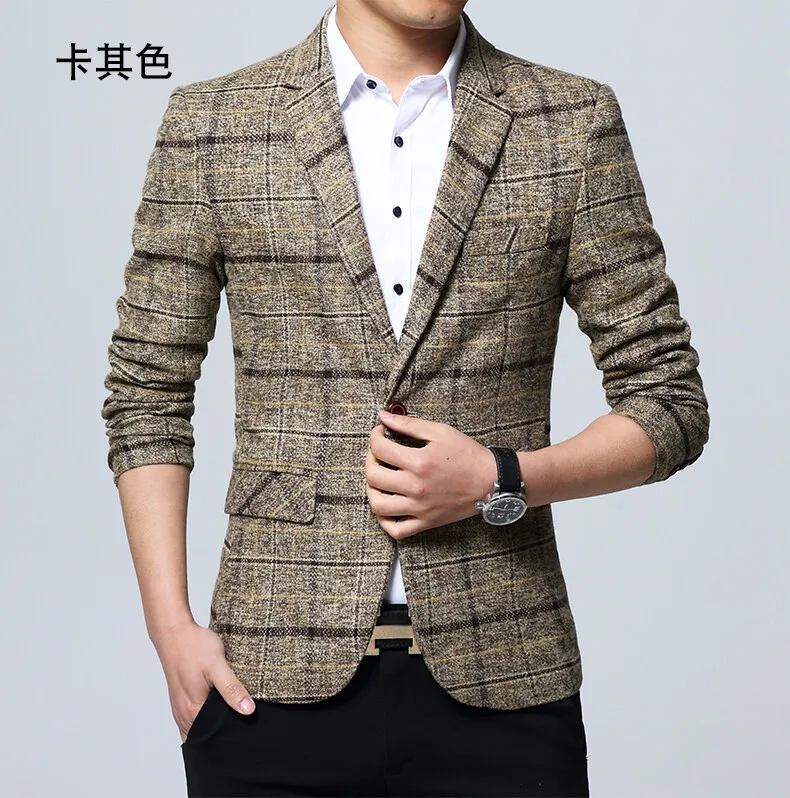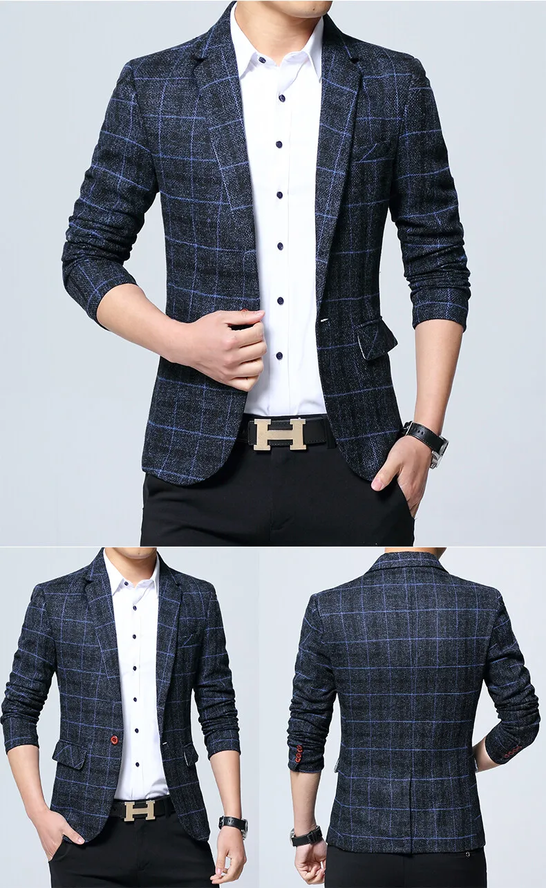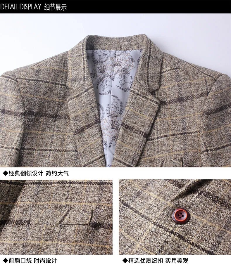 Men's Korean Style Spring Autumn Casual Small Suit Checkered Jacket Fitted Large Size Single Western Wear
