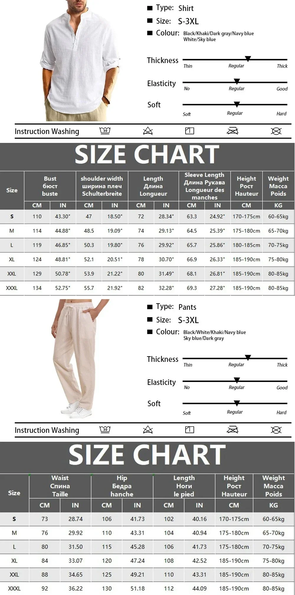 Men's Shirt Pants Suit Summer Breathable Beach Hawaiian Vacation Casual Long Sleeves Set Solid Color Loose Jogging Trousers