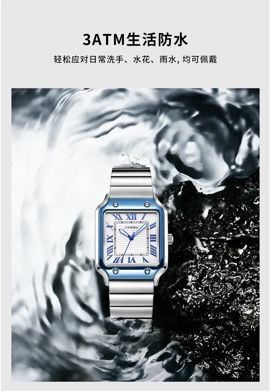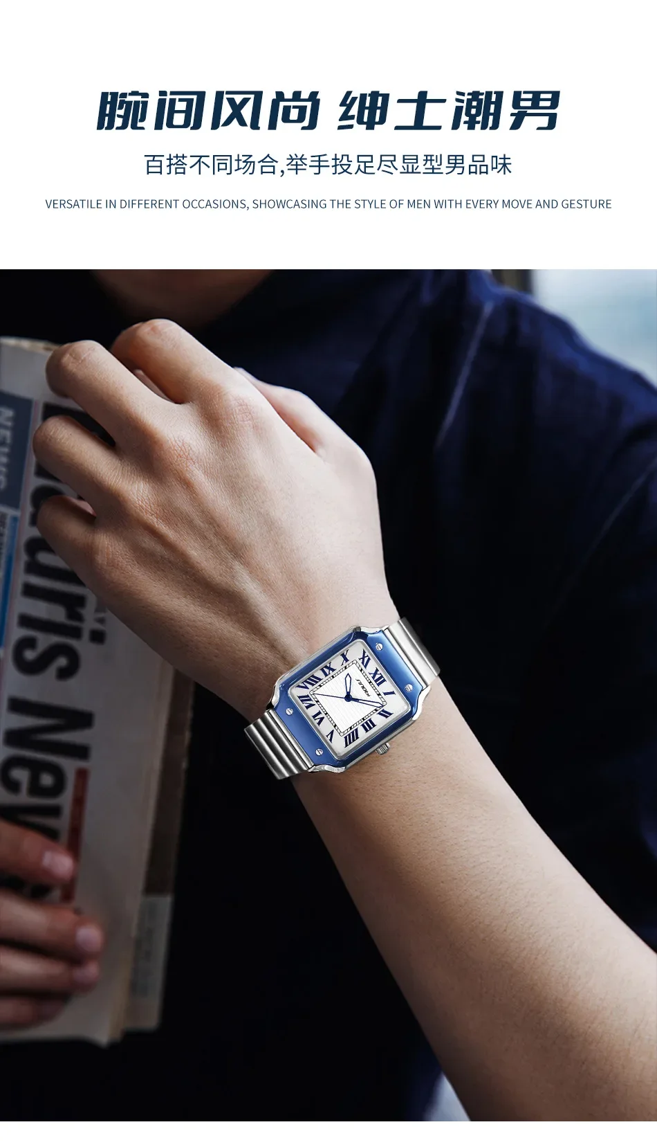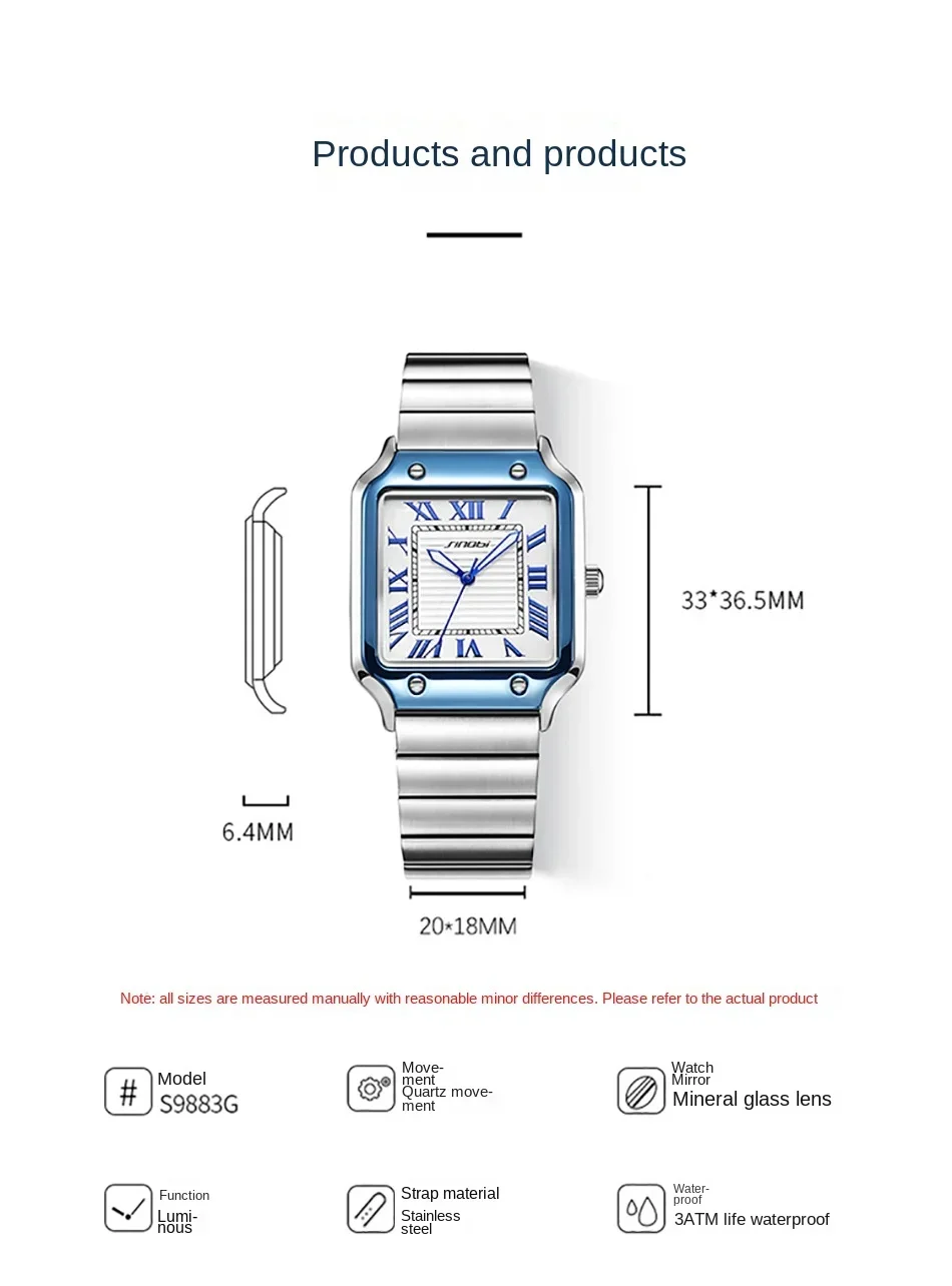 Men's Watch Men's Stable Classic Roman Square Watch Night Glow Waterproof Men's Quartz Watch 9883