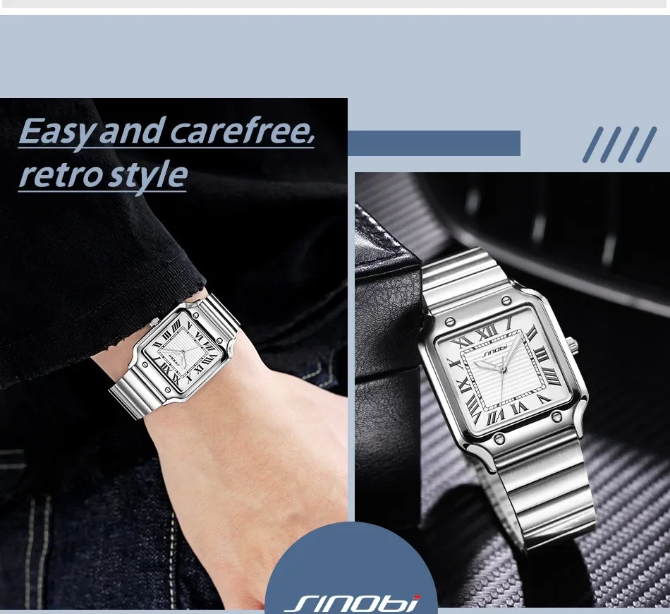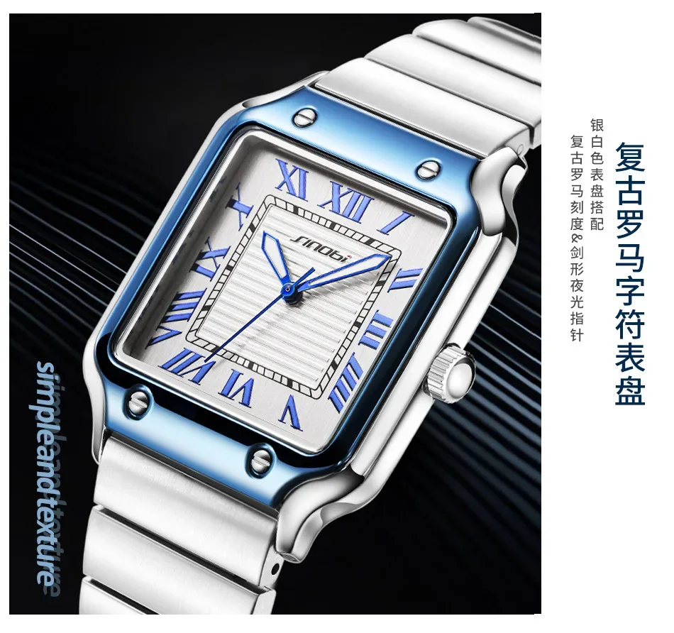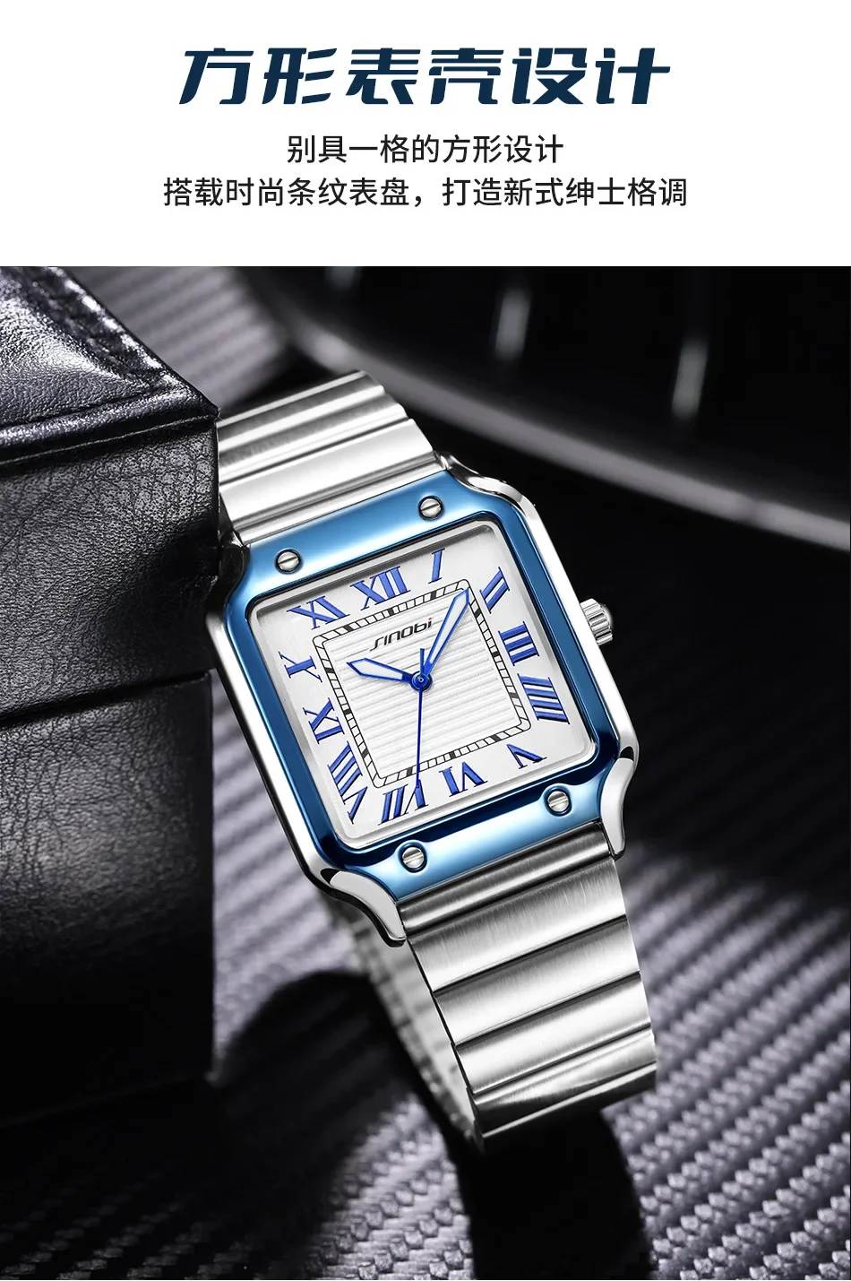 Men's Watch Men's Stable Classic Roman Square Watch Night Glow Waterproof Men's Quartz Watch 9883