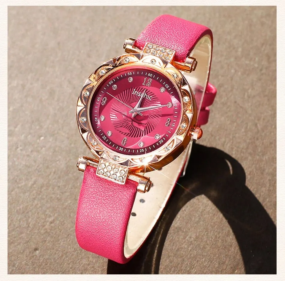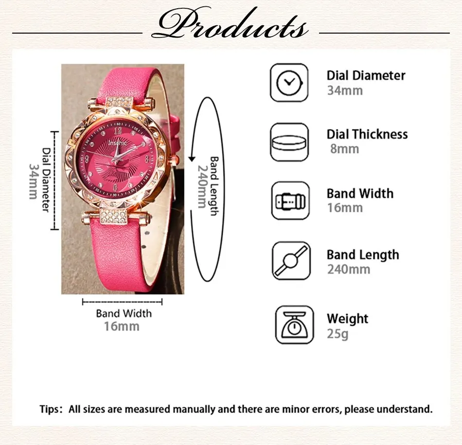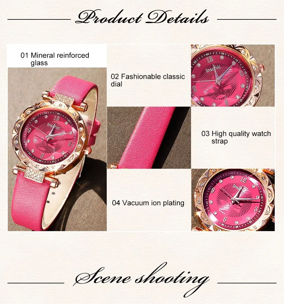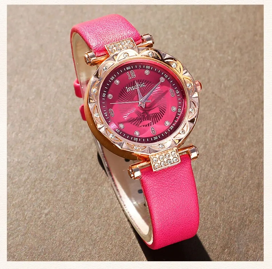 New Rose Red Watches Women Leather Band Ladies Watch Simple Casual Womens Analog WristWatch Bracelet Gift Montre Femme