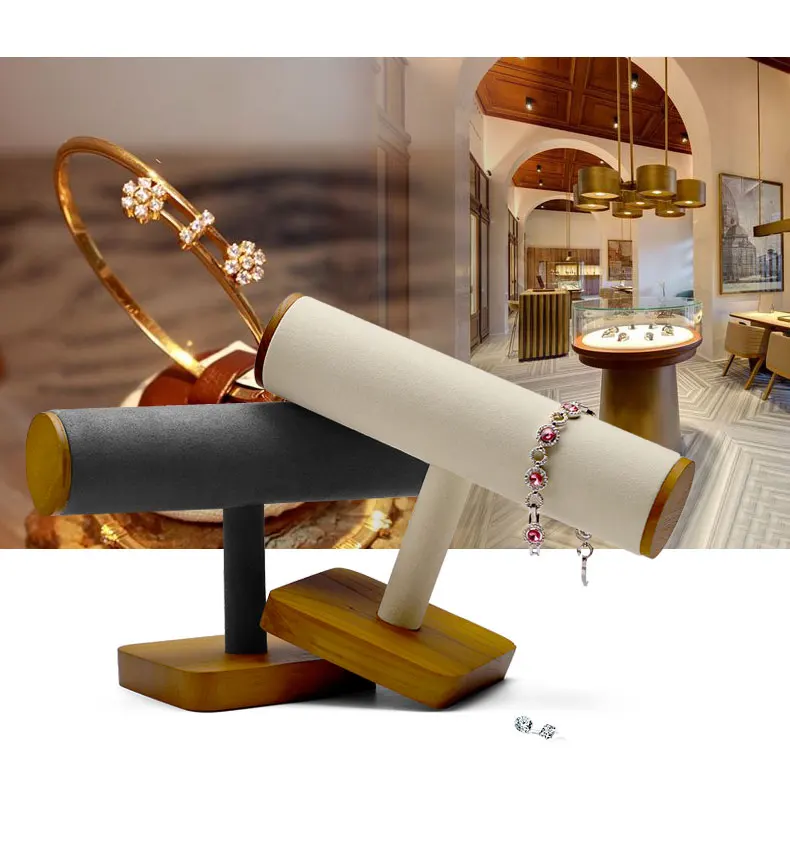 Oirlv Hot Wooden Hovering T-Bar Jewelry Display Stand Watches Bracelet Necklace Bangle Holder Jewelry Organization Holder Rack