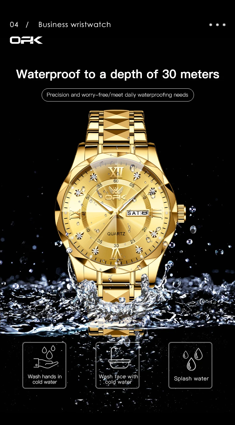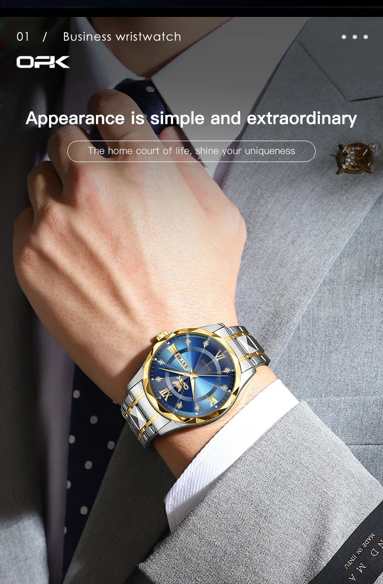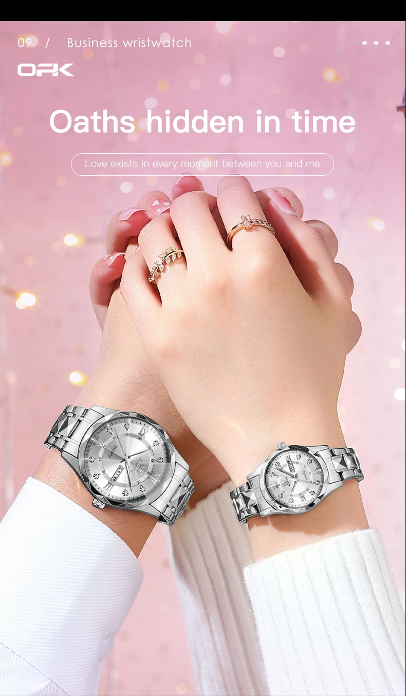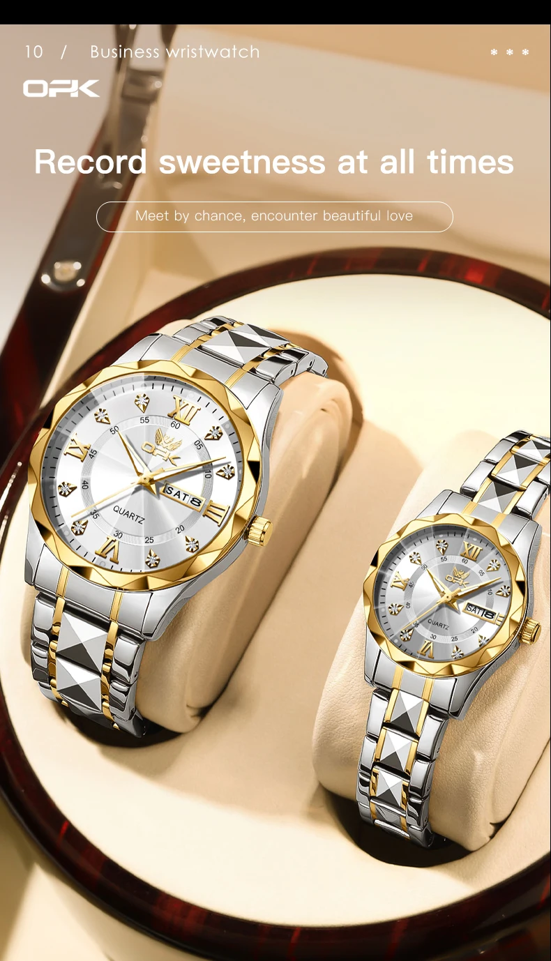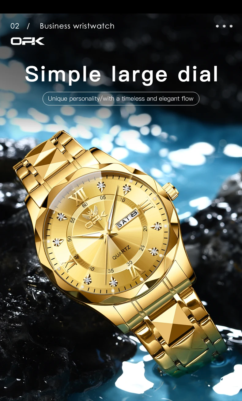 OPK Brand men's steel strap quartz watch dual calendar waterproof night light 6023
