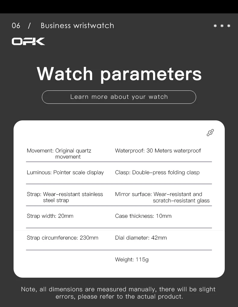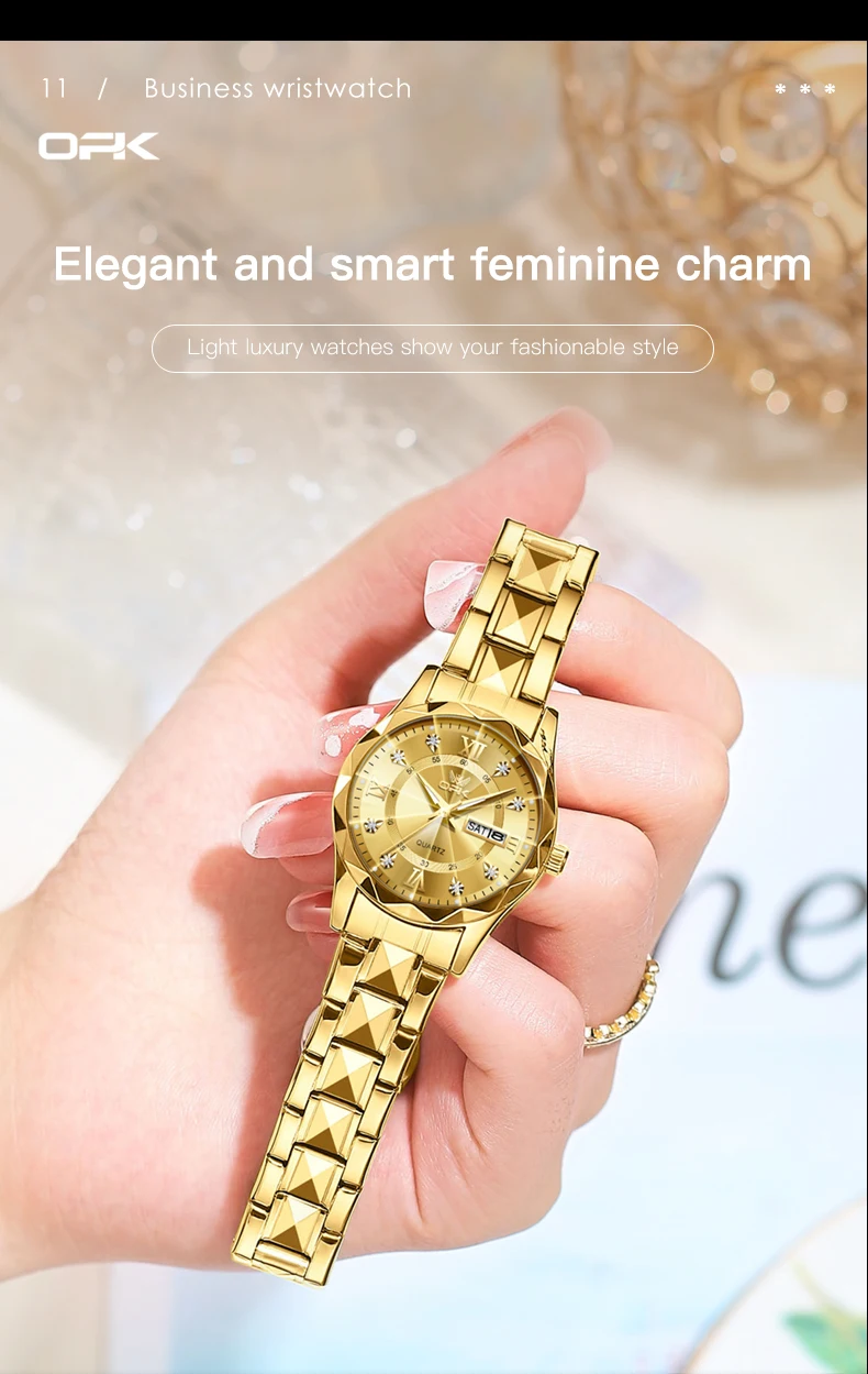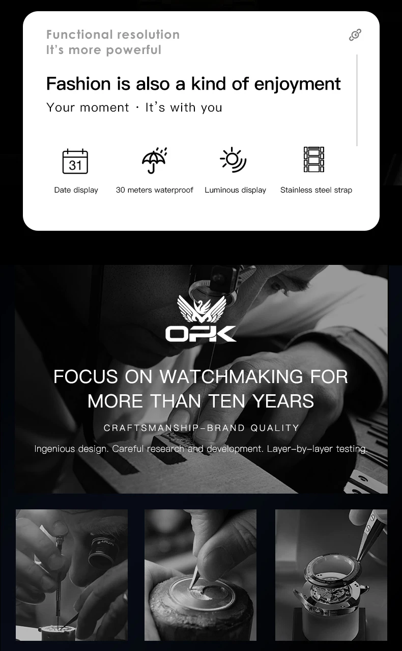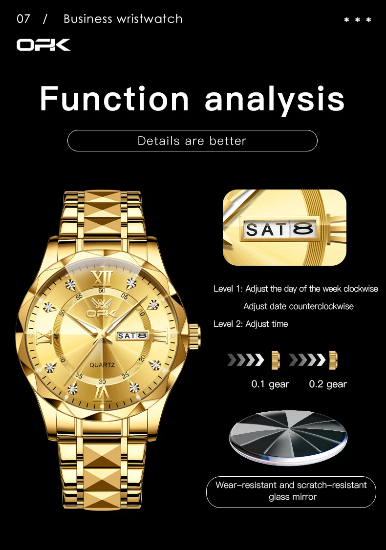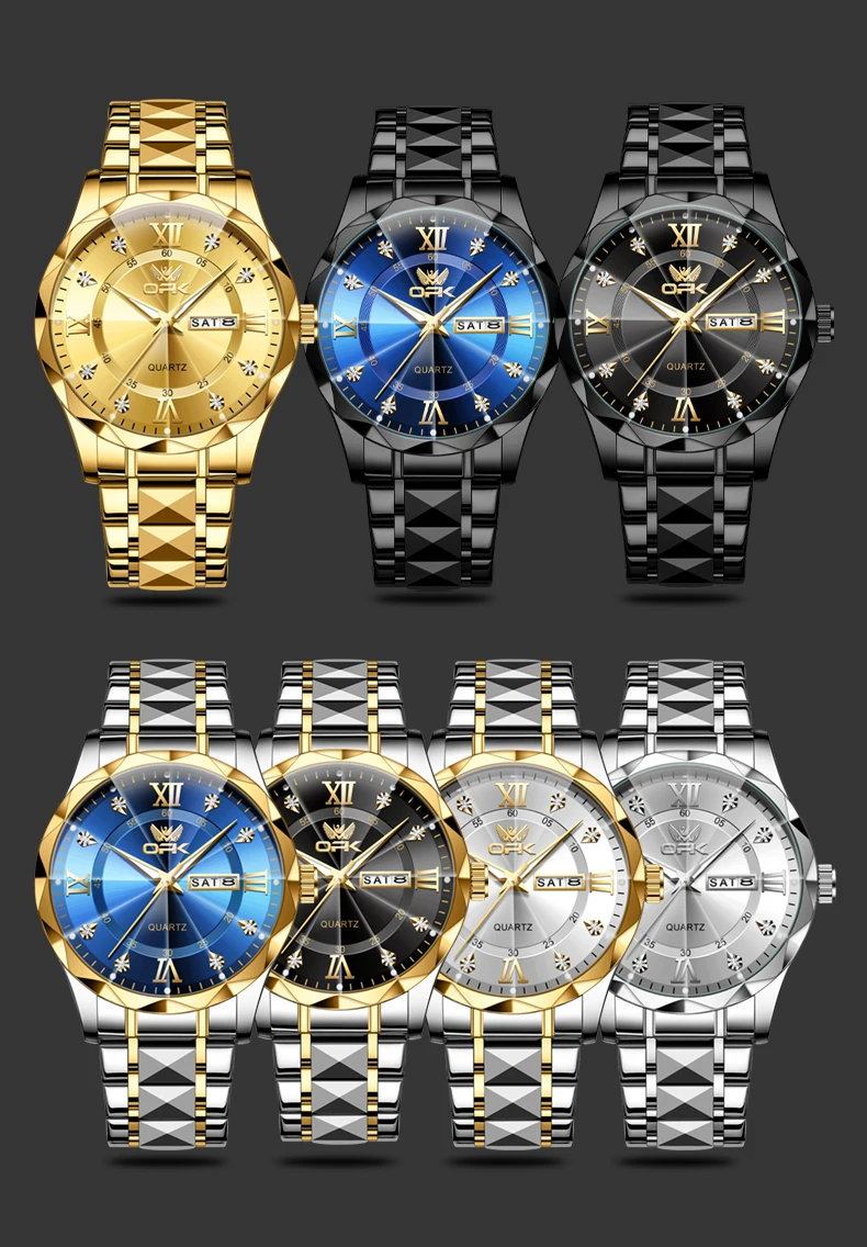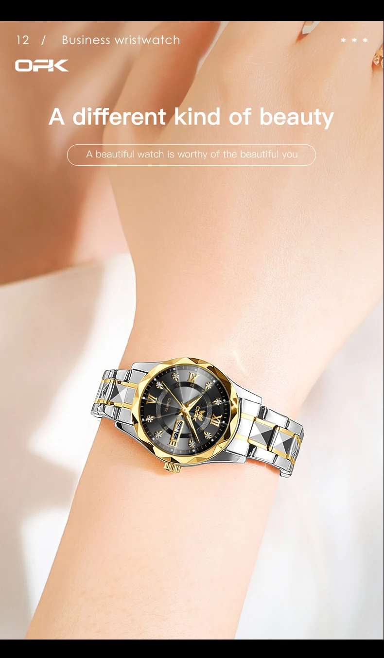 OPK Brand men's steel strap quartz watch dual calendar waterproof night light 6023