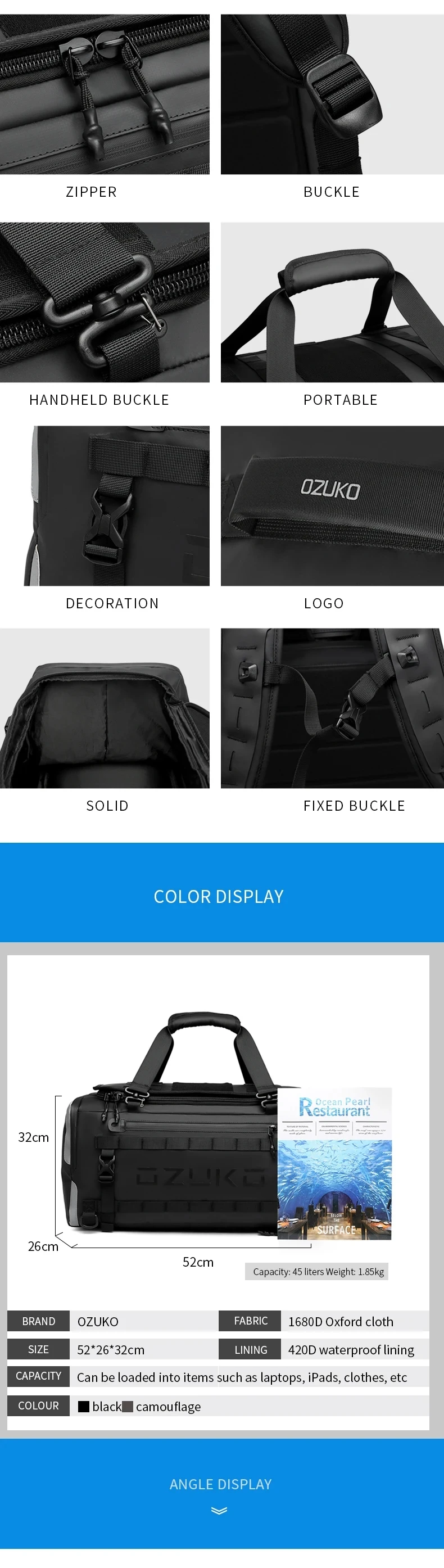 ozuko Airplane travel backpacMen's Sports Fitness Dry and Wet Separation Travel Bag Short Business Trip Weekend Camping Backpack
