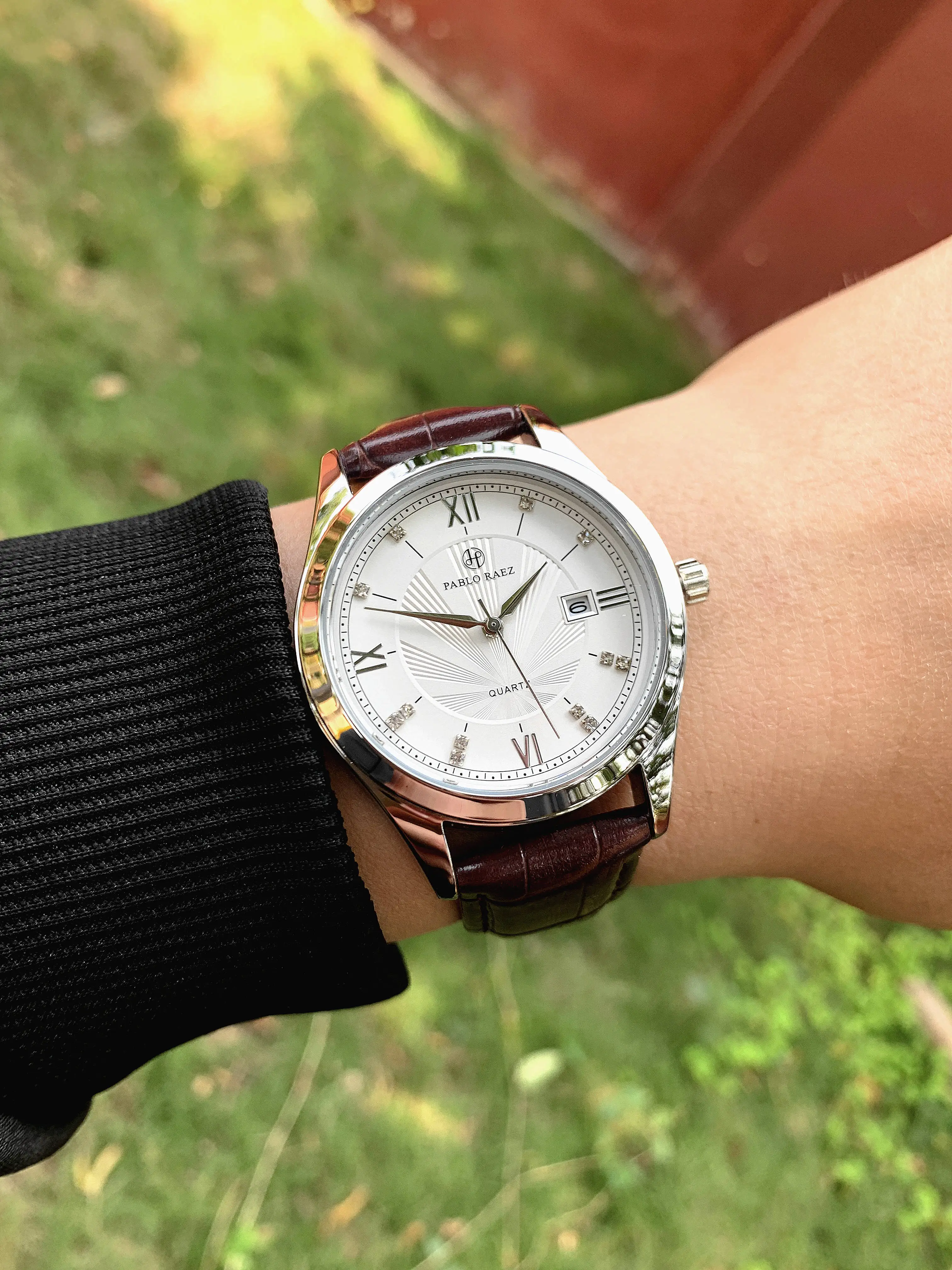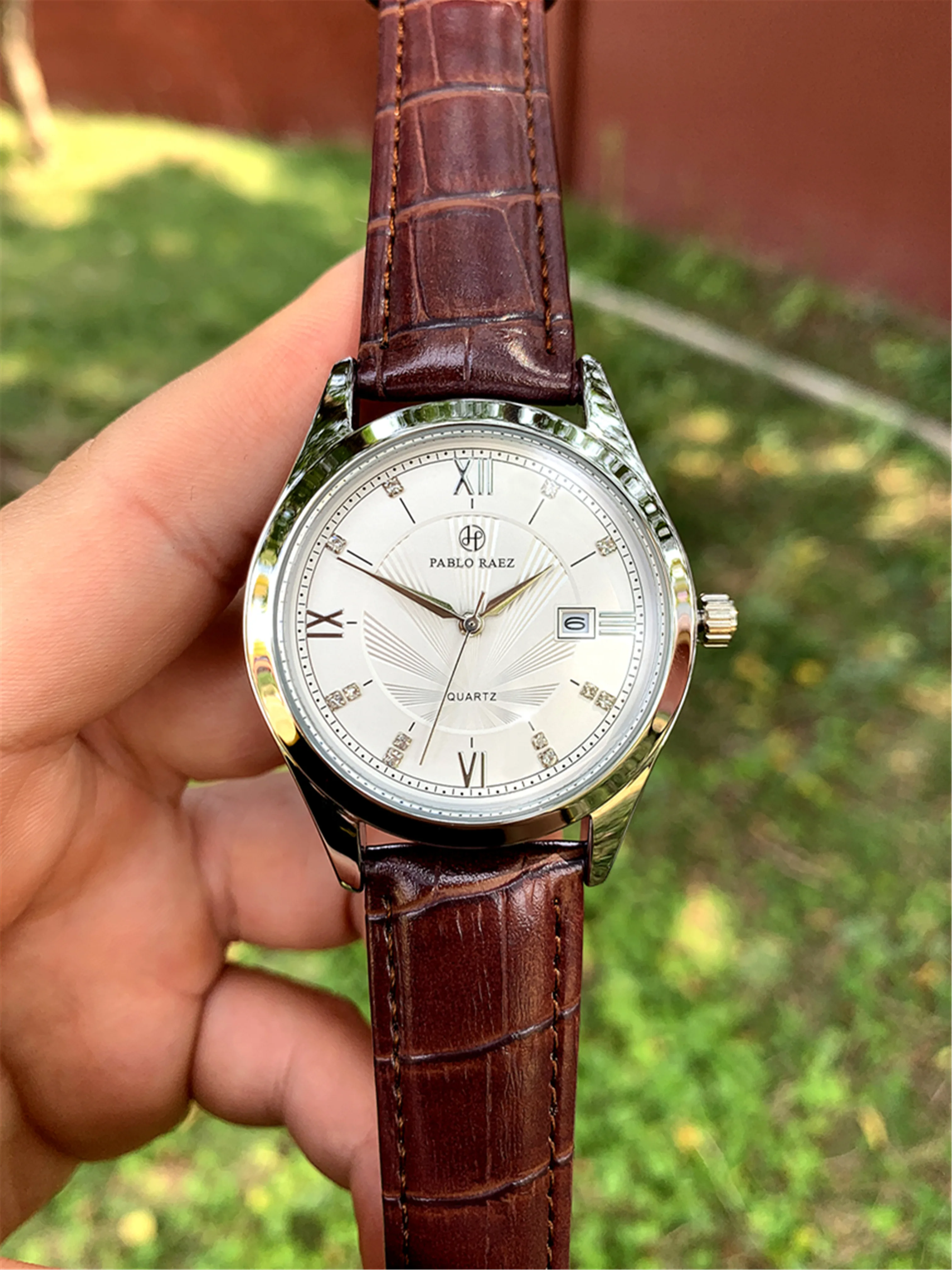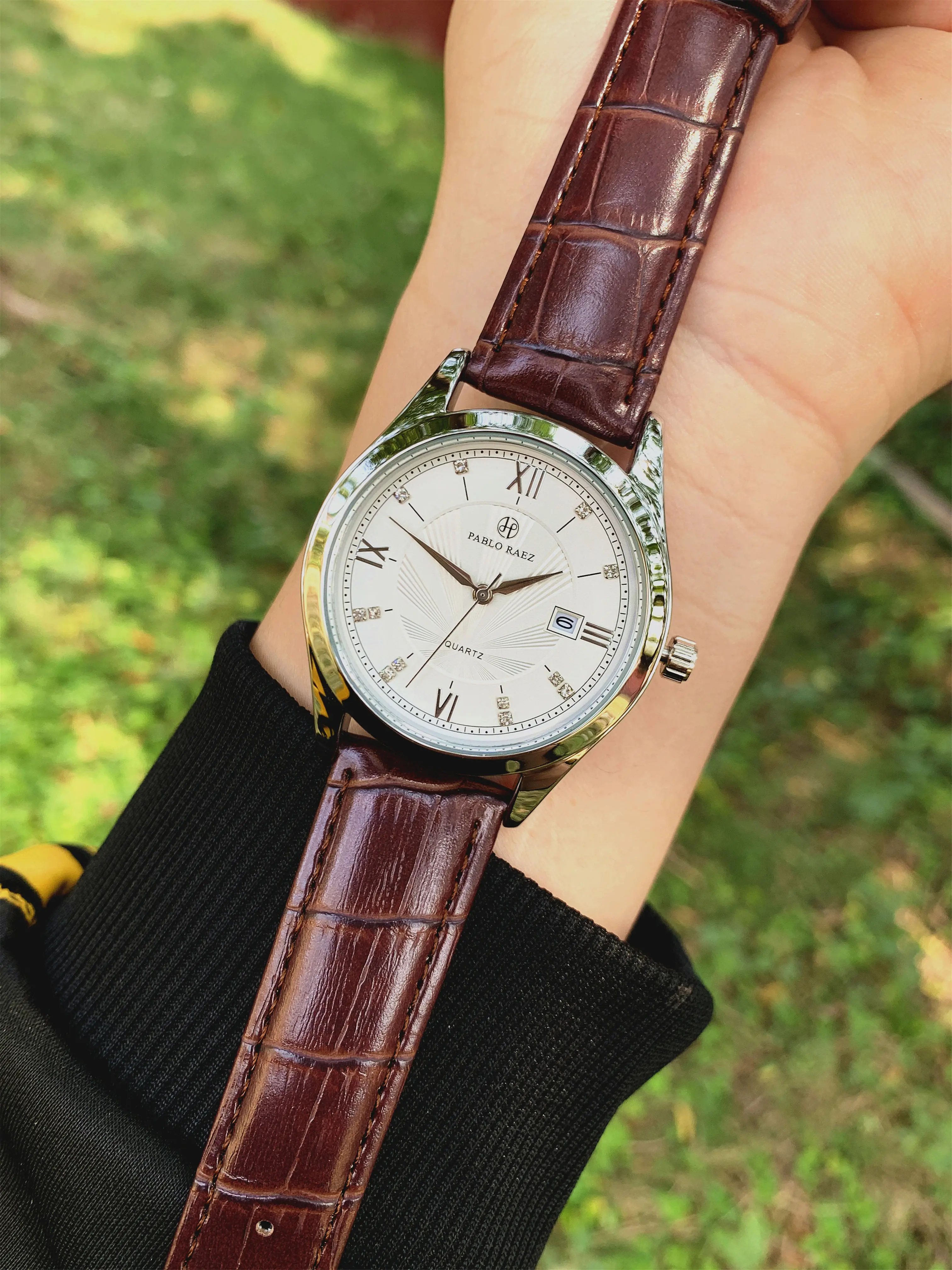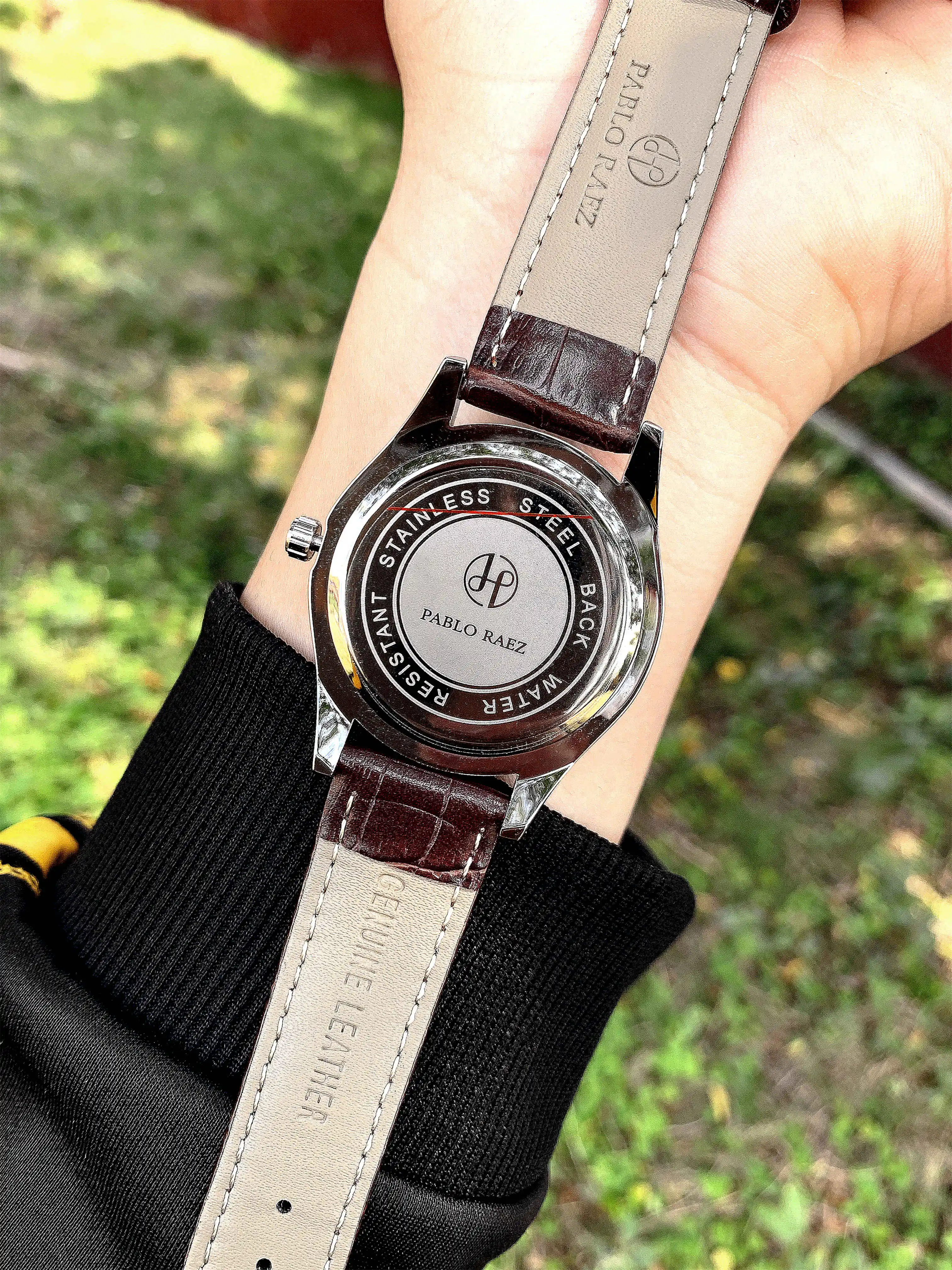 PABLO RAEZ Brand New Fashion Casual Man Watch Auto Date Luxury Business Wristwatch High Quality Brown Leather Popular Male Clock