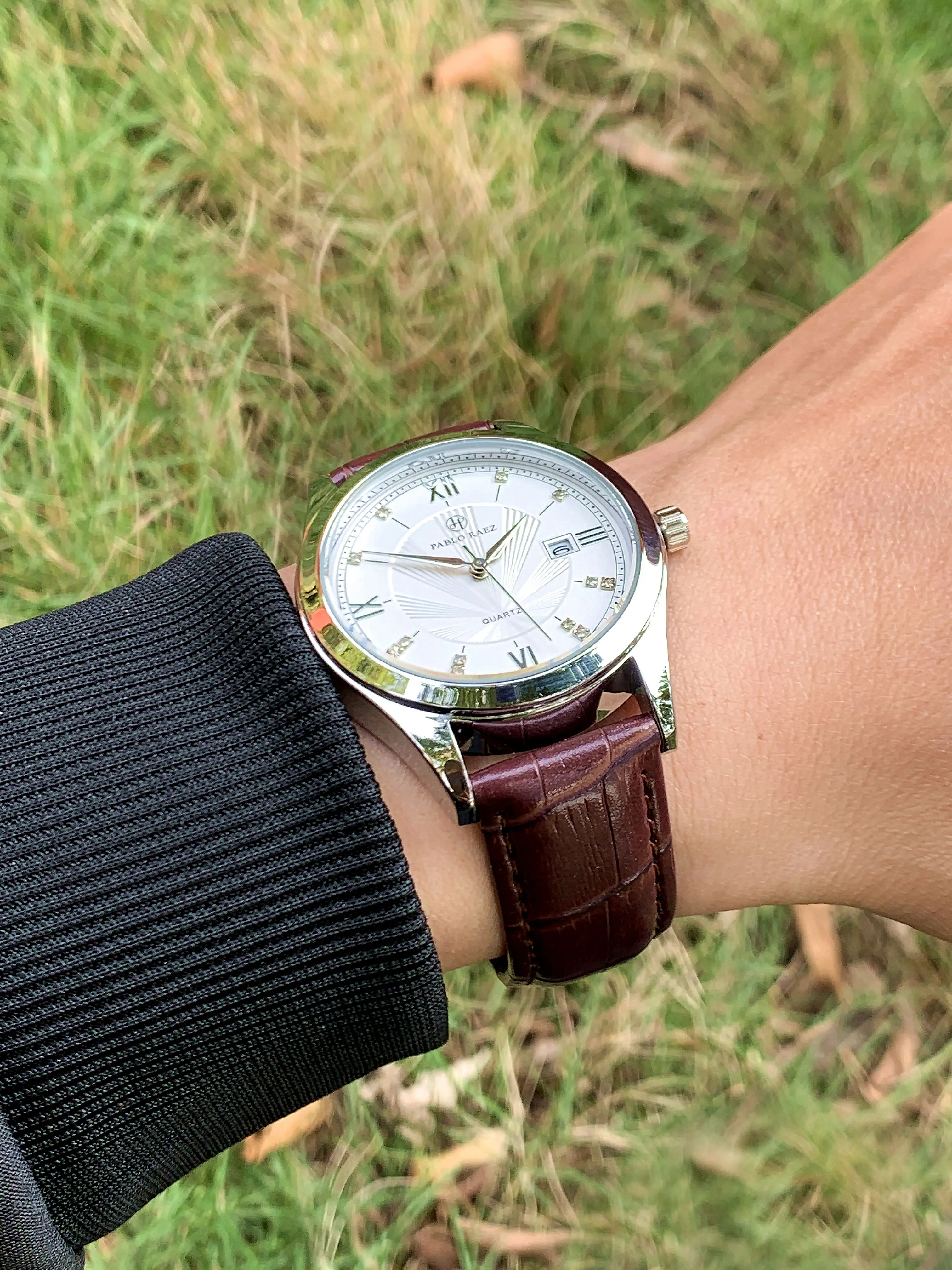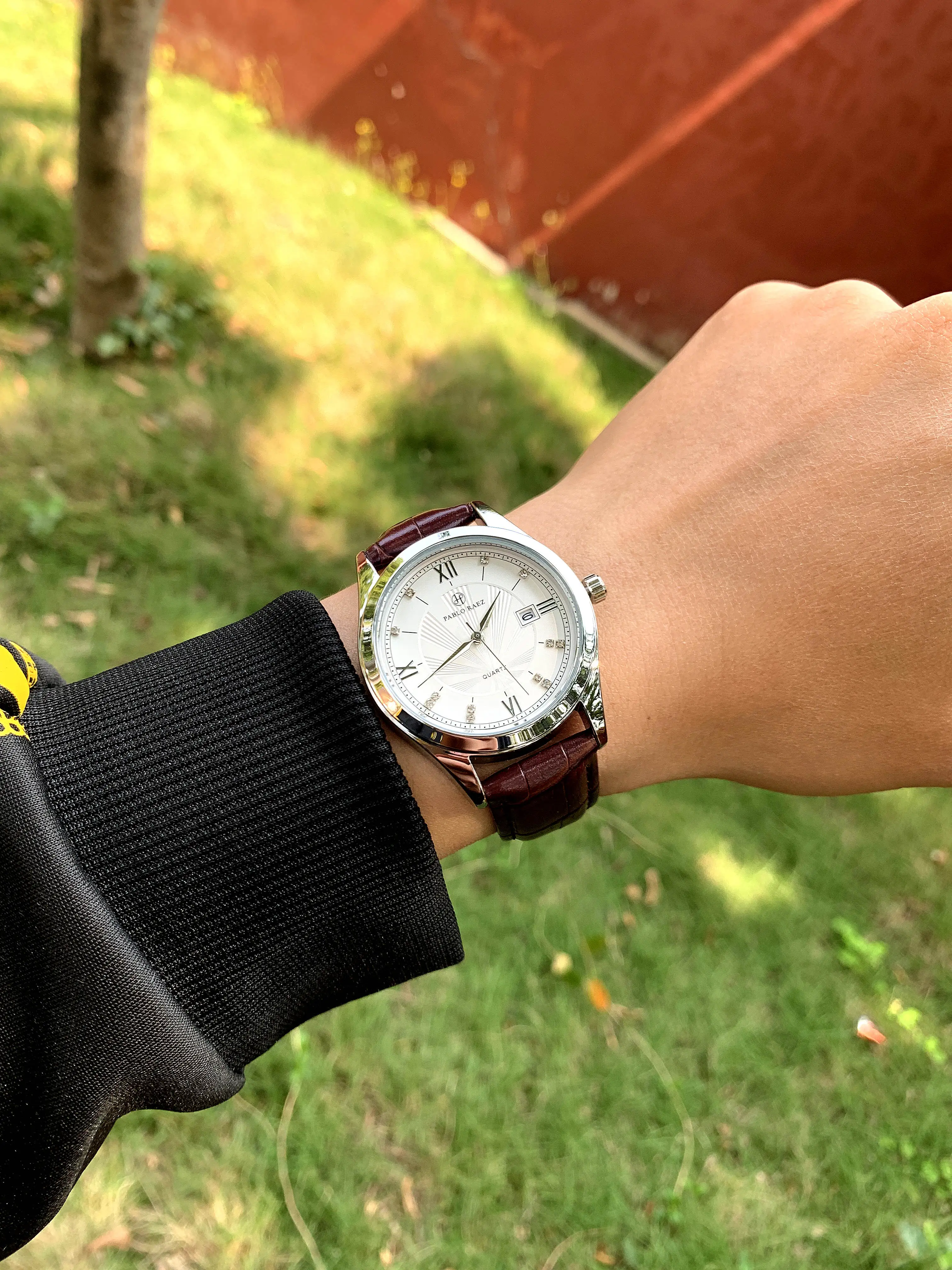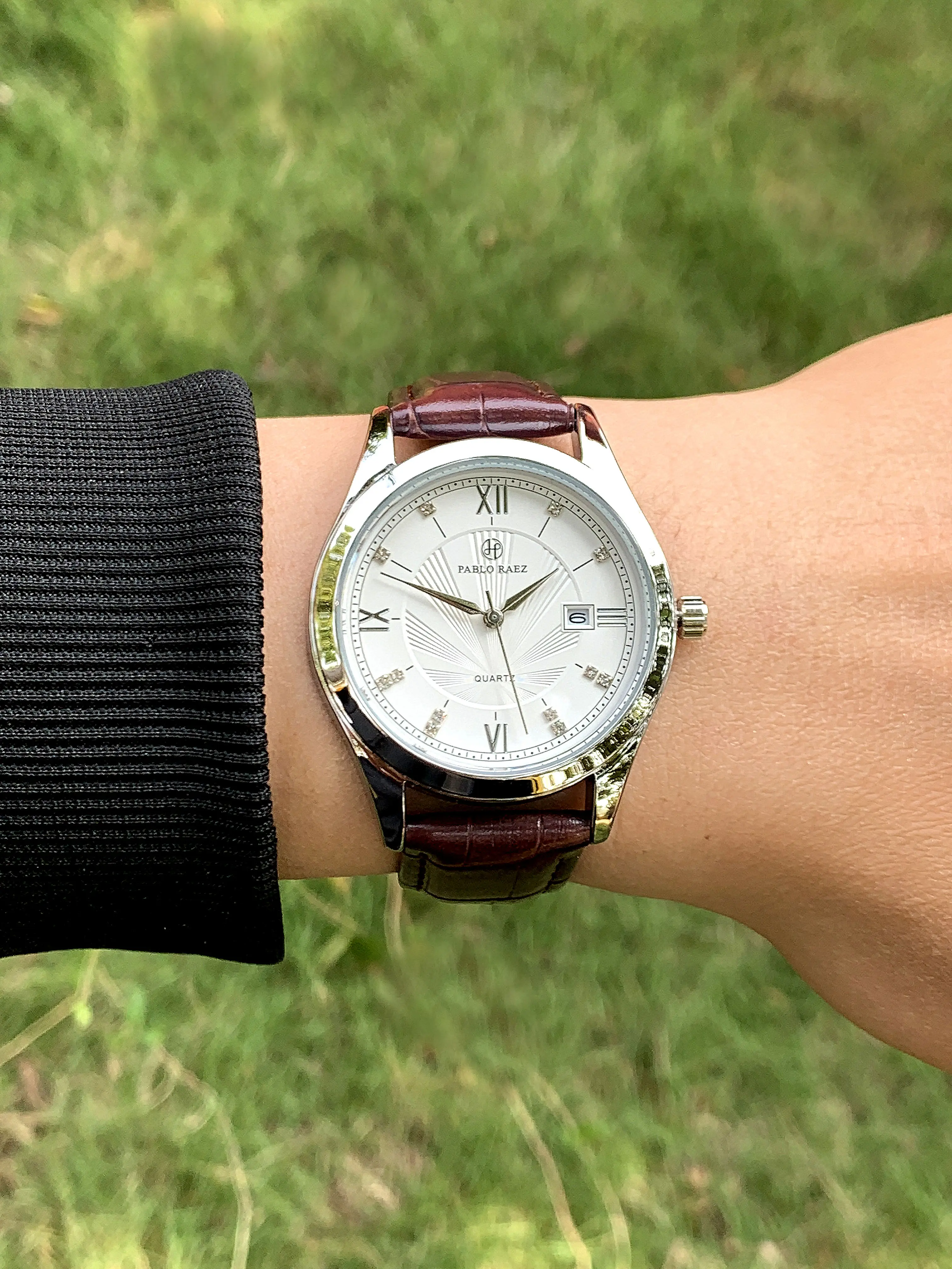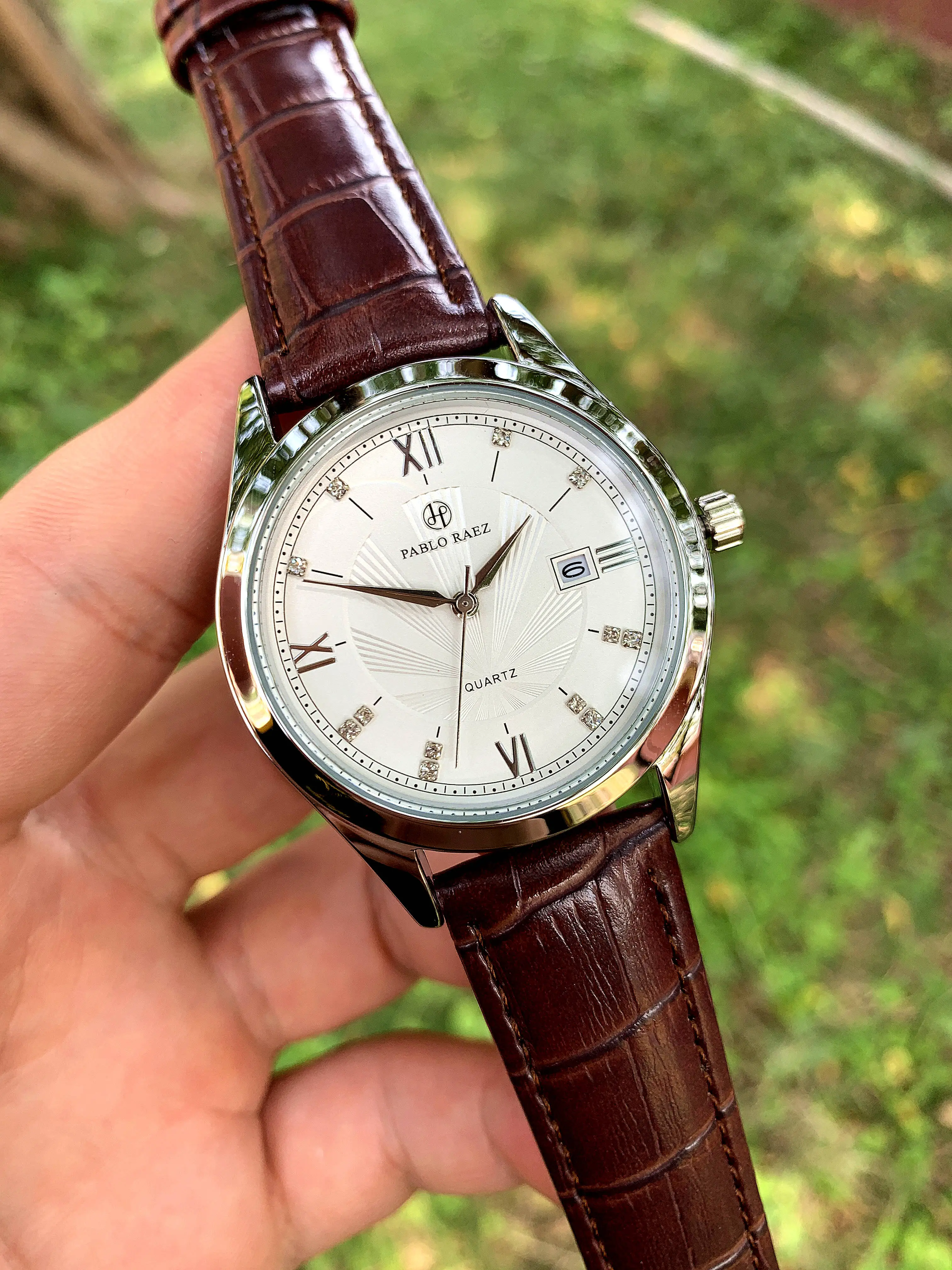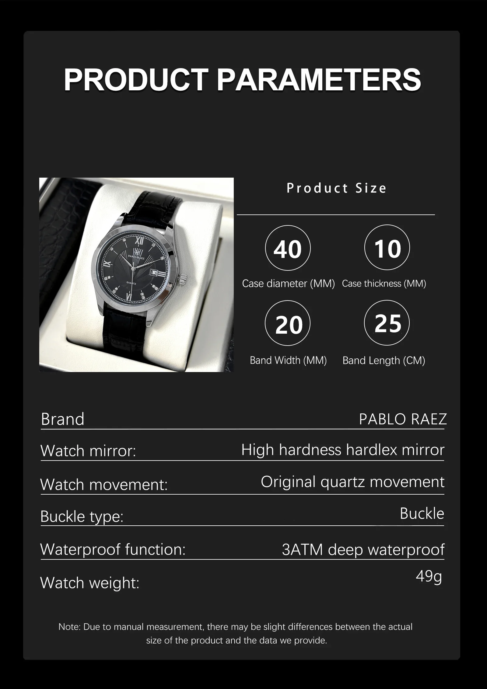 PABLO RAEZ Brand New Fashion Casual Man Watch Auto Date Luxury Business Wristwatch High Quality Brown Leather Popular Male Clock