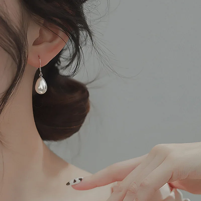 Real 925 Sterling Silver 1 Piece Baroque Pearl Hoop Earrings for Women Trendy Fine Jewelry Minmalist Water Drop Accessory