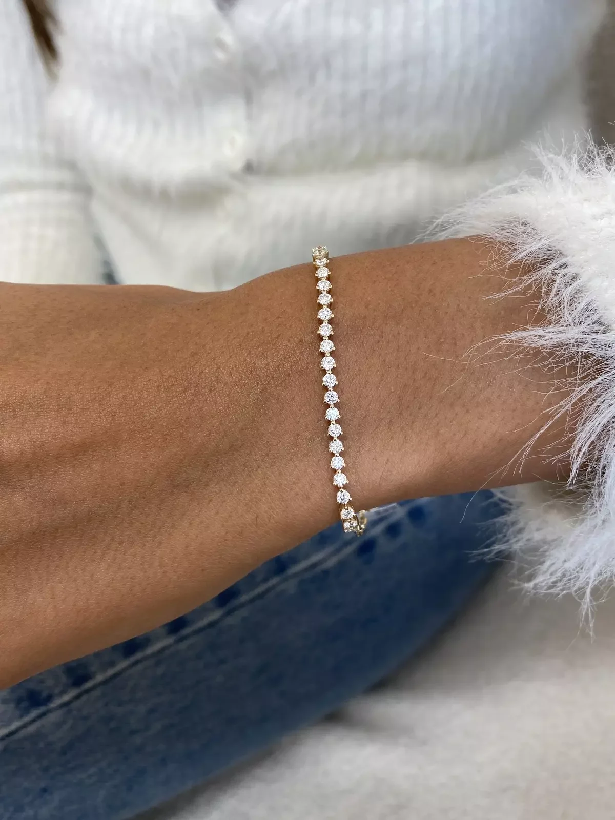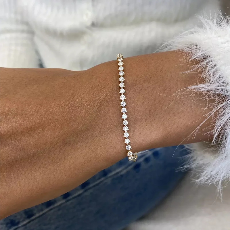 Round Cut Lab Grown Diamond Tennis Bracelet 2.2mm-4mm each DEF VS-VVS 14K Yellow Gold Prong Setting Bracelet For Women
