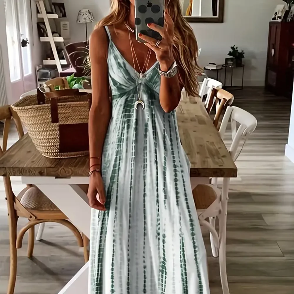 Sexy Graphic Print Maxi Dress with High Waist and V-Neck for Women