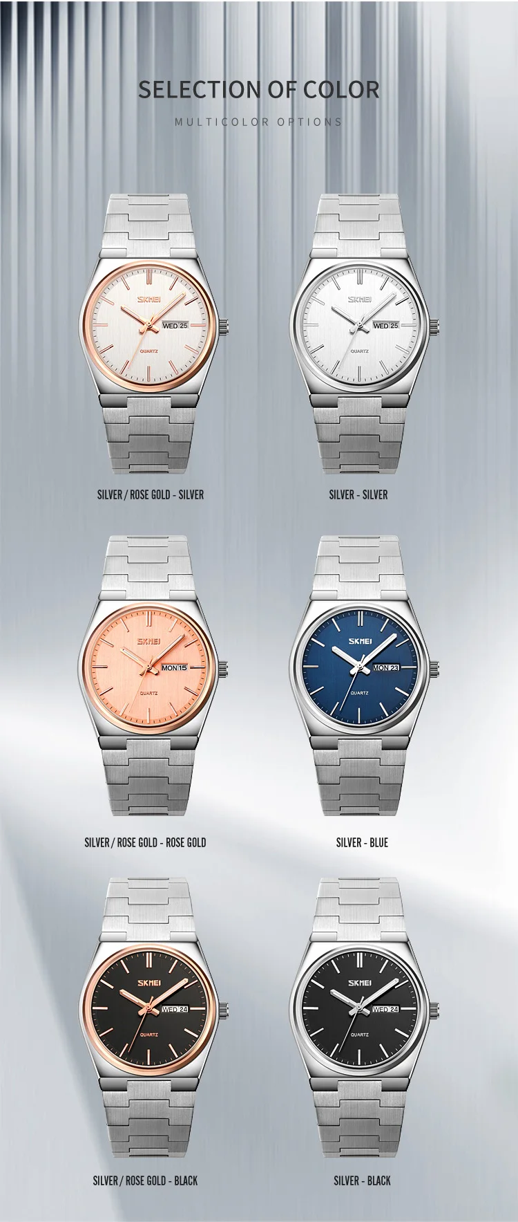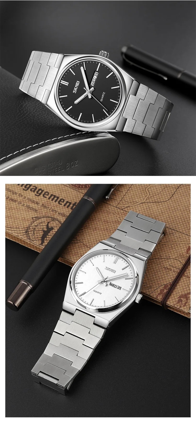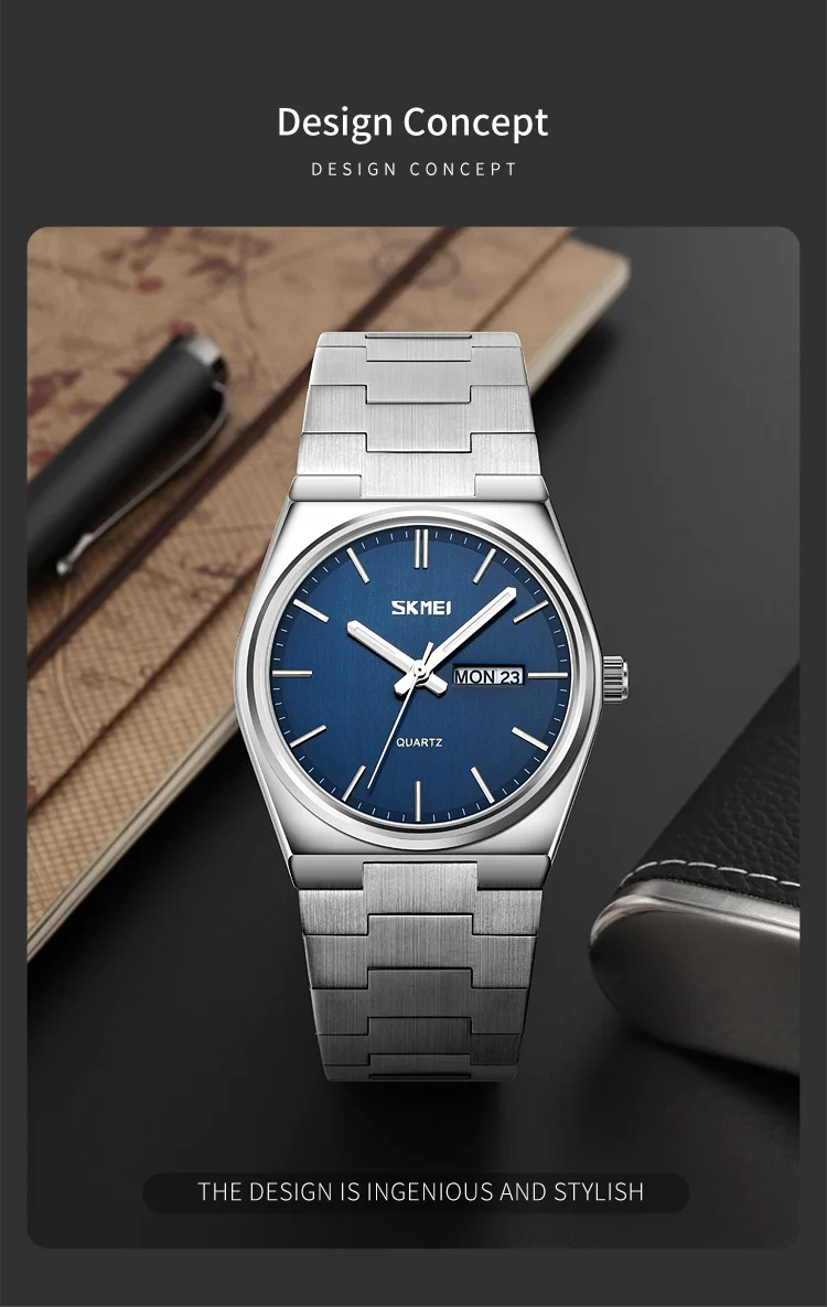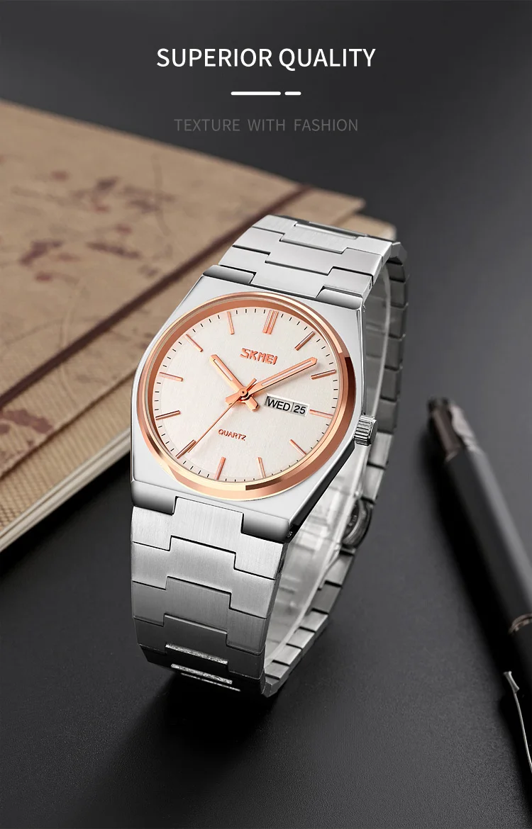 SKMEI New Casual Quartz Clock Male Full Steel Time Week Date Sports Watch Mens Waterproof Business Wristwatches Man reloj hombre