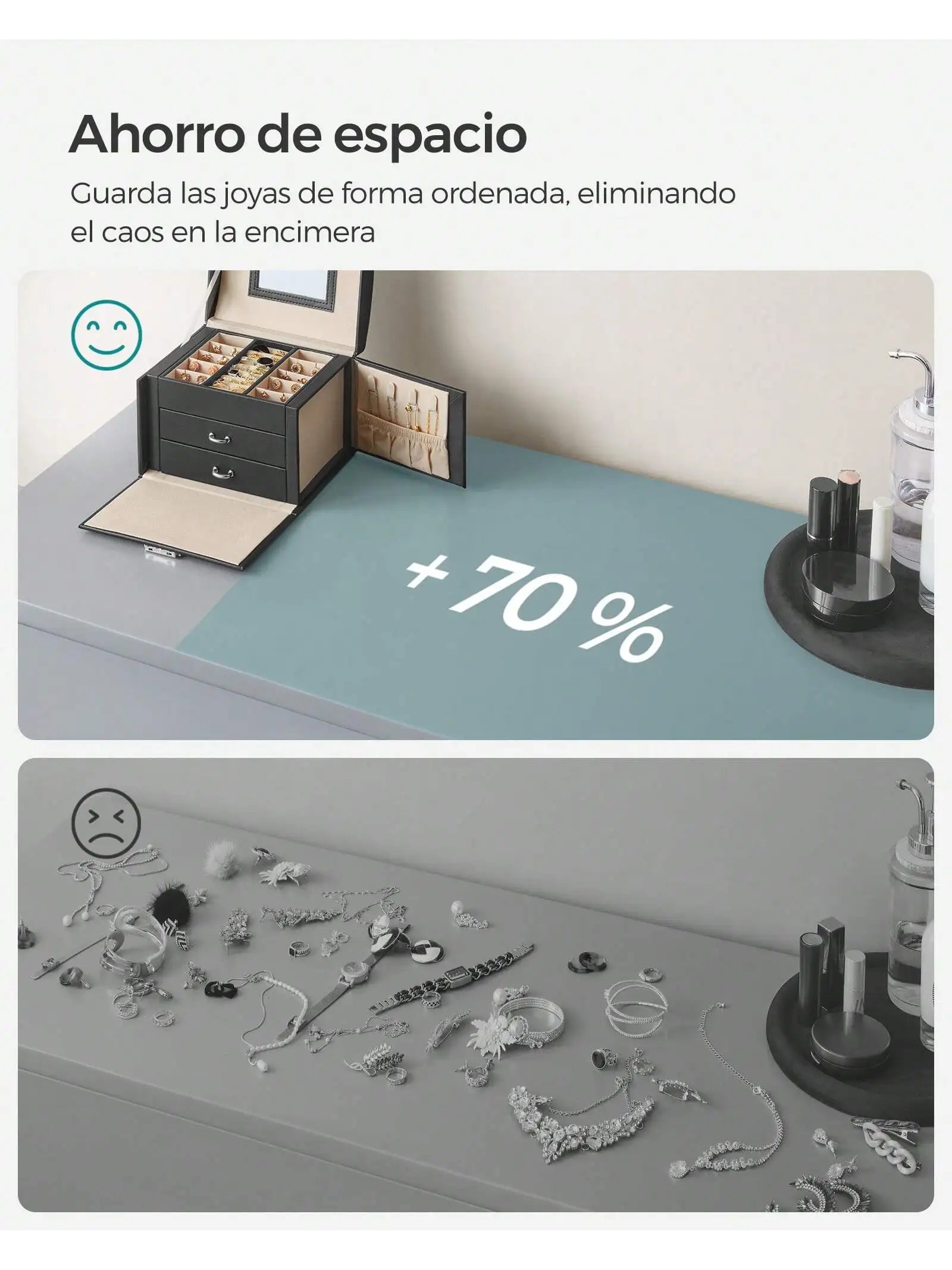 [Con espejo interior] Un espejo en la tapa superior de la caja para joyas te permite comprobar fácilmente el ajuste de tus joyas o revisar tu maquillaje, ahorrando el tiempo precioso por la mañana
