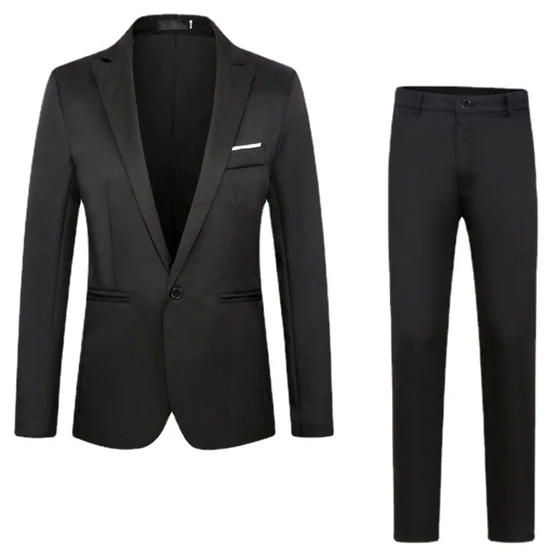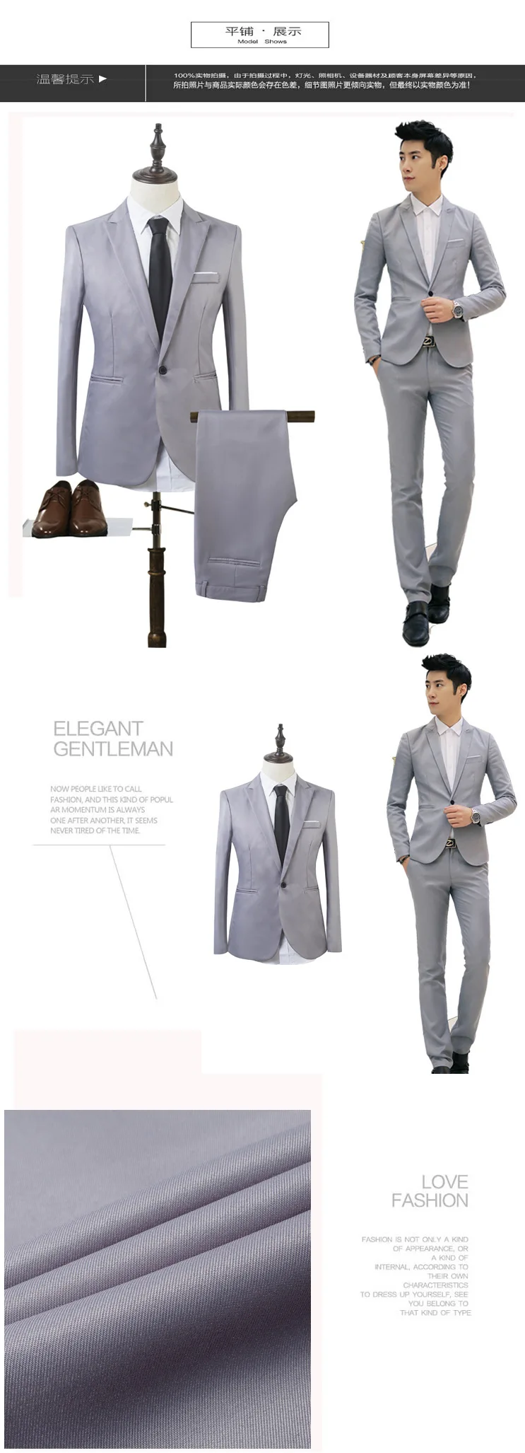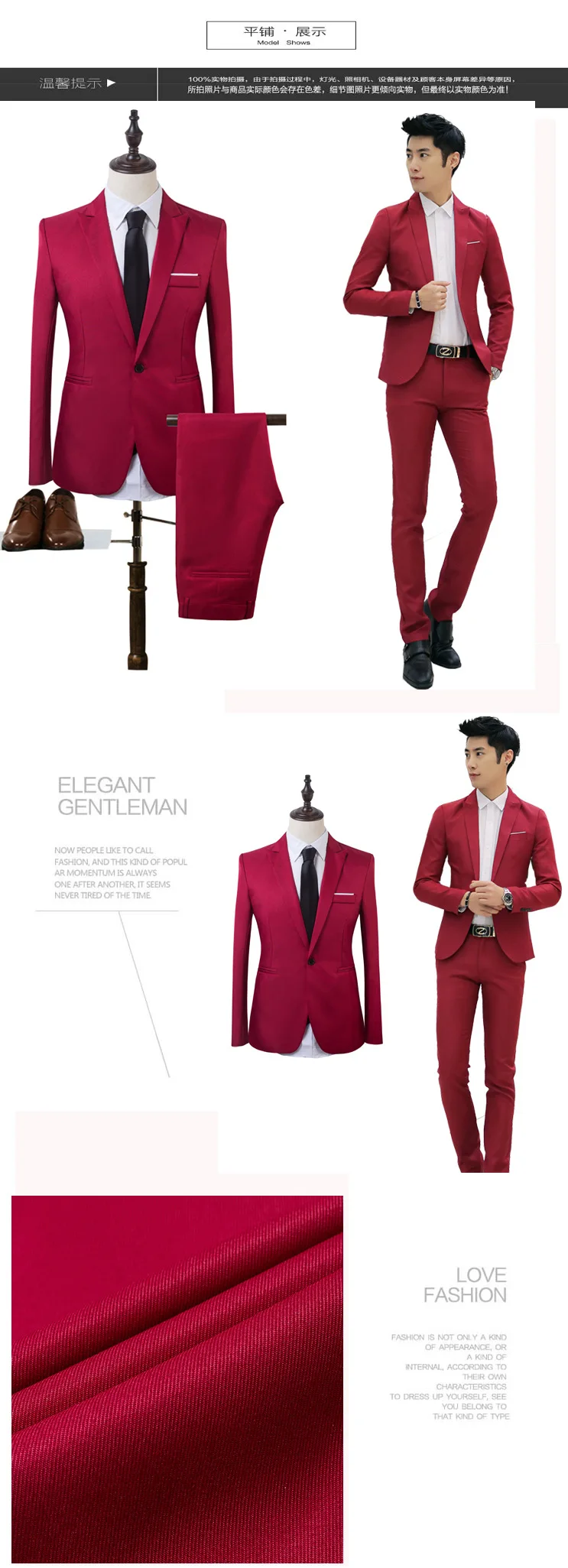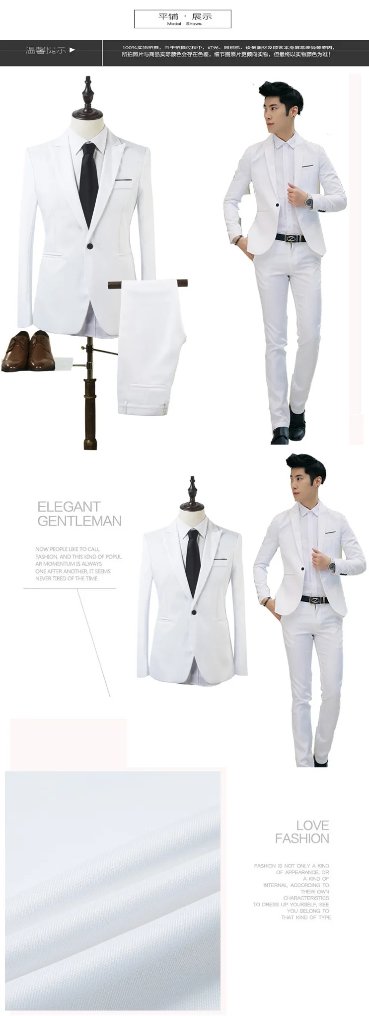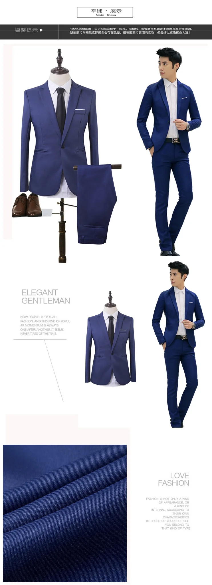 Spring Autumn New Fashion Men's Casual Trendy Slim 2 Pieces of Sets Suit Sets Solid Color Single-button Suit Blazers Pants Male