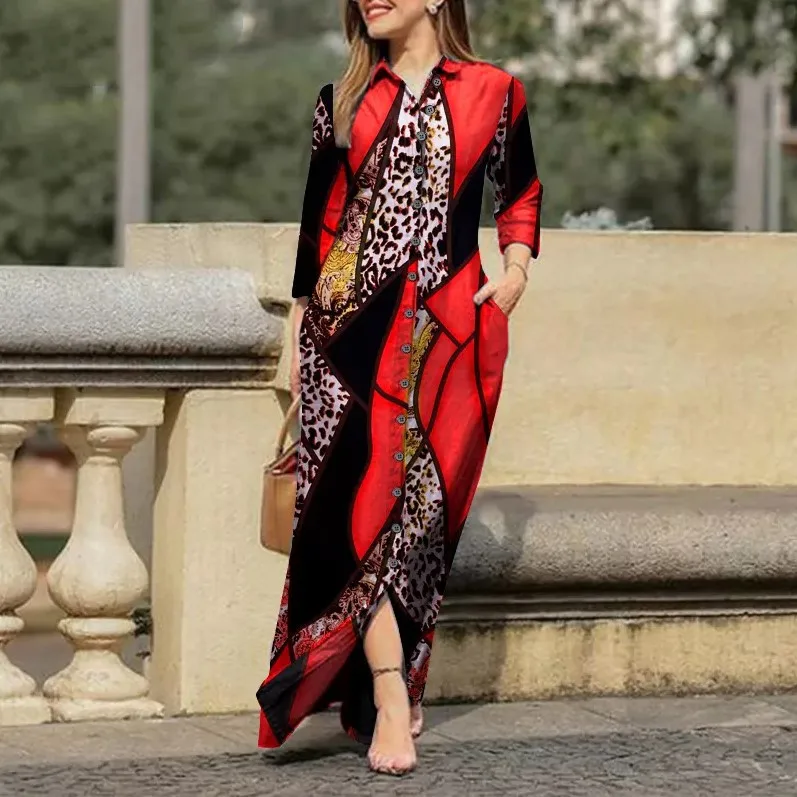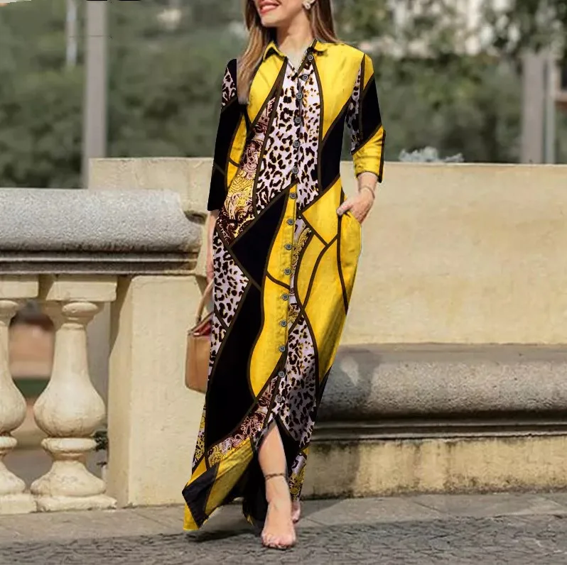 Spring Womens Long Shirt Dress Summer Single Breasted Button Lapel Long Sleeve Dress 2023 New Image Print Loose Dresses Robe