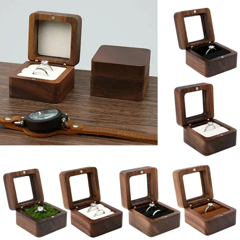 Square Double Ring Box Free Custom Engraved Wooden Ring Box for Wedding Ceremony Proposal or Engagement Ring Box Anniversar Gift