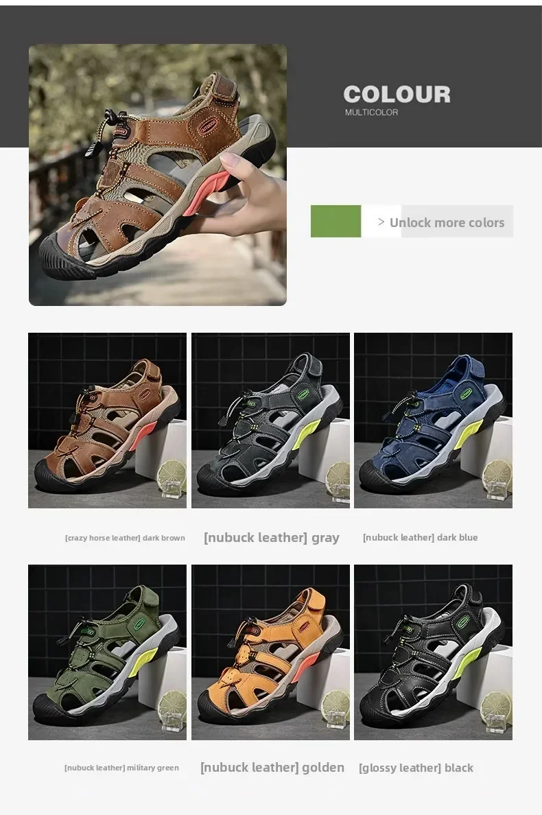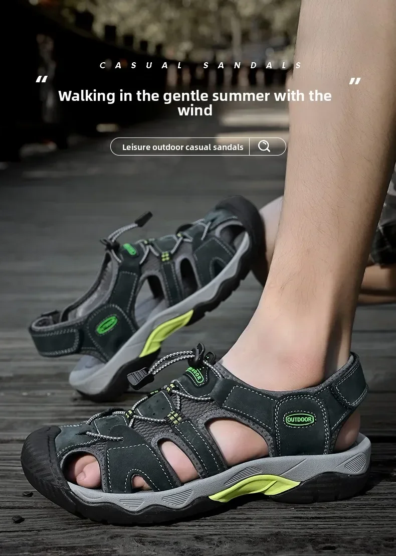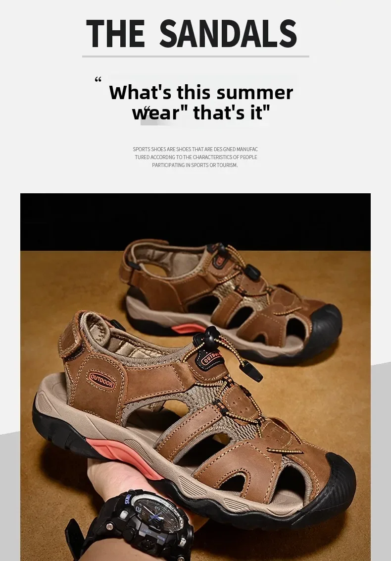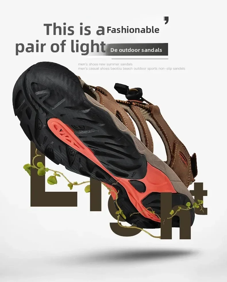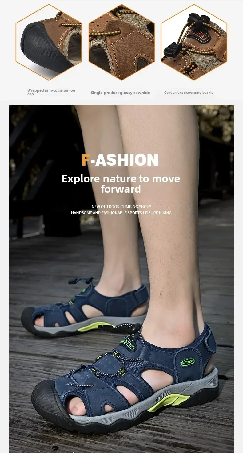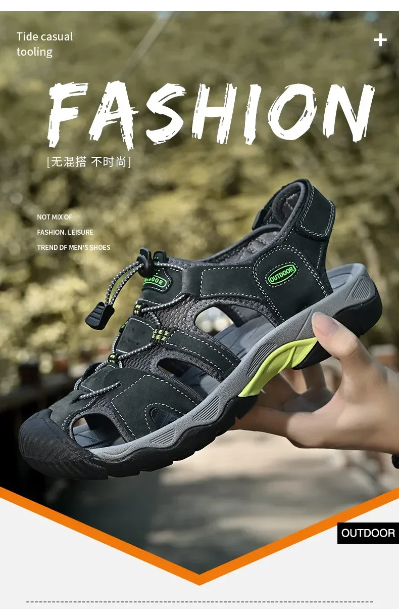 Summer Men's Classic Genuine Leather Sandals Breathable Non-Slip Outdoor Hiking Shoes Lightweight Fashion Sneakers Size 38-48