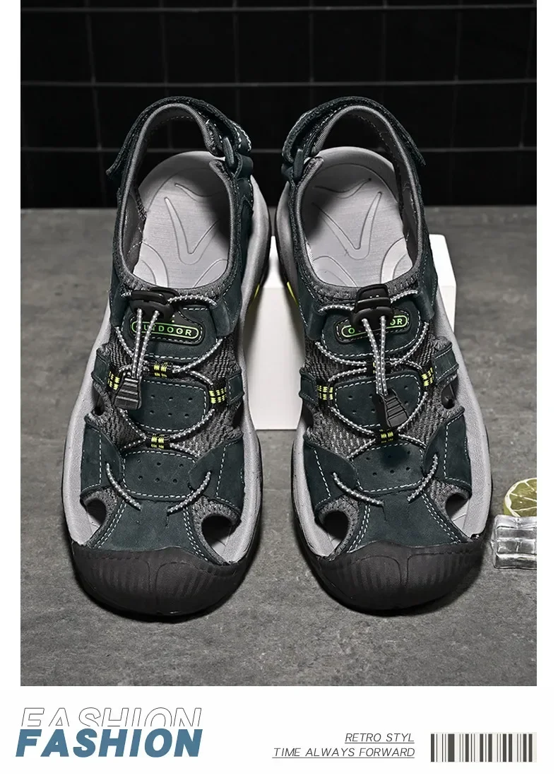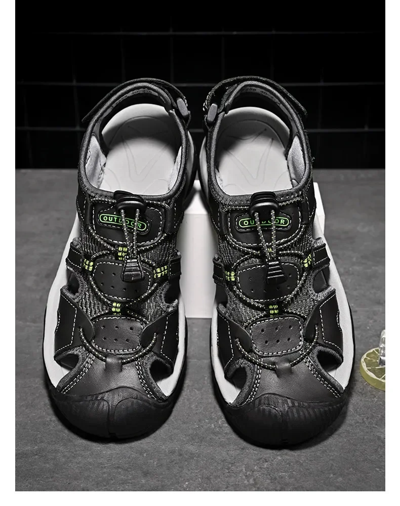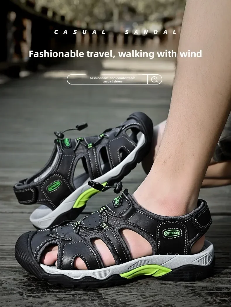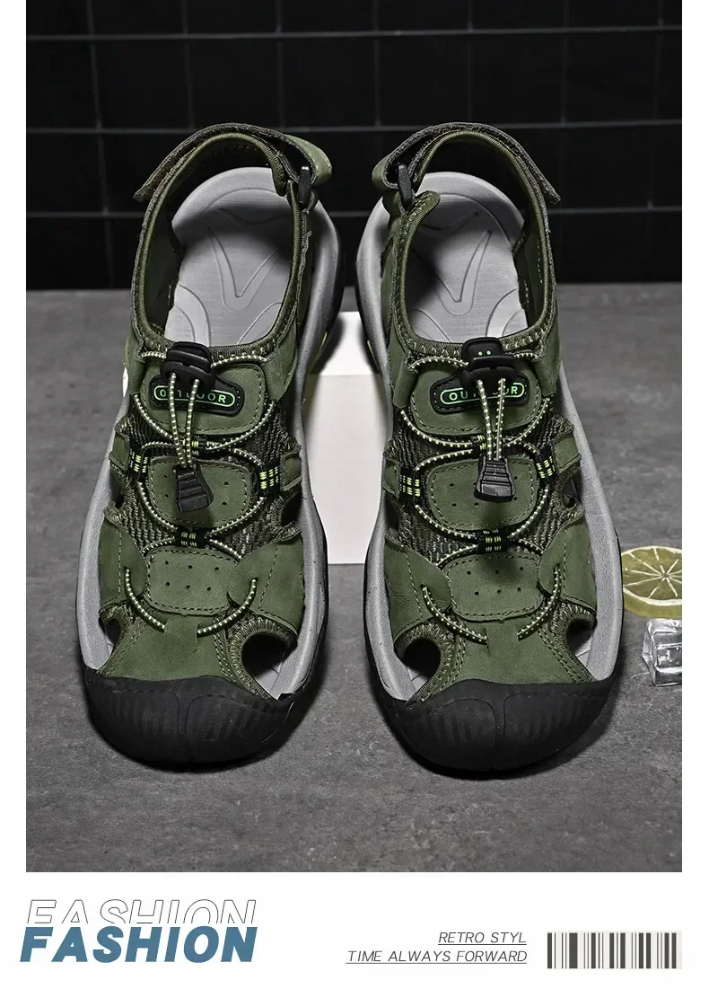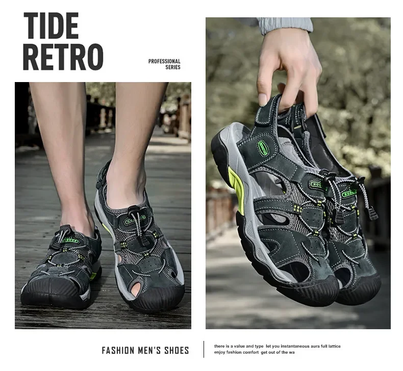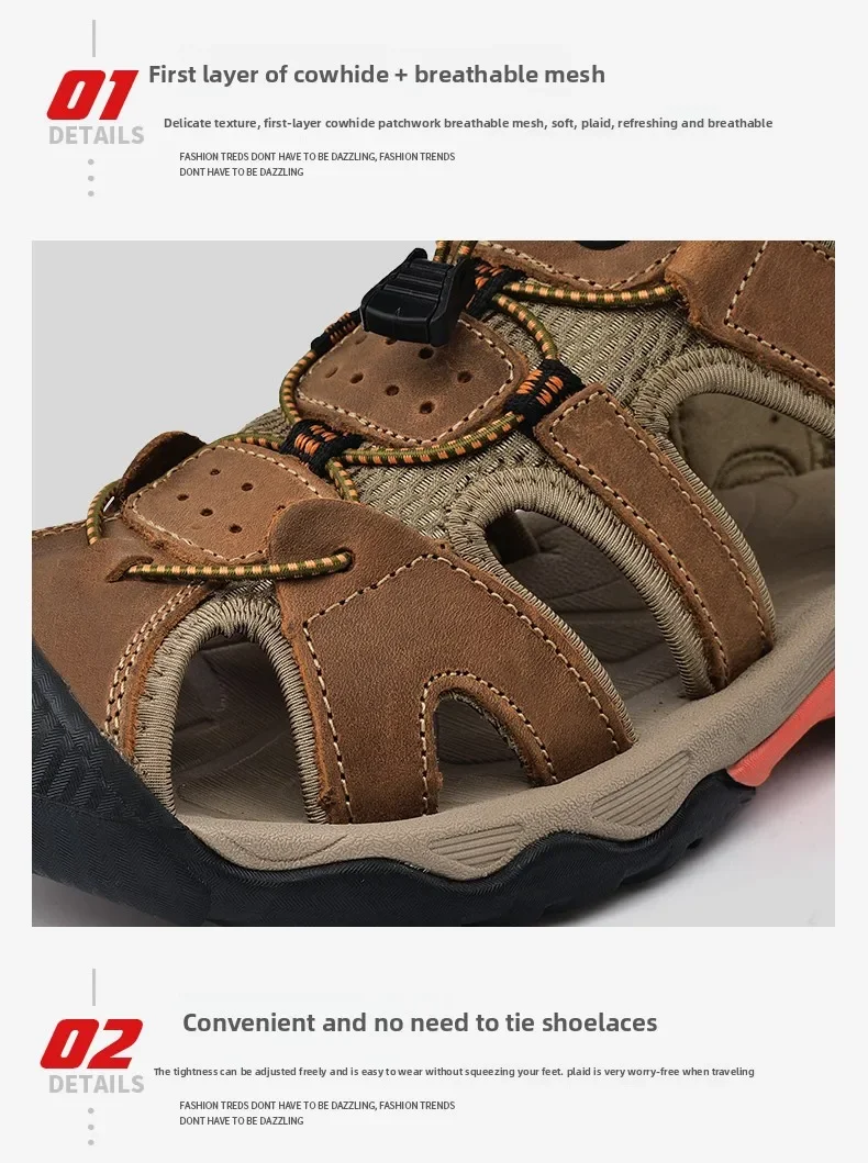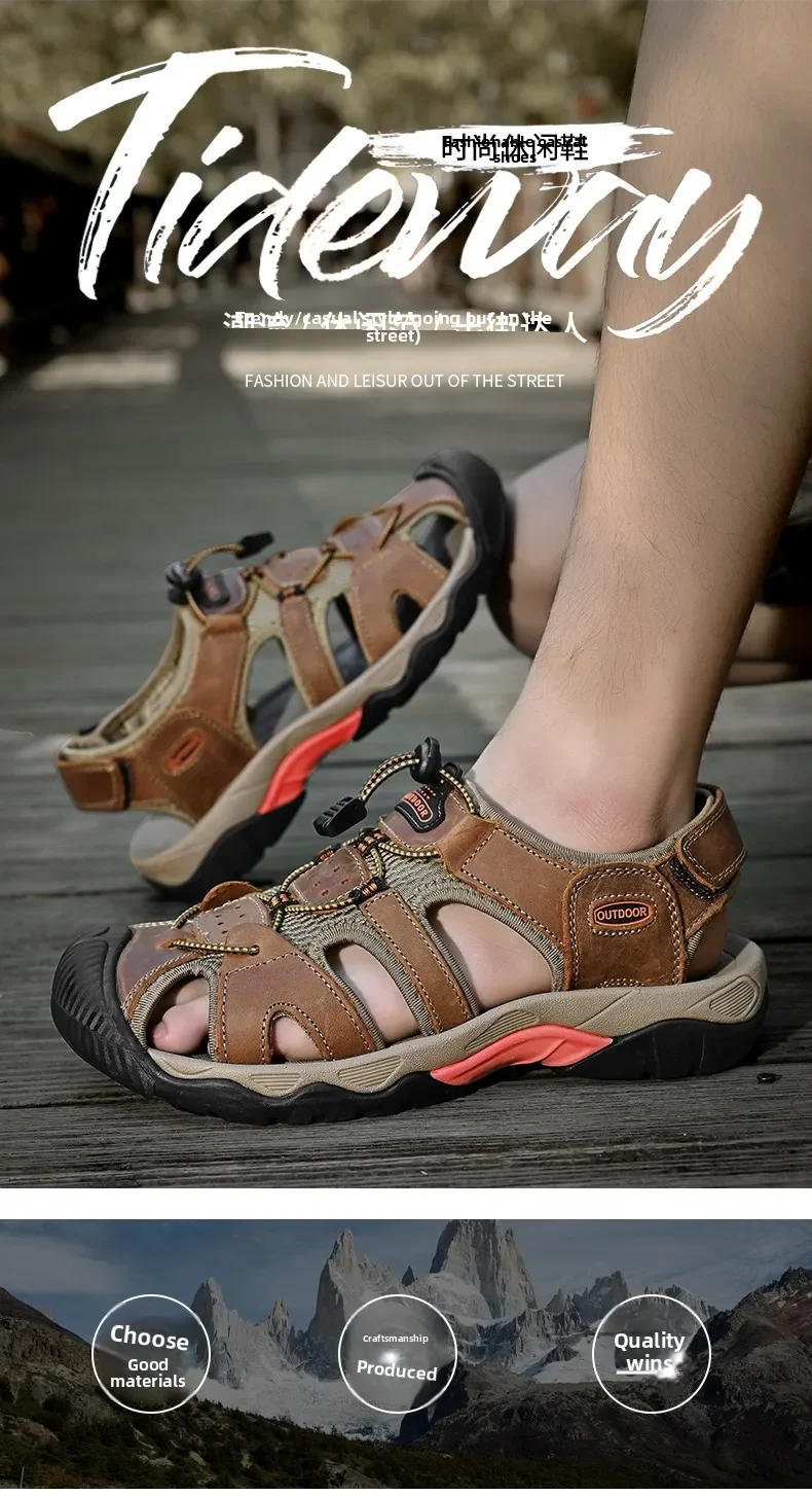 Summer Men's Classic Genuine Leather Sandals Breathable Non-Slip Outdoor Hiking Shoes Lightweight Fashion Sneakers Size 38-48