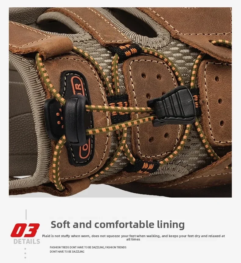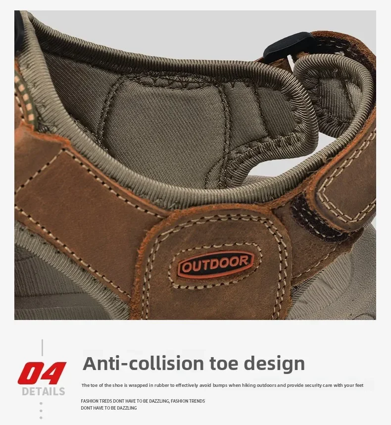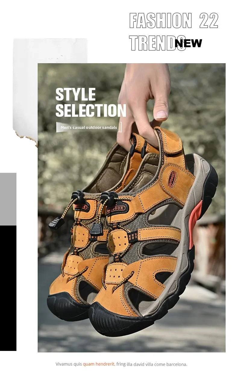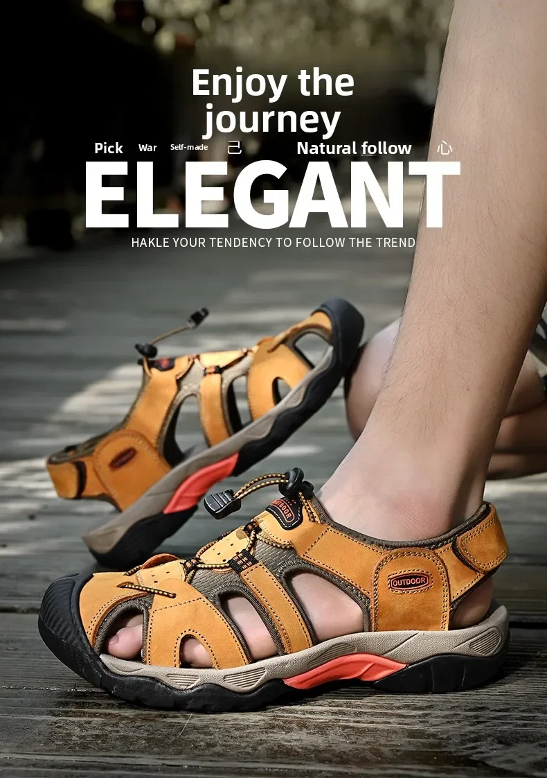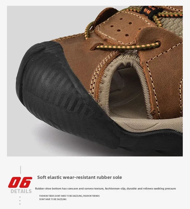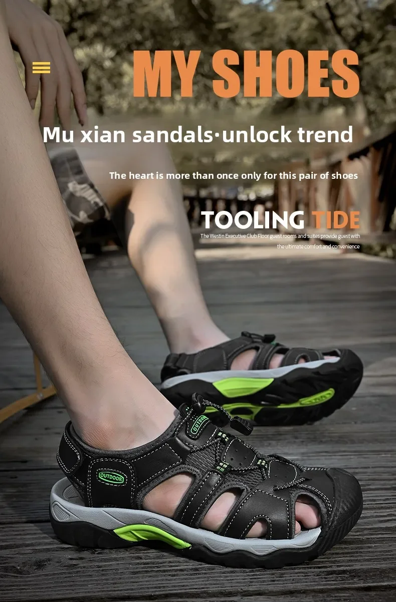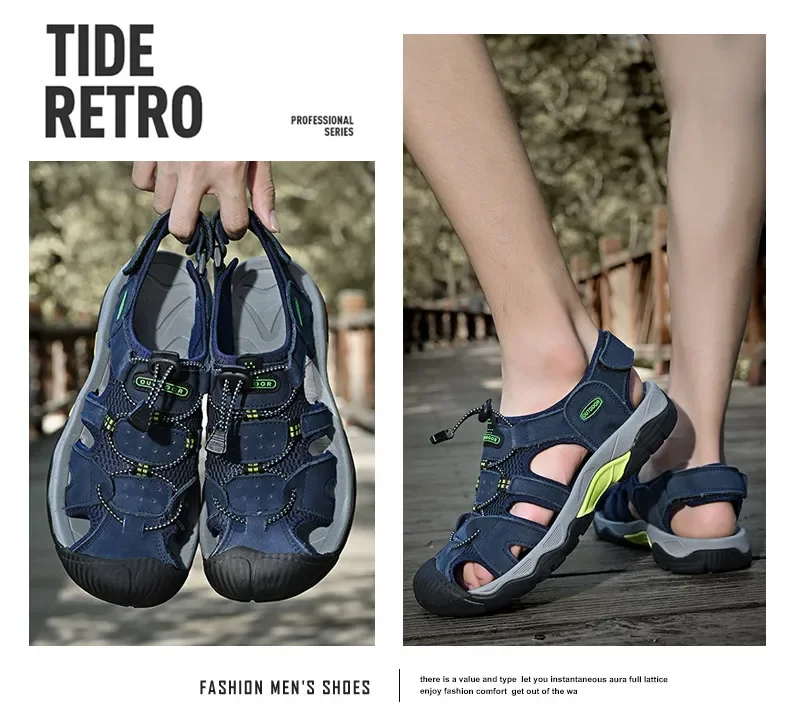 Summer Men's Classic Genuine Leather Sandals Breathable Non-Slip Outdoor Hiking Shoes Lightweight Fashion Sneakers Size 38-48